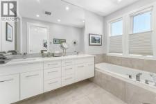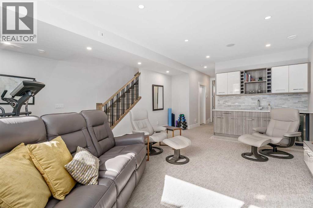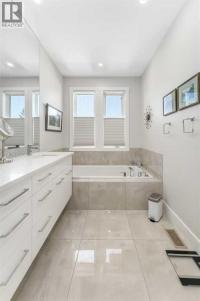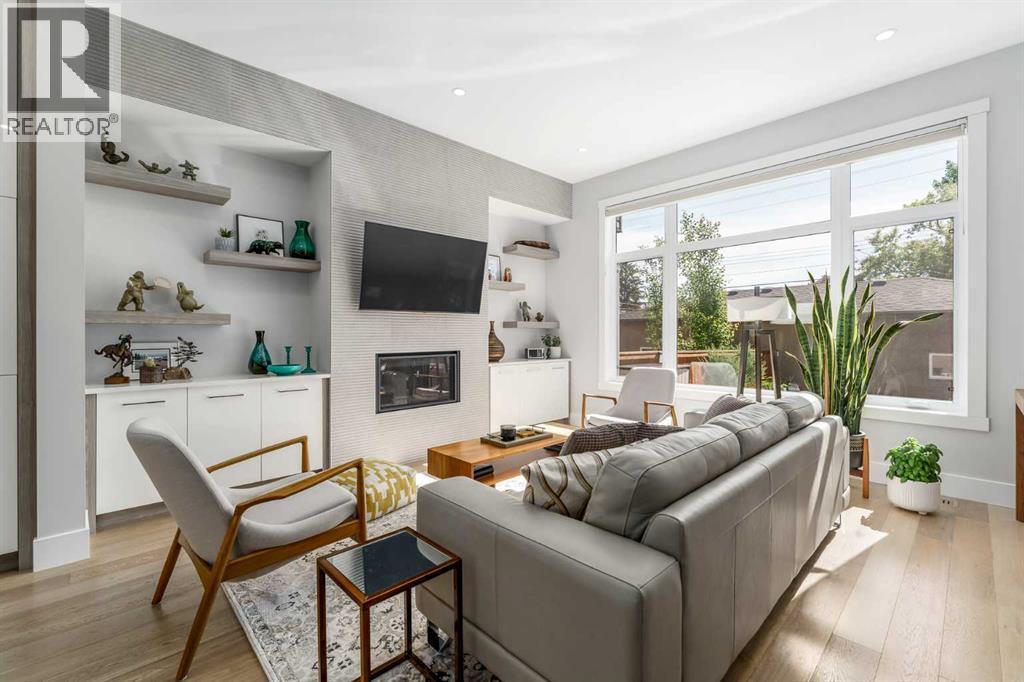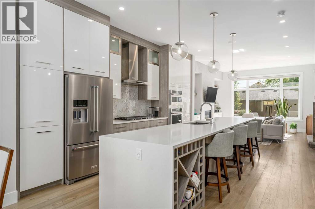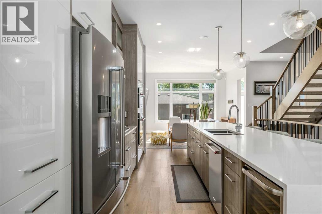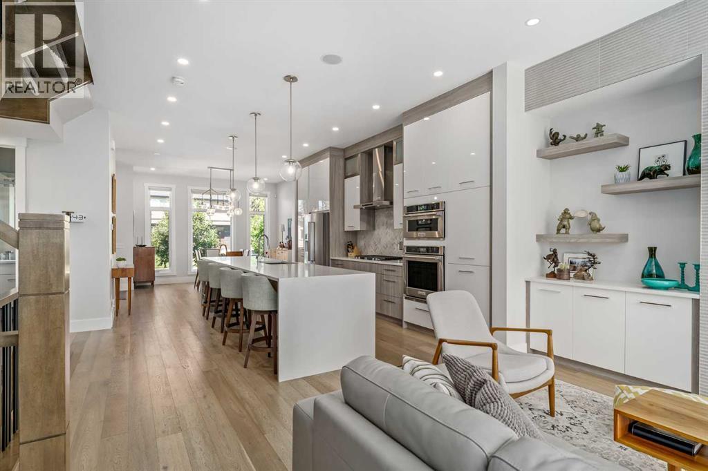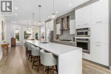 Not all infills are created equal. This modern Killarney residence stands apart with craftsmanship you can see, and construction you can feel. Bathed in natural light through oversized windows and framed by 10’ main-floor ceilings, the home balances warm engineered hardwood with a refined, contemporary palette. From the moment you step inside, the fit and finish telegraph quality: crisp lines, precise millwork, and a floor plan that moves effortlessly from everyday living to elegant entertaining. At the front, a formal dining room sets the tone, three large picture windows, a statement light fixture and room for those long, lively dinners. The heart of the home is an oversized chef’s kitchen that’s both beautiful and hard-working: white and warm wood-grain cabinetry to the bulkhead, gleaming waterfall quartz counters, built-in wall oven, a gas cooktop beneath a sleek stand-alone hood fan, and a Carrara marble herringbone backsplash that wraps the hood for a bespoke, designer finish. The generous island invites coffee catch-ups and weekend prep, while the full upgraded stainless appliance package delivers performance worthy of the space. Anchored by a tiled gas fireplace with custom open shelving, the living room is scaled for comfort and conversation. It flows naturally to the backyard for easy summer living, with over $40k in low maintenance landscaping with concrete walkways, a large patio, and BBQ gas hookup so hosting is as simple as turning a knob. Upstairs, the private retreat continues the theme of understated luxury. The primary suite features a tray ceiling, upgraded blinds, and a walk-in closet fit with custom built-ins. The spa-calibre 5-piece ensuite pampers with a freestanding soaker tub, an oversized glass shower, 24"×24" tile, in-floor heat, and a steam rough-in already planned into the layout. Two additional bedroom suites are thoughtfully finished—each with true walk-in closets and custom storage (one with a stylish wallpaper feature wall). A proper laundry room, complete with cabinetry, folding counter, and sink—keeps the day-to-day running smoothly. The fully finished basement is made for movie nights and game days. A large rec/media area includes a custom wet bar with sink, wood-grain and white cabinetry, marble tile backsplash, and a wine fridge,an entertainer’s ally. Berber carpet adds warmth underfoot, while in-floor heating keeps the entire level comfortable year-round. A sleek 3-piece bathroom with a floating vanity serves guests with style. And because true quality goes beyond finishes, this level was engineered with approximately six inches of insulation beneath the slab for superior efficiency and comfort. Set on a quiet inner-city street in the heart of Killarney—close to parks, schools, transit, and the best of local cafés and amenities—this home delivers the rare combination of design, durability, and day-to-day livability. If you value details you can feel as much as finishes you can see, you’ll know...this is the one. (id:6769)