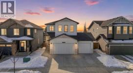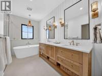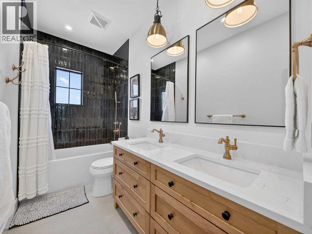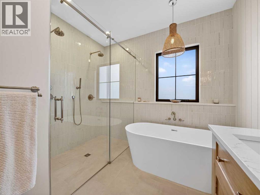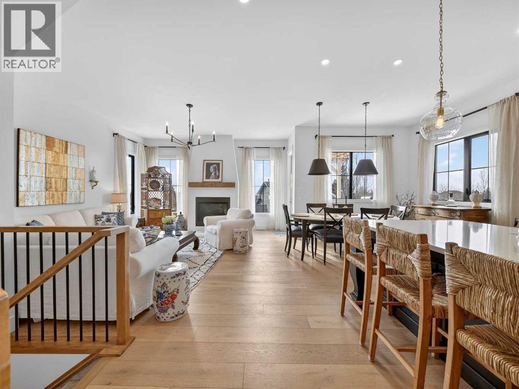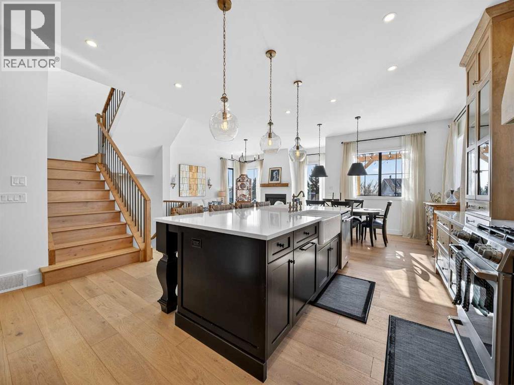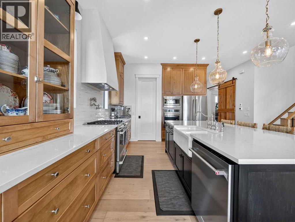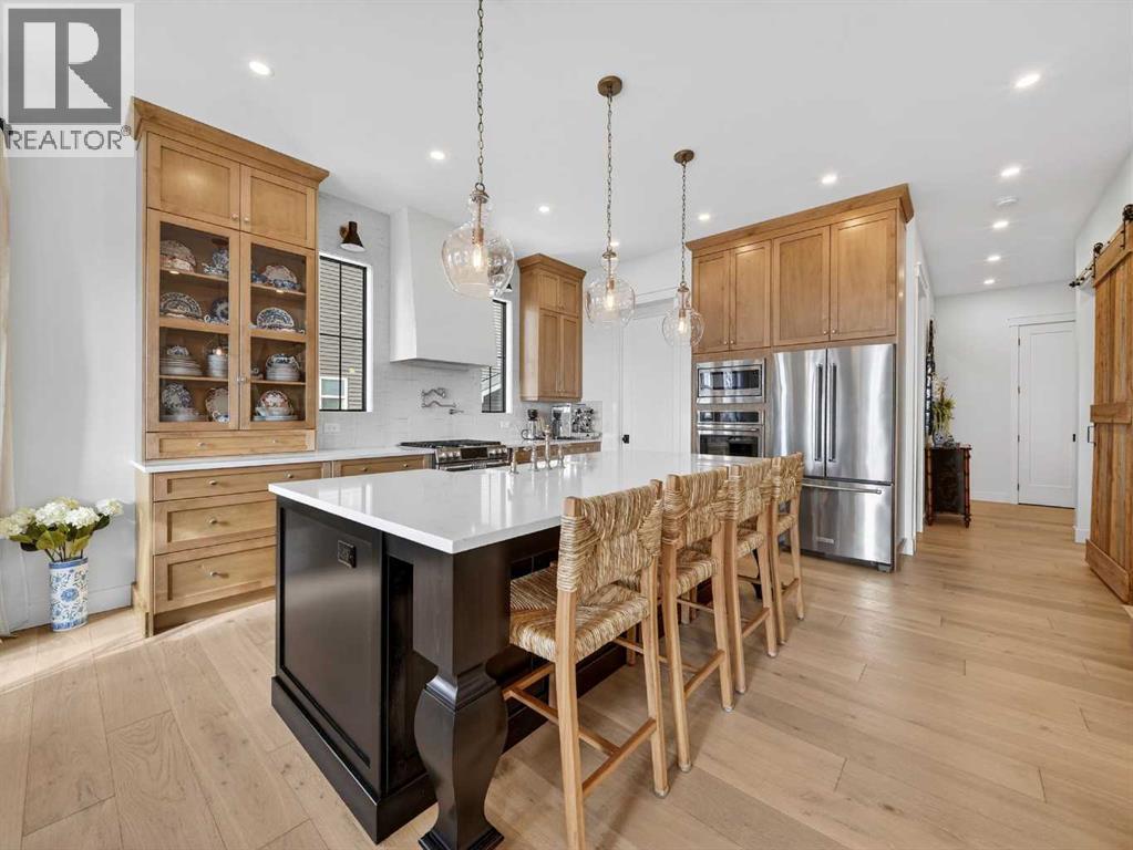 Welcome to an extraordinary custom-built farmhouse in the prestigious community of Wedderburn in Okotoks — a residence where refined craftsmanship meets timeless country elegance. From the moment you arrive, the home’s striking curb appeal, architectural charm, and warm, inviting presence create an unforgettable first impression. A gracious and spacious foyer welcomes you inside, immediately setting the tone for the thoughtful design carried throughout. Just off the entry, a beautifully appointed office offers both functionality and sophistication, complete with bespoke built-in cabinetry and a custom desk. As you continue into the heart of the home, the breathtaking kitchen unfolds in true European Tuscan farmhouse style. Floor-to-ceiling custom maple cabinetry, rich in detail and warmth, is perfectly complemented by white oak flooring that flows seamlessly throughout the main level. A generous central island anchors the space, while a statement custom hood fan, built-in appliances, and exquisite imported tile elevate the design. Expansive windows capture sweeping west-facing mountain views and southern vistas overlooking Okotoks. The adjoining dining and living areas are designed for both intimate evenings and elegant entertaining. A custom gas fireplace provides warmth and ambiance, while an abundance of windows invites natural light and frames the stunning landscape beyond. Completing the main floor is a thoughtfully designed mudroom featuring custom cabinetry and a pristine dog bath. Ascending to the upper level, you are welcomed by a stunning bonus room perfectly positioned to take full advantage of the south-facing views over Okotoks and the majestic Rocky Mountains to the west. Three spacious bedrooms offer comfort and refinement. The primary retreat is a sanctuary unto itself, showcasing a spa-inspired ensuite with dual vanities, a freestanding soaking tub, and an oversized custom walk-in shower. Two additional bedrooms share a beautifully appointed bath room. The laundry room is exceptional — custom cabinetry and farmhouse sink create a space as beautiful as it is functional. The fully developed lower level elevates this home even further. In addition to a completely separate legal basement suite with its own private entrance, quartz countertops, stainless steel appliances, and stacking washer and dryer — the lower level also features an additional bedroom or multifunction room with a full private ensuite. Bright, airy, and finished to the same uncompromising standards as the upper levels, nothing has been overlooked. Outdoors, the property truly shines. Situated on one of the largest lots in Wedderburn, the expansive south-facing backyard offers endless opportunity for relaxation and recreation. A two-tiered deck with pergola creates the perfect setting for summer evenings, entertaining, and enjoying the open skies. Every detail of this residence has been meticulously curated, the epitome of luxury farmhouse living. (id:6769)
