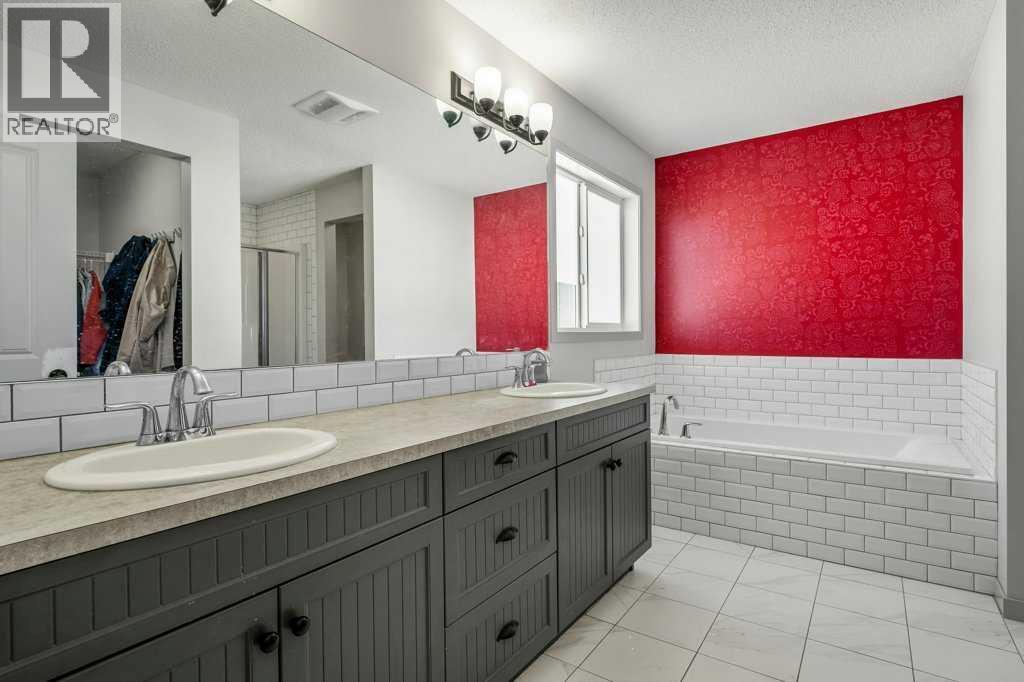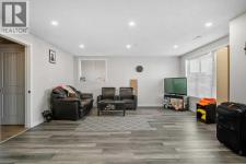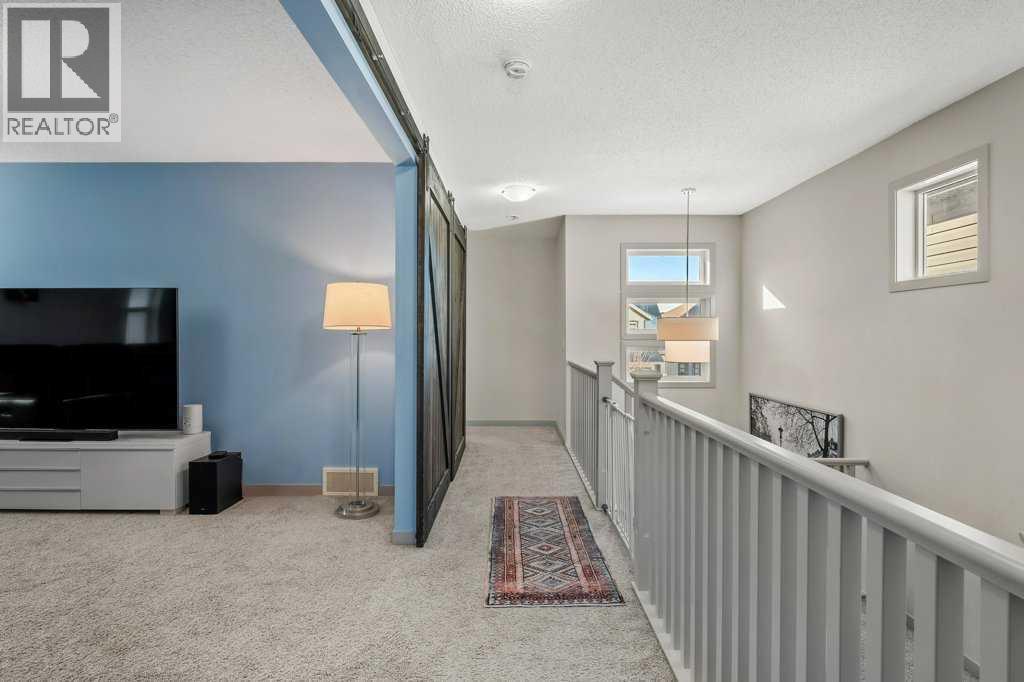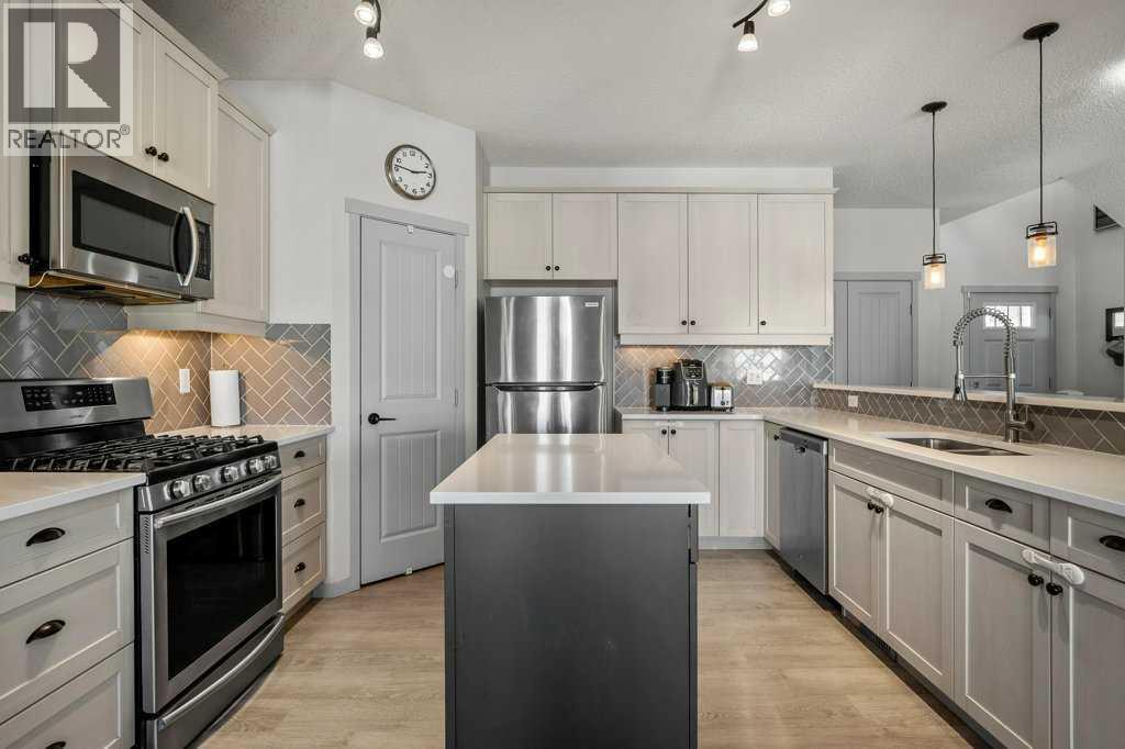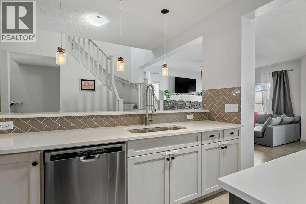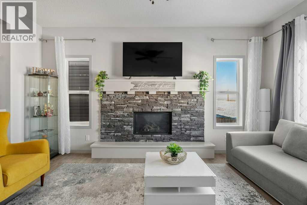 Situated on a quiet, family-friendly street just steps from parks and green spaces—with no neighbours behind—this impressive home offers a fully developed walkout basement with an illegal one-bedroom suite, central air conditioning, newer shingles, and a striking curb-appeal-rich front elevation boasting vertical siding and stone accents. Step inside to 9’ ceilings and neutral tones throughout, creating a bright and welcoming atmosphere. A convenient side mudroom with a 2-piece bathroom sits just off the entry, while the back of the home opens into an entertainment-style layout designed for modern living. The kitchen features a full appliance package including a gas stove, extended cabinetry, quartz countertops, prep island, walk-through pantry, herring bone backsplash—anchored by a massive eating bar overlooking the spacious family-size dining area with access via the sliding doors to the upper vinyl deck wrapped in railing.The rear family room is warmed by a focal gas fireplace with upper mantle and lower hearth, perfectly positioned to capture brilliant east-facing morning light. Open railings and transom windows lead upstairs to a thoughtfully designed upper level, highlighted by a central bonus room with barn door closure. Two front children’s bedrooms share a tiled 4-piece bathroom accented with subway tile, while an upper laundry room adds everyday convenience. The rear primary retreat easily accommodates a king-size bed and includes a walk-in closet and spa-inspired 5-piece ensuite featuring tiled floors, dual sinks, a deep soaker tub wrapped in tile accents, and an oversized walk-in shower.The walkout lower level is fully finished and filled with natural light from a wall of windows, offering a second living space, kitchen area with a full appliance package, fourth bedroom, and a 3-piece bathroom—ideal for extended family or supplemental living. Outside, the yard is fully fenced and landscaped, complete with a lower concrete patio, synthetic grass put ting green, and a wrap-around walkway from front to back.Located on a traditional lot, this well-appointed home delivers space, functionality, and lifestyle—sure to impress. (id:6769)