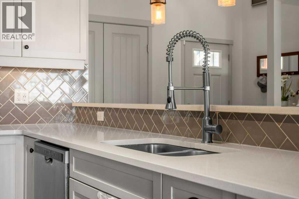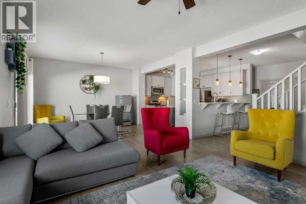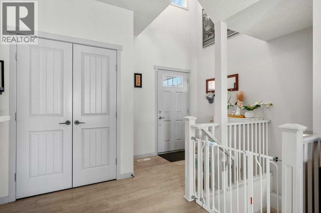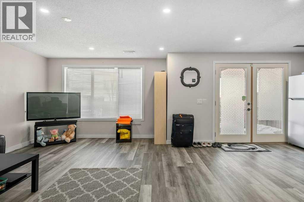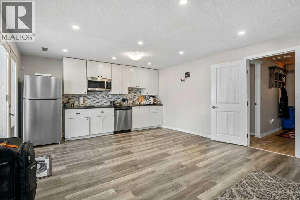 Situated on a quiet, family-friendly street just steps from parks and green spaces—with no neighbours behind—this impressive home offers a fully developed walkout basement with an illegal one-bedroom suite, central air conditioning, newer shingles, and a striking curb-appeal-rich front elevation boasting vertical siding and stone accents. Step inside to 9’ ceilings and neutral tones throughout, creating a bright and welcoming atmosphere. A convenient side mudroom with a 2-piece bathroom sits just off the entry, while the back of the home opens into an entertainment-style layout designed for modern living. The kitchen features a full appliance package including a gas stove, extended cabinetry, quartz countertops, prep island, walk-through pantry, herring bone backsplash—anchored by a massive eating bar overlooking the spacious family-size dining area with access via the sliding doors to the upper vinyl deck wrapped in railing.The rear family room is warmed by a focal gas fireplace with upper mantle and lower hearth, perfectly positioned to capture brilliant east-facing morning light. Open railings and transom windows lead upstairs to a thoughtfully designed upper level, highlighted by a central bonus room with barn door closure. Two front children’s bedrooms share a tiled 4-piece bathroom accented with subway tile, while an upper laundry room adds everyday convenience. The rear primary retreat easily accommodates a king-size bed and includes a walk-in closet and spa-inspired 5-piece ensuite featuring tiled floors, dual sinks, a deep soaker tub wrapped in tile accents, and an oversized walk-in shower.The walkout lower level is fully finished and filled with natural light from a wall of windows, offering a second living space, kitchen area with a full appliance package, fourth bedroom, and a 3-piece bathroom—ideal for extended family or supplemental living. Outside, the yard is fully fenced and landscaped, complete with a lower concrete patio, synthetic grass put ting green, and a wrap-around walkway from front to back.Located on a traditional lot, this well-appointed home delivers space, functionality, and lifestyle—sure to impress. (id:6769)