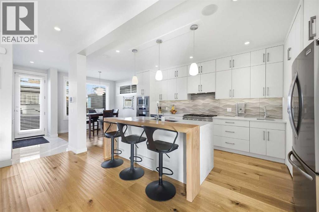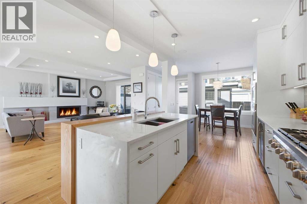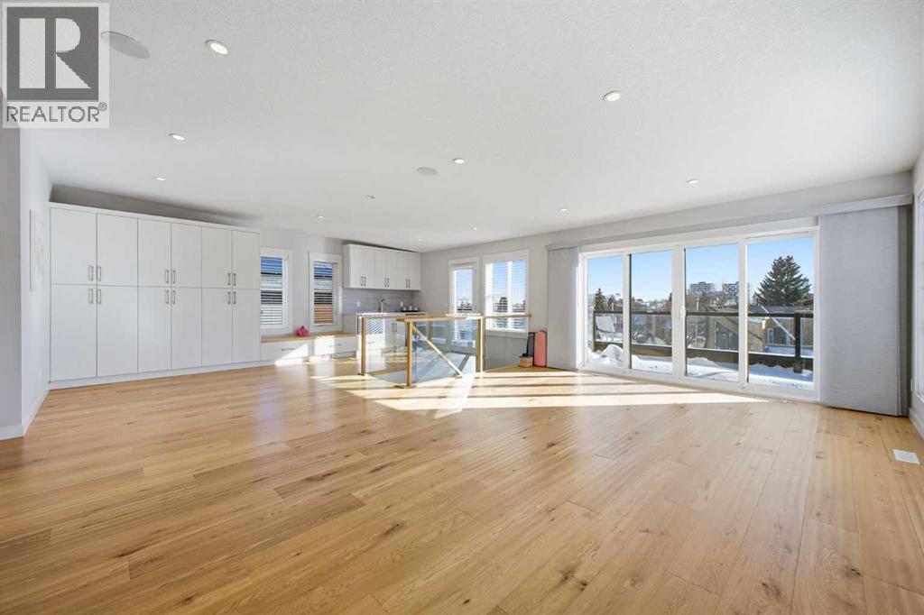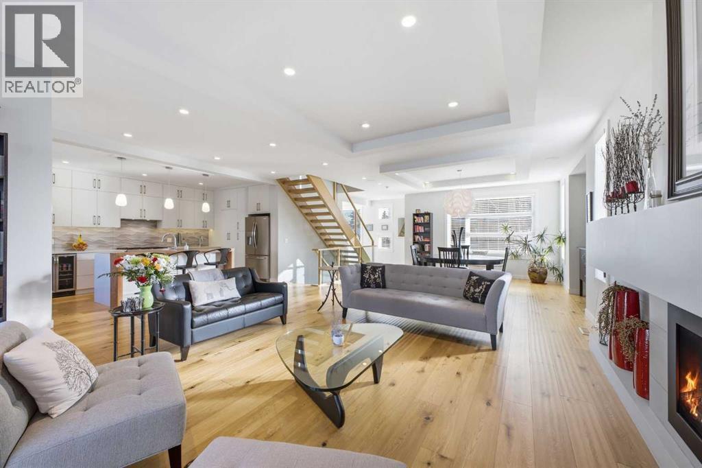 OPEN HOUSE SATURDAY, FEBRUARY 28TH FROM 1-4 PM. PANORAMIC CITY AND DOWNTOWN VIEWS define this contemporary 4 bedroom residence in historic Bridgeland, offering over 4,600 sq ft of beautifully designed living space, including a fully developed walk out basement. Thoughtfully crafted for both everyday comfort and elevated entertaining, the home blends modern finishes with exceptional functionality. The open, airy main level features hardwood floors and soaring ceilings. A spacious dining area easily accommodates large gatherings, while the living room—anchored by a remote controlled feature fireplace—creates a warm, inviting focal point. The kitchen is tastefully appointed with quartz countertops, an island with eating bar, abundant cabinetry including a walk in pantry, stainless steel appliances, and a bright breakfast nook. A mudroom and 2 piece powder room complete this level. The second floor hosts three well proportioned bedrooms, a 5 piece bath, and a laundry room equipped with a sink and storage. The private primary retreat enjoys its own balcony with city views, a generous walk in closet, and a secluded 5 piece ensuite featuring in-floor heat, dual sinks, a relaxing soaker tub, and an oversized shower. The third level is an exceptional entertaining space, offering a large loft with wet bar and access to a spectacular rooftop patio showcasing sweeping skyline views. A fourth bedroom and a 3 piece bath with rejuvenating steam shower complete this upper level. The fully developed walk out basement, warmed with in floor heat, includes a spacious recreation/media room with wet bar, a dedicated office, and a 3 piece bath. Additional highlights include new hardwood flooring in the loft and bedrooms, built in speakers, a south facing front patio, and a private backyard with deck, swim spa, and access to the heated triple detached garage. This exceptional property enjoys an enviable location close to Bridgeland’s charming shops, cafés, and restaurants, the Calgary Zoo, Bow River pathways, schools, public transit, and offers effortless access to the downtown core. (id:6769)