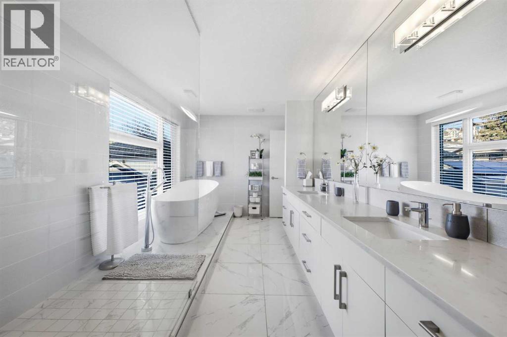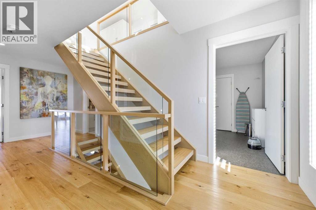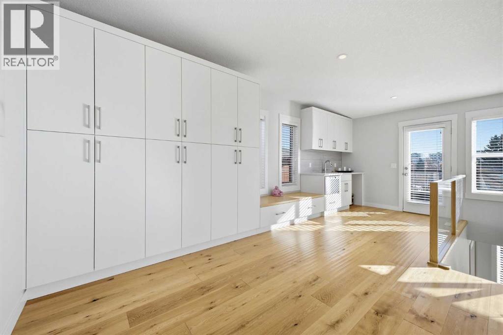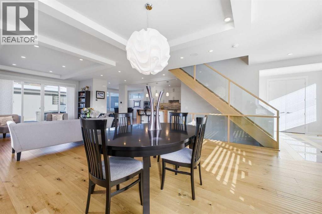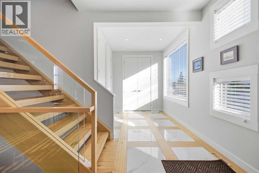 OPEN HOUSE SATURDAY, FEBRUARY 28TH FROM 1-4 PM. PANORAMIC CITY AND DOWNTOWN VIEWS define this contemporary 4 bedroom residence in historic Bridgeland, offering over 4,600 sq ft of beautifully designed living space, including a fully developed walk out basement. Thoughtfully crafted for both everyday comfort and elevated entertaining, the home blends modern finishes with exceptional functionality. The open, airy main level features hardwood floors and soaring ceilings. A spacious dining area easily accommodates large gatherings, while the living room—anchored by a remote controlled feature fireplace—creates a warm, inviting focal point. The kitchen is tastefully appointed with quartz countertops, an island with eating bar, abundant cabinetry including a walk in pantry, stainless steel appliances, and a bright breakfast nook. A mudroom and 2 piece powder room complete this level. The second floor hosts three well proportioned bedrooms, a 5 piece bath, and a laundry room equipped with a sink and storage. The private primary retreat enjoys its own balcony with city views, a generous walk in closet, and a secluded 5 piece ensuite featuring in-floor heat, dual sinks, a relaxing soaker tub, and an oversized shower. The third level is an exceptional entertaining space, offering a large loft with wet bar and access to a spectacular rooftop patio showcasing sweeping skyline views. A fourth bedroom and a 3 piece bath with rejuvenating steam shower complete this upper level. The fully developed walk out basement, warmed with in floor heat, includes a spacious recreation/media room with wet bar, a dedicated office, and a 3 piece bath. Additional highlights include new hardwood flooring in the loft and bedrooms, built in speakers, a south facing front patio, and a private backyard with deck, swim spa, and access to the heated triple detached garage. This exceptional property enjoys an enviable location close to Bridgeland’s charming shops, cafés, and restaurants, the Calgary Zoo, Bow River pathways, schools, public transit, and offers effortless access to the downtown core. (id:6769)