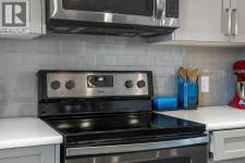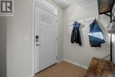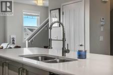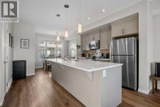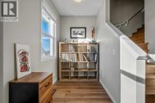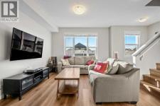 This stylish 2017-built home boasts a combination of vinyl and stone exterior, a double attached side by side garage, central air for year-round comfort a front concrete lower patio faces a green space for added privacy. Step inside to a tiled entry featuring a storage room, full-size washer and dryer, and a 2-year-old hot water tank. Garage access includes a 220V outlet, slat wall system, two upper storage shelves 220 volt and a convenient water tap completely insulated, drywalled and painted.Freshly painted interior, Enjoy 9’ knockdown ceilings and newly installed WPC plank flooring throughout the entire home including all the stairs. The front lifestyle room flows seamlessly into the center kitchen and back dining area. The kitchen is a chef’s dream with a center island, quartz counters, soft-close drawers, stylish grey cabinets, subway tile backsplash, a full set of stainless-steel appliances including a smooth-top stove, dishwasher, fridge, and microwave/hood combo. Additional features include a pantry closet, programmable thermostat, tech niche, 2 piece guest bath and garden door leading to a vinyl-deck with an outdoor outlet and BBQ gas line.WPC plank flooring continues upstairs with no carpet and seamless vents throughout the home. Two back bedrooms include one with a built-in closet organizer. The 4-piece main bath features a tiled tub surround with decorative accents, a quartz storage vanity, under-mount sink, and linen closet. The front primary suite offers mountain views, a walk-in closet, and a 3-piece tiled en-suite with full-size shower and quartz storage vanity. The perfect 3 bedroom, 2.5 bath plan with double attached garage on a quiet location and added comfort features positioned with ease of access to local amenities and quick access to 52nd Street as well as 130th Ave! (id:6769)
