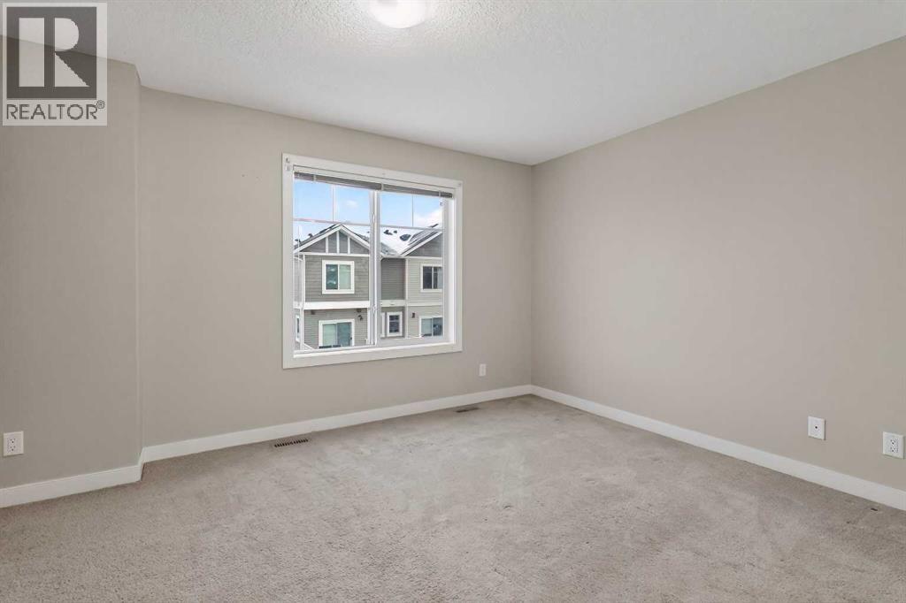 BACKING ONTO A HUGE GREEN SPACE, this bright and spacious open-concept townhouse condo in Kintalla of Redstone offers an exceptional location and layout. The main floor features laminate flooring, a generous living room, and a beautifully designed kitchen with ceiling-height cabinets, ample counter space, and a centre island with breakfast bar, along with a large dining area that opens to the balcony and a convenient 2-piece bath. Upstairs includes two primary bedrooms, each with its own ensuite, plus upper-level laundry for added convenience. Ideally situated near shopping, parks, playgrounds, a future school site, transit, quick access to Stoney Trail, and just minutes from Calgary International Airport, this home is perfect for first-time buyers and investors alike. (id:6769)
