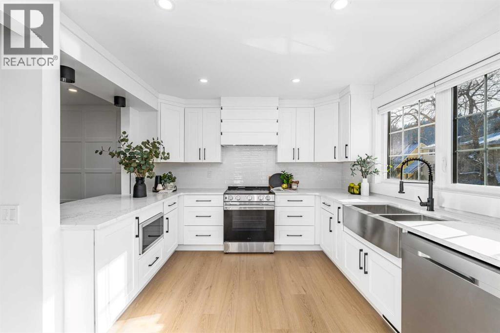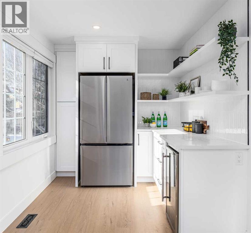 OPEN HOUSE SATURDAY MARCH 7 FROM 12-2PM! Check out our 24/7 Virtual Open house...Tucked into the sought-after community of Point McKay, just steps to the Bow River and pathway system, this beautifully renovated 3-bedroom, 2.5-bath townhome offers the perfect blend of style, function, and location. With almost 1600 sq ft above grade plus a 300+ sq ft finished lower level, this move-in-ready home has been thoughtfully updated from top to bottom including 8mm luxury vinyl plank flooring throughout and an attached single garage for everyday convenience.The living room features sleek glass railings, soaring ceilings and a cozy gas fireplace anchoring the room. Off the living room, step out onto the rear deck overlooking a peaceful greenspace—a private, calming backdrop that’s perfect for morning coffee or unwinding after a long day.The redesigned kitchen is a standout—finished with quartz countertops, high-quality cabinetry with dovetail joints and soft-close hardware, a custom hood fan, apron sink, built-in microwave, high-end hardware, and brand-new appliances, including an additional beverage fridge for effortless entertaining.Upstairs, you’ll find a spacious primary retreat complete with custom-built closets and an updated ensuite, plus two additional bedrooms, each with custom closet systems, and an additional full bathroom. Downstairs, the finished lower level provides tons of extra living space, including a large rec room—ideal for a media room, gym, play area, or home office setup.Other important updates include newer triple-pane windows throughout most of the home and a brand-new hot water tank for added peace of mind. Enjoy unbeatable access to downtown, Foothills Hospital, the University of Calgary, and quick routes west to the mountains—while having endless outdoor recreation literally at your doorstep on the Bow River Pathway System.Stylish, turnkey, and exceptionally located—this is Point McKay living at its best. (id:6769)