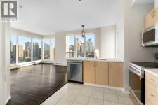 This exceptional end unit on the north side of Vantage Pointe offers truly breathtaking panoramic views of the Downtown Core and the Rocky Mountains, plus stunning east-facing city views you’ll never get tired of. Perched on the 15th floor, this bright and beautifully updated 2-bedroom, 2-bathroom home delivers both comfort and convenience in the heart of the city.Recently refreshed, the unit was painted and the kitchen has been fully upgraded with brand new smart appliances, a new countertop, a modern sink and faucet and new light fixtures - blending style with everyday functionality. Floor-to-ceiling windows flood the space with natural light and frame those spectacular views from nearly every angle.Step outside onto your spacious east-facing balcony, complete with a gas outlet, perfect for summer BBQs or simply enjoying the sunrise with your morning coffee. Inside, you’ll also appreciate the convenience of in-suite laundry and a smart, functional layout that maximizes space and privacy.Residents of Vantage Pointe enjoy a well-equipped fitness facility with steam room, an Owners’ Lounge, bike storage, underground titled parking, and ample heated visitor parking. Condo fees include heat, water, electricity, and your parking stall - simplifying your monthly budgeting.With Co-op grocery and a liquor store conveniently located right downstairs, daily errands couldn’t be easier. Four high-speed elevators ensure seamless access, making this building both efficient and comfortable to live in.Vantage Pointe offers central, convenient urban living at an accessible price point - and opportunities like this rarely come up. Book your private viewing today - and come see how easy it is to truly love where you live. (id:6769)