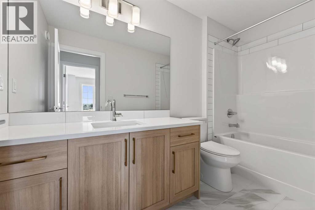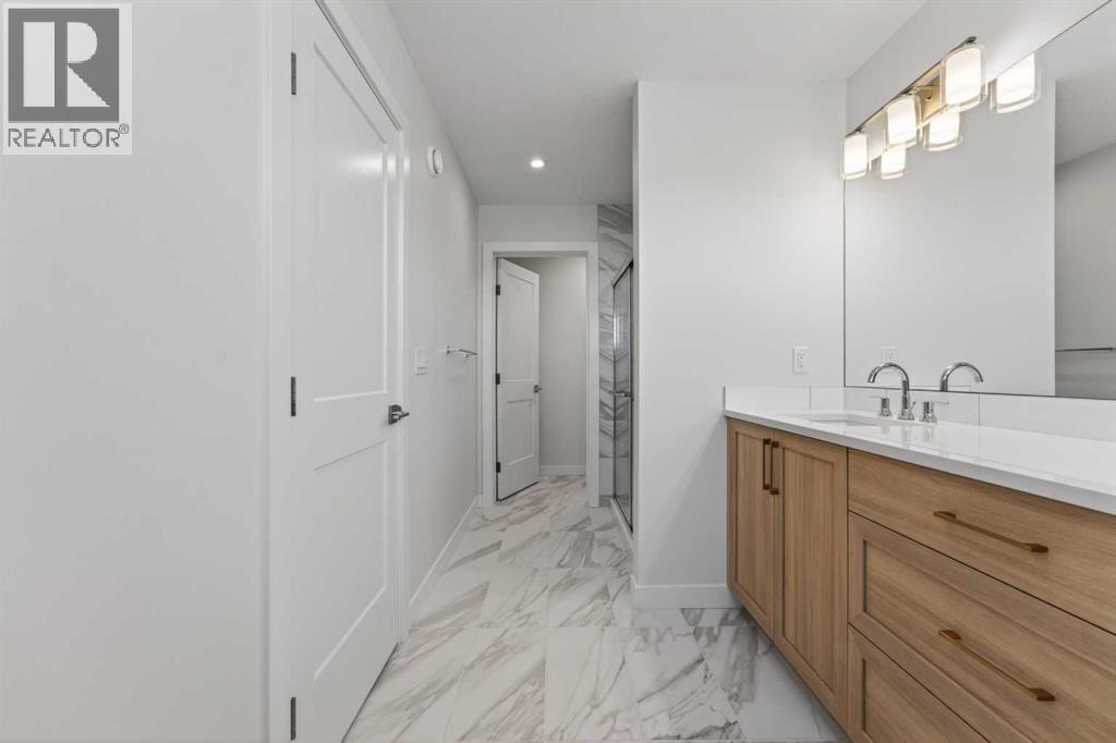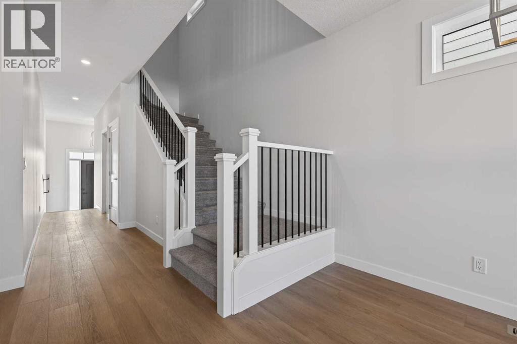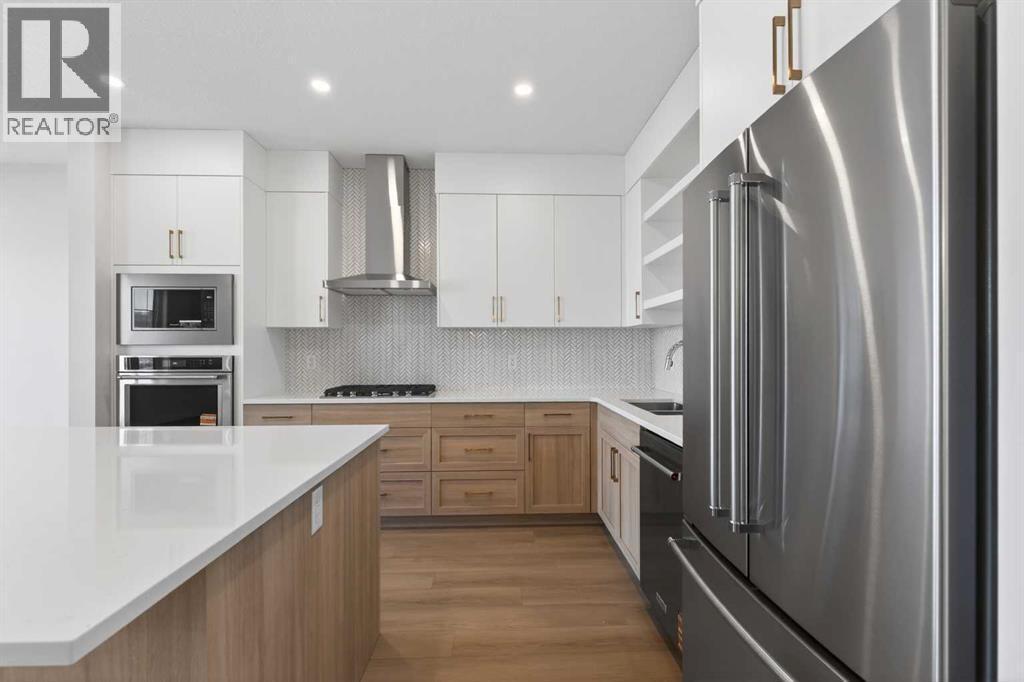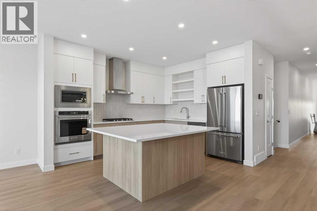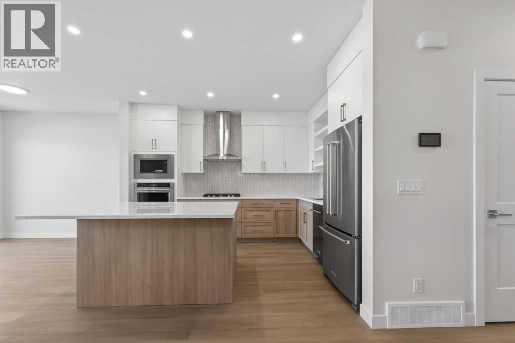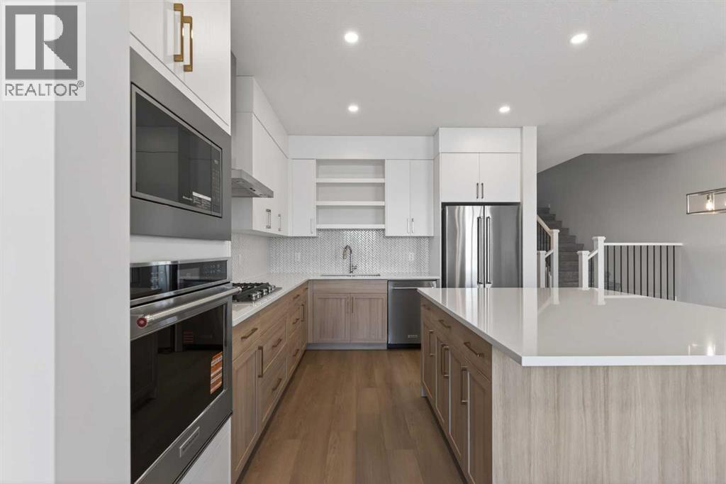 OPEN HOUSE, March 1, Sunday 2-4pm**New Luxury home with many upgrades! Stunning 3 bedroom, 2.5 Bath Home is ready for immediate possession. Built by Partners with Full New Home warranty. Entering in the front door you will notice beautiful upgraded LPV flooring. Stepping into the BRIGHT OPEN Main floor the stunning Chef's kitchen will get your attention with it's Huge island, Upgraded cabinets with soft close drawers & doors, Quartz counters, Walk-in pantry, ALL Kitchen Appliance are High-End Stainless Steel "Kitchen Aide" Gas stove top, built-in convection oven, Built-in microwave, Refrigerator & Dishwasher. The Dining room is family size, and the Generous Livingroom has a gas fireplace with gorgeous front facia and Mantle. The fireplace also has a fan for circulating warm air. There are garden doors to the deck that has a gas-line for Bar-B-Q. All light fixtures are LED. Completing the main floor is a Powder room. Up the stairs you will notice the wide staircase with upgraded railings. Luxury appointments continue on the second floor starting with a large family Bonus room with extra LED lighting. The Primary suite is King sized, with a large walk-in closet, The En-suite has been upgraded and is gorgeous with it's walk-in shower, separate soaker tub and Quartz counters. There are 2 more large bedrooms with large closets and a 4 piece bath. The laundry is complete with high end washer/dryer, conveniently located on the second floor. Home is equipped with "hot water on demand" for those long hot showers. The lower level is unfinished but has been well laid out to create more living space, with High ceilings, plumbing & electrical neatly tucked in, home is roughed in for Central AC, Basement has a rough -in for full bath. HUGE Egress window has been added. The garage is insulated & drywalled. **Walkway and driveway to be poured concrete as soon as weather permits. All this plus a Great Location. A short walk or bicycle ride to the Farmer's market. Plenty of shoppin g and Great Restaurants close by. Easy access to Stony Trail and Crowchild Trail. (id:6769)
