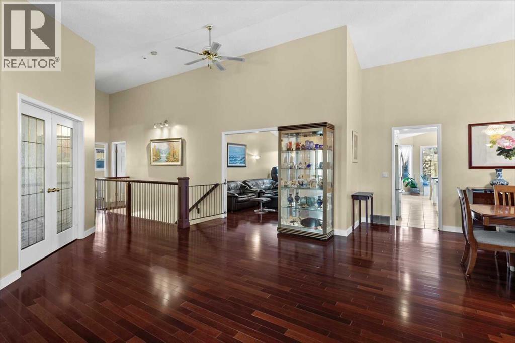 Located on a quiet crescent in Varsity Estates, this classic all-brick 2,480 sq ft executive bungalow with 5 bedrooms and 3 full bathrooms reflects years of thoughtful ownership and steady investment.Vaulted ceilings and architectural lines create an immediate sense of openness, while rich Brazilian hardwood floors add warmth and continuity throughout the main living areas. The formal living and dining rooms are bright and inviting, and the family room offers a comfortable gathering space centered around a brick gas fireplace.The kitchen features updated cabinetry, countertops, flooring, and appliances, and flows naturally into a sun-filled breakfast nook framed by large windows overlooking the spacious backyard. Morning coffee here feels private and peaceful, surrounded by mature trees and established landscaping.The main floor includes a spacious Master bedroom complete with a large walk-in closet and ensuite featuring a soaker tub and separate shower, a generously sized second bedroom with access to the main floor 4pc bath, the home office with French doors can also be used as a bed room, and a laundry room.The fully developed lower level adds two additional bedrooms, a 4 pc bath, and expansive space for recreation, media, or extended family living, with a rough-in for a future wet bar offering flexibility for customization.Over the years, the sellers have made substantial upgrades to ensure long-term comfort and reliability. All bathrooms and the laundry area have been updated. Triple-pane windows and exterior doors were installed in 2022, Poly-B plumbing was fully replaced in 2021, and two high-efficiency furnaces, complemented by a high-efficiency tankless hot water system in December 2025.The oversized pie lot boasts an underground sprinkler system that is maintained annually. The security system has been updated with outside camera.This is a well-cared-for home in one of Calgary’s most established communities. Located close to highly regarded schools , parks, pathways, transit, Market Mall, the University of Calgary and Foothills Medical Centre, this home offers both everyday convenience and long-term desirability. (id:6769)