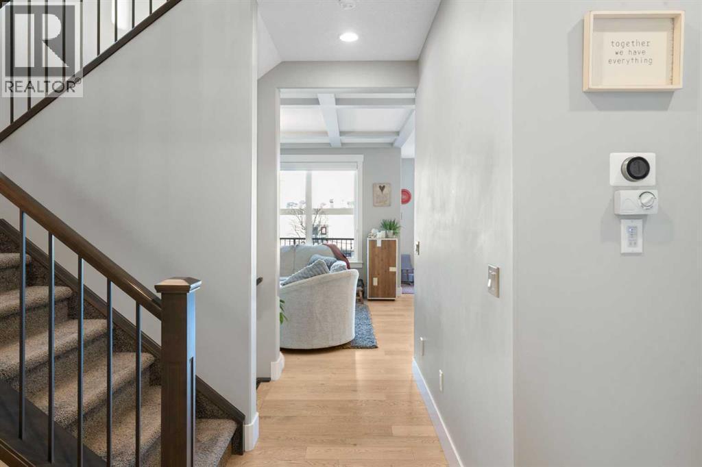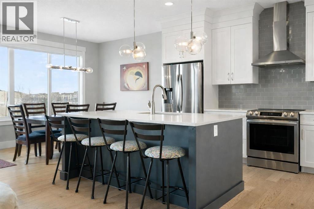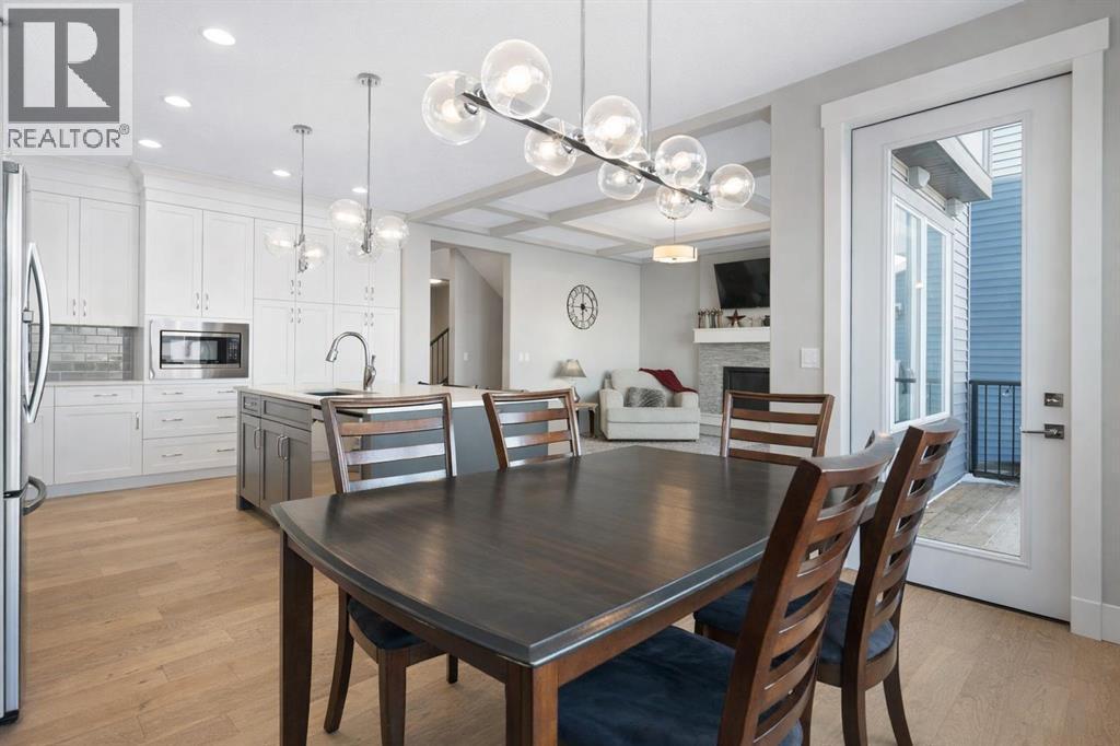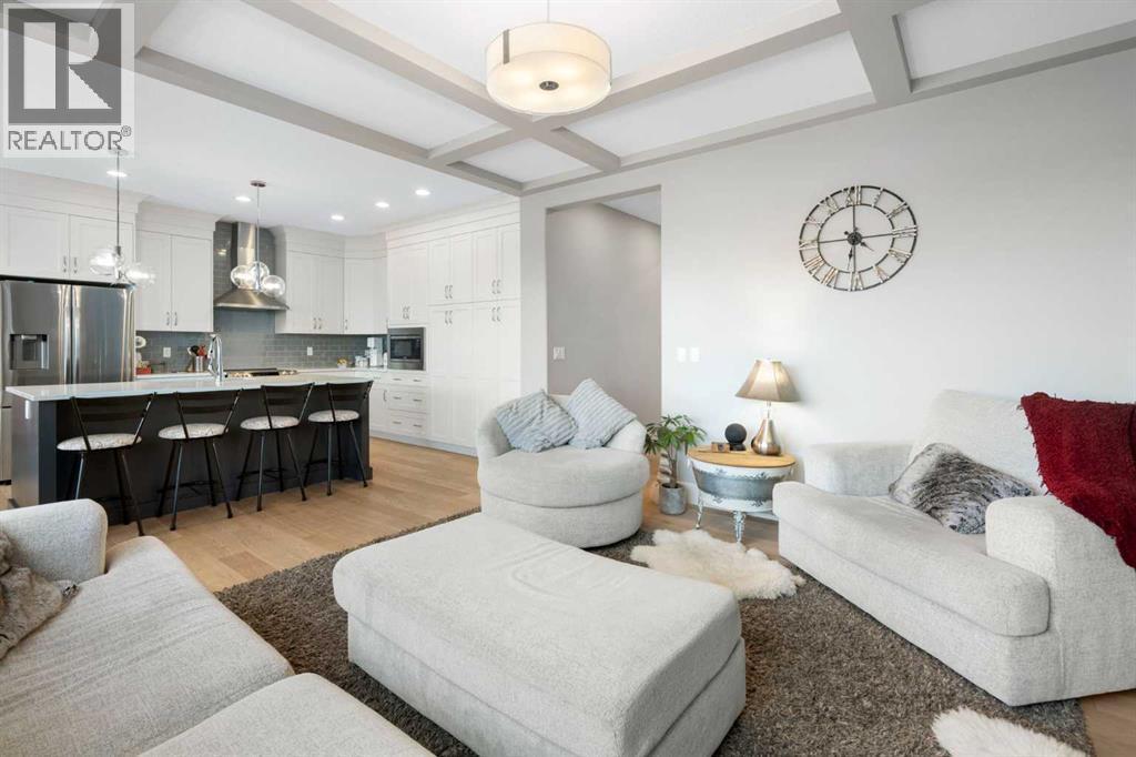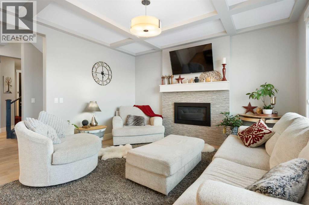 Welcome to a home that feels elevated from the very first step inside. Custom built by Harder Homes, this beautifully crafted two storey in Coopers Crossing offers over 3000 square feet of thoughtfully developed living space. With its distinctive exterior, sloped roof lines, and MASSIVE GARAGE, the curb appeal makes a strong first impression. Inside, the sense of space and intention continues. The main floor unfolds with a grand foyer that opens into a warm and welcoming great room, anchored by coffered ceilings and a GAS FIREPLACE that invites slow evenings and enjoyable gatherings. ENGINEERED HARDWOOD floors carry throughout, paired with 9' CEILINGS and 8' DOORS that add both height and presence. The kitchen is truly the heart of the home. Beautifully finished with ceiling height cabinetry, stainless steel appliances, and a generous center island, it offers exceptional storage and space to cook, host, & connect. The dining area sits just off the kitchen, filled with natural light and perfectly positioned for everyday meals or weekend entertaining. A dedicated MAIN FLOOR OFFICE creates a quiet place to work or study, tucked away yet still connected to the rhythm of the home. The mudroom leading to the garage is complete with built-ins and a charming barn door, keeping busy days organized. Every detail feels considered, right down to the Nest thermostat and the added AIR CONDITIONING (2022) for year round comfort. Upstairs, the layout is as functional as it is spacious. The primary suite feels like a true retreat, with room to unwind, a large WALK-IN CLOSET with custom built-ins, and a luxurious 5 piece ensuite featuring dual sinks, a deep soaker tub, & a spacious shower. Two additional bedrooms are generously sized and share a well appointed 5 piece bath with double sinks, ideal for growing families. The BONUS ROOM offers flexibility for movie nights or play space, complete with a rough in for speakers to elevate your home entertainment experience. An upgraded rail ing adds a refined architectural touch as you move between levels. The fully developed basement extends the living space even further, with a massive recreation and media area that easily adapts to your needs. A 4th bedroom, separate den and full 4 piece bathroom make it perfect for guests, teens, or multi generational living. Backing directly onto a school, the backyard setting offers both privacy and convenience, with no rear neighbours and quick access to green space and community pathways. Living in Coopers Crossing means being part of one of Airdrie’s most sought after neighbourhoods, known for parks, schools, and a strong sense of community. It is the kind of place where families put down roots and stay awhile. Book your private showing and experience it for yourself! *Some photos have been virtually staged* (id:6769)