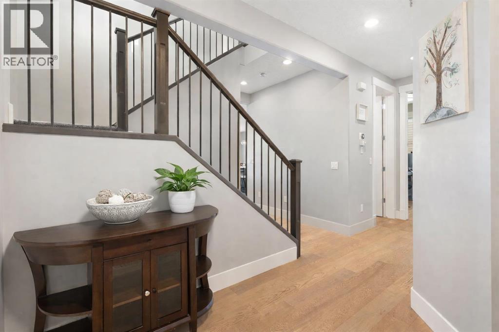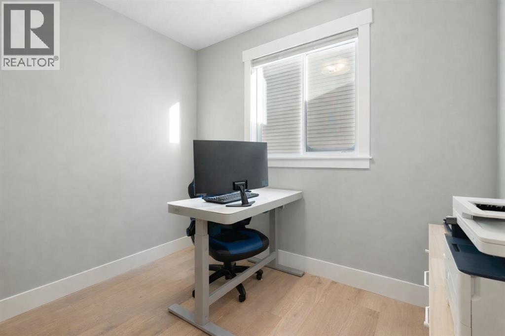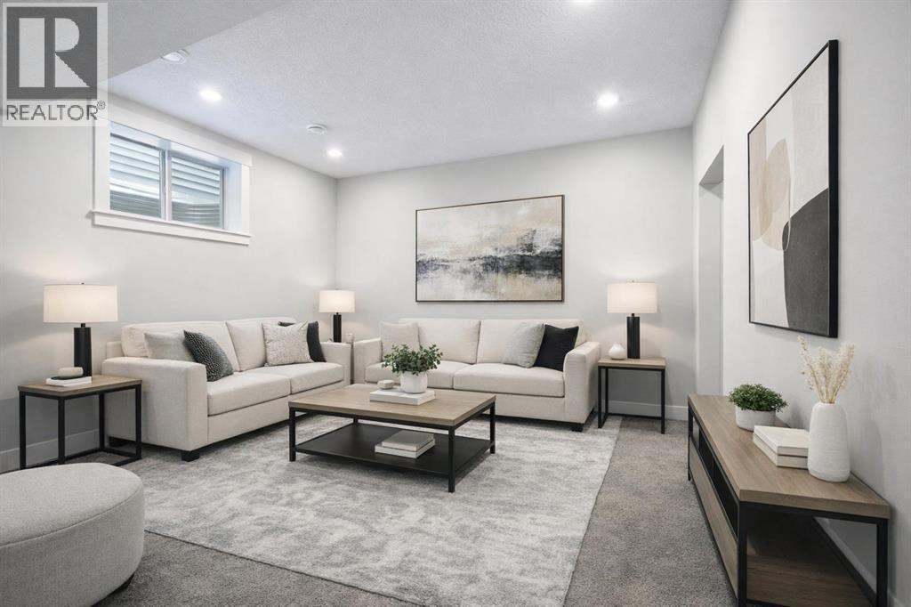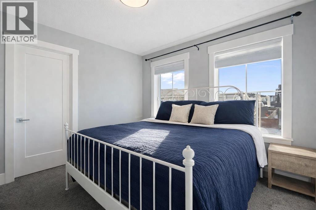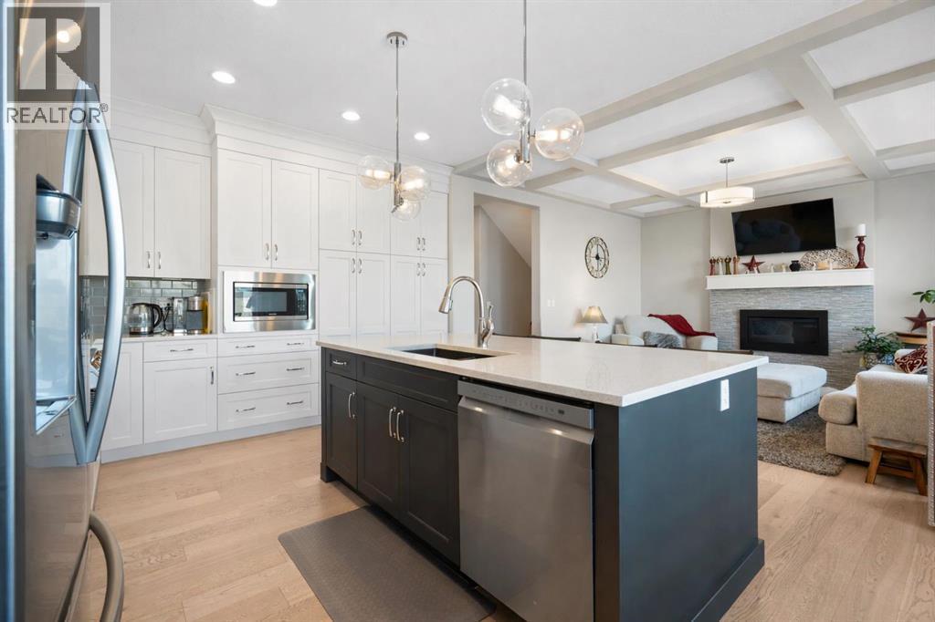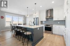 Welcome to a home that feels elevated from the very first step inside. Custom built by Harder Homes, this beautifully crafted two storey in Coopers Crossing offers over 3000 square feet of thoughtfully developed living space. With its distinctive exterior, sloped roof lines, and MASSIVE GARAGE, the curb appeal makes a strong first impression. Inside, the sense of space and intention continues. The main floor unfolds with a grand foyer that opens into a warm and welcoming great room, anchored by coffered ceilings and a GAS FIREPLACE that invites slow evenings and enjoyable gatherings. ENGINEERED HARDWOOD floors carry throughout, paired with 9' CEILINGS and 8' DOORS that add both height and presence. The kitchen is truly the heart of the home. Beautifully finished with ceiling height cabinetry, stainless steel appliances, and a generous center island, it offers exceptional storage and space to cook, host, & connect. The dining area sits just off the kitchen, filled with natural light and perfectly positioned for everyday meals or weekend entertaining. A dedicated MAIN FLOOR OFFICE creates a quiet place to work or study, tucked away yet still connected to the rhythm of the home. The mudroom leading to the garage is complete with built-ins and a charming barn door, keeping busy days organized. Every detail feels considered, right down to the Nest thermostat and the added AIR CONDITIONING (2022) for year round comfort. Upstairs, the layout is as functional as it is spacious. The primary suite feels like a true retreat, with room to unwind, a large WALK-IN CLOSET with custom built-ins, and a luxurious 5 piece ensuite featuring dual sinks, a deep soaker tub, & a spacious shower. Two additional bedrooms are generously sized and share a well appointed 5 piece bath with double sinks, ideal for growing families. The BONUS ROOM offers flexibility for movie nights or play space, complete with a rough in for speakers to elevate your home entertainment experience. An upgraded rail ing adds a refined architectural touch as you move between levels. The fully developed basement extends the living space even further, with a massive recreation and media area that easily adapts to your needs. A 4th bedroom, separate den and full 4 piece bathroom make it perfect for guests, teens, or multi generational living. Backing directly onto a school, the backyard setting offers both privacy and convenience, with no rear neighbours and quick access to green space and community pathways. Living in Coopers Crossing means being part of one of Airdrie’s most sought after neighbourhoods, known for parks, schools, and a strong sense of community. It is the kind of place where families put down roots and stay awhile. Book your private showing and experience it for yourself! *Some photos have been virtually staged* (id:6769)