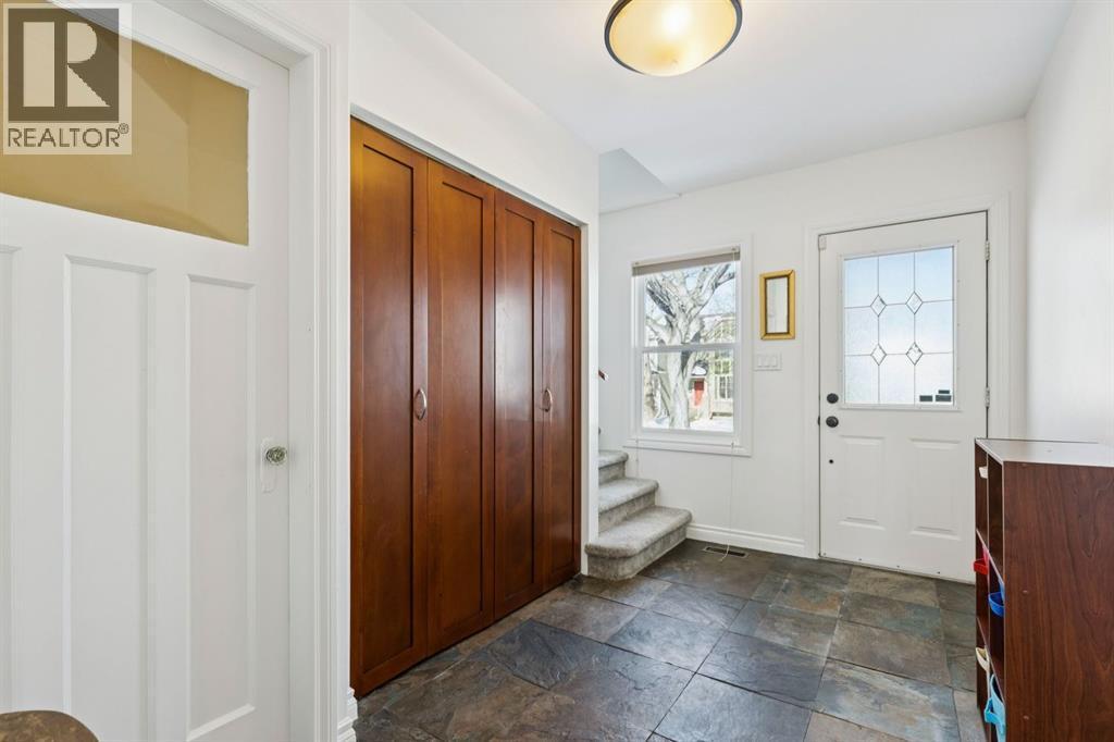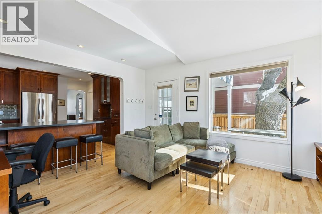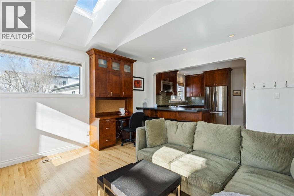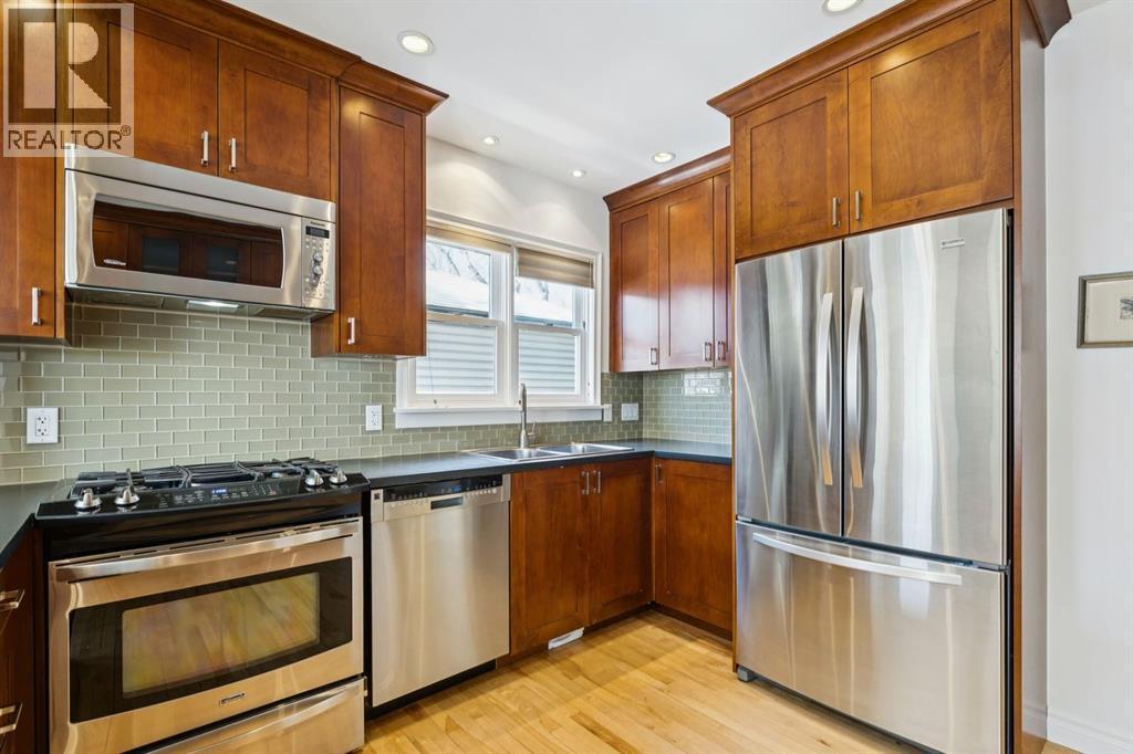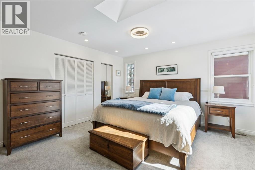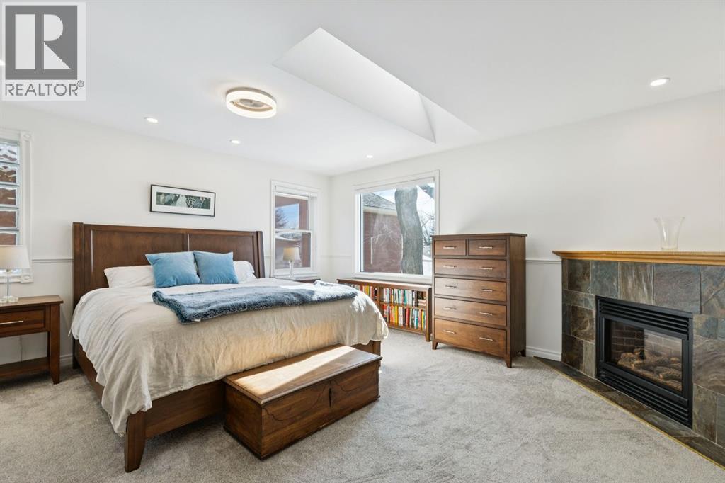 Tucked away on a quiet, tree lined street in a prime central location, this rare and charming home sits on a 41' lot and offers the perfect blend of character, comfort, and extensive modern renovations. From the moment you arrive, the beautiful curb appeal draws you in with a brick walkway and welcoming front porch, setting the tone for what awaits inside. A spacious slate tiled foyer opens to hardwood floors throughout the main level, where the bright and inviting living room features elegant archways leading to the dining room and french doors that open onto a large rear deck, thoughtfully designed around a mature tree to preserve nature and enhance the serene setting. The modern kitchen showcases rich cherry cabinetry, laminate counters, a glass tile backsplash, eat up peninsula, and stainless steel appliances, including a gas stove, making it both stylish and functional. A stunning family room boasts vaulted ceilings, a skylight, custom built-in media centre, built-in desk, and walls of windows that flood the space with natural light while providing direct access to the expansive south facing backyard and deck. Upstairs, plush carpet leads to three bedrooms including a spectacular primary retreat featuring a corner gas fireplace, large windows, and its own skylight. The luxurious 5pc ensuite offers a jetted tub, heated floors, glass enclosed shower with rainfall shower head, dual closets, and an abundance of natural light. The other two bedrooms share a modern 3pc bath and a convenient stacked laundry area complete the upper level. The lower level offers a separate entrance and presents cork tile flooring, a massive storage area with cold room, and spacious rec room with another corner gas fireplace. A fourth bedroom currently designed as a home office, and an additional 3pc bathroom finish the lower level offering a great space for families. Additional highlights include a tankless hot water, a Home nuvoH2O water softening system, and a large south exposed back yard with mature trees, garden space, green lawn, brick pathway to the single detached garage, and an additional shed. Located in the highly sought after Mount Pleasant community, residents enjoy a vibrant inner city lifestyle with easy access to downtown, schools, parks, playgrounds, public transit, and the Mount Pleasant Community Sportsplex, along with trendy cafés and local shops, all while benefiting from the charm and tranquility of a well established neighbourhood. Come see this gem and get ready to make this house your "home." (id:6769)