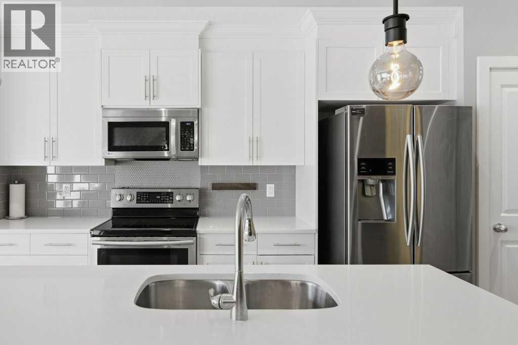 Introducing a stunning 2-storey townhome in the highly coveted community of Heritage Hills. This home exemplifies modern sophistication, convenience, thoughtful design, and a superb location, making it an extraordinary opportunity for discerning homeowners. Step inside and experience the elegance of this open-concept floor plan, featuring soaring 9-foot ceilings on the main level, complemented by luxury vinyl plank floors. The upgraded chef’s kitchen boasts premium stainless-steel appliances, quartz countertops, and striking cabinets, creating an inviting space for culinary creativity. The spacious family room seamlessly opens to the back yard which backs directly onto a green space, perfect for relaxation and entertaining. These sellers tell endless stories about all the mule deer that visit on a consistent basis – what an incredible location. On the upper level, you will find two children’s rooms, the main four piece bathroom, the upper laundry and the upper loft which is an absolutely perfect homework station for the kids. The oversized primary suite is nothing short of a retreat, offering a walk-in closet and a fully equipped ensuite featuring quartz counters and a huge shower for ultimate comfort. The unfinished basement could be easily developed and is ready to go with the large egress window and roughed in plumbing. This home also includes a fully drywalled single detached garage adding practicality and value. The front and back yards are designed for low-maintenance living with gorgeous landscaping out front and an entertainers dream deck off the back. Heritage Hills is renowned for its accessibility and vibrant community life. Residents enjoy a pathway system that not only surrounds this cul-de-sac but also weaves through Heritage Hills. This neighborhood offers everything you need within reach, including shopping, education, recreation and being on the west side you are way ahead of the traffic when headed to the mountains for a family getaway. Don’t miss the chance to make this spectacular home your own. Schedule your viewing today and discover the perfect blend of an Unbeatable Location, Contemporary Design and Move in Ready Convenience. (id:6769)