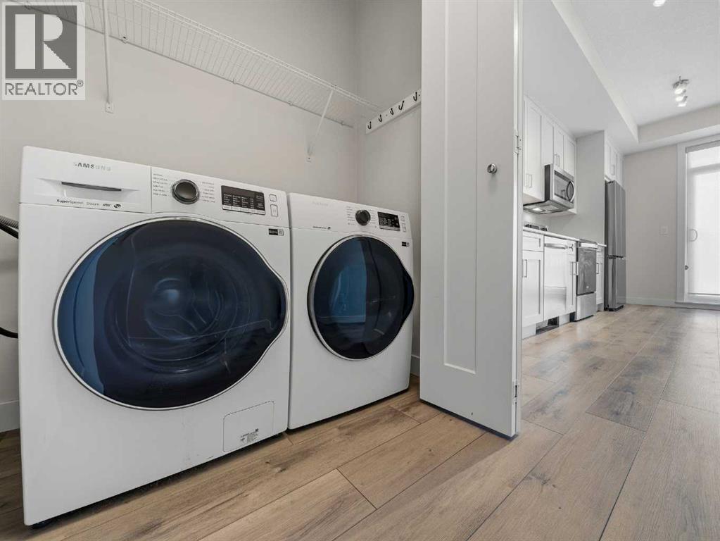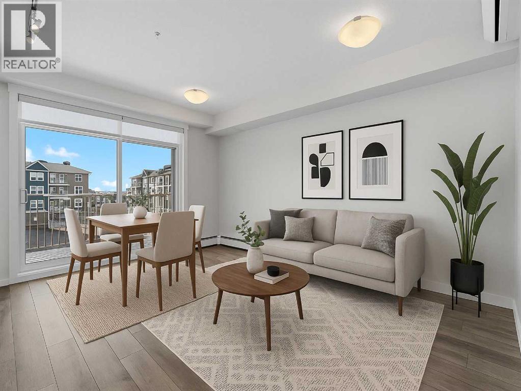Welcome to lakeside living in Auburn Bay, one of Calgary’s most vibrant and amenity-rich communities! This 1-bedroom, 1-bathroom condo on the 3rd floor is an excellent opportunity for first-time buyers, downsizers, or investors seeking a modern, low-maintenance lifestyle in a highly desirable location. Built in 2023 and located in Auburn Rise, this bright single-level unit offers 503.39 sq. ft. of thoughtfully designed living space with luxury finishes and an efficient open layout. The kitchen features quartz countertops, stainless steel appliances, and ample cabinetry, flowing seamlessly into the living and dining areas, perfect for everyday living or entertaining. The spacious bedroom includes a large closet, easy access to the 4-piece bathroom, while in-suite laundry adds everyday convenience. Stay comfortable year-round with in-unit air conditioning. Step outside to your private balcony, ideal for enjoying fresh air and the surrounding community views. This unit comes with a titled parking stall, a separate storage locker, and access to common bike storage. Condo fees are $251.92/month and include heat, water, insurance, professional management, reserve fund contributions, snowremoval, and sewer, offering excellent value and predictable monthly costs. A $508.66 annual HOA fee provides access to Auburn Bay’s incredibleamenities, including the private lake, beach, clubhouse, parks, pathways, and year-round community events. The location is hard to beat, just minutes from schools, shopping, restaurants, playgrounds, transit, and walking paths, with South Health Campus, Seton Urban District, and major roadways all close by. If you’ve been looking for modern lake-community living at an attainable price point, this Auburn Bay condo checks all theboxes. Book your private showing today and experience it for yourself. (id:6769)