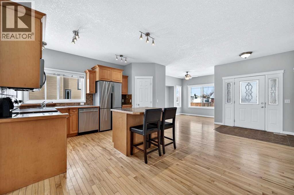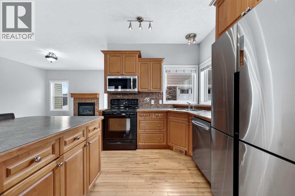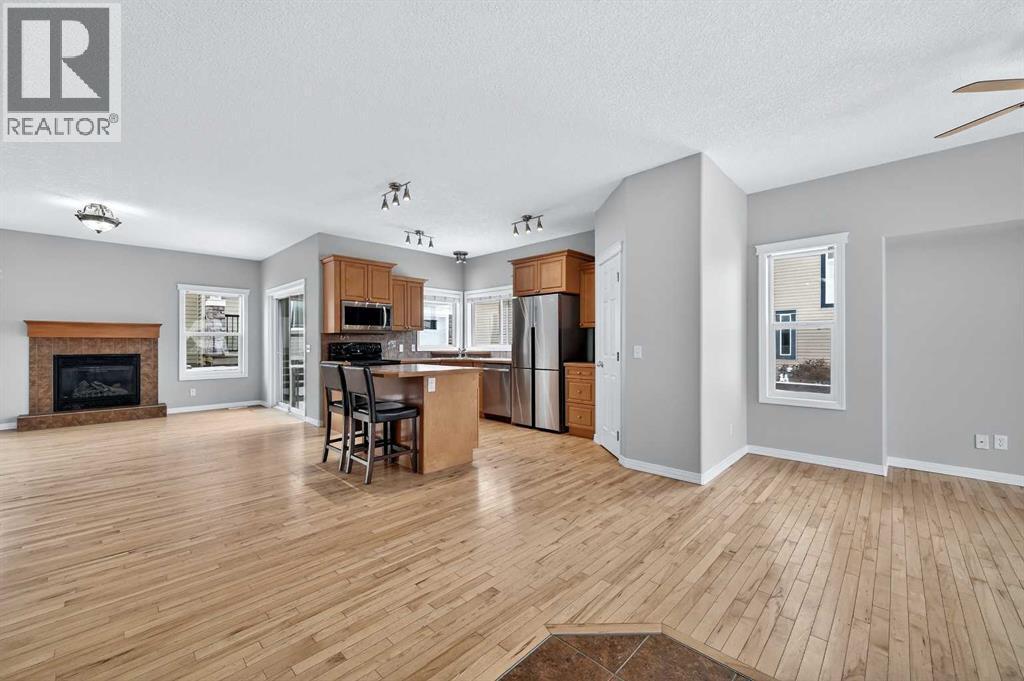 Welcome to 107 Strathmore Lakes Common – a rare and versatile property offering two homes on one lot in a highly desirable lake community with beautiful walking paths just steps away. The front home provides approximately 1,489 sq ft of main floor comfortable living space with an open-concept design, featuring a kitchen with island and pantry, and a bright living room anchored by a cozy gas fireplace. Enjoy a nicely sized primary bedroom complete with a five-piece ensuite featuring a Jacuzzi tub, separate shower, and dual sinks. A second bedroom and full main bathroom add flexibility, while the main-floor laundry with access to the double attached garage makes daily living easy and practical. Sliding doors lead to a ground-level deck that connects seamlessly to the charming front porch of the legal detached suite, creating excellent indoor-outdoor flow. The partially finished basement includes an additional bedroom, full bathroom, second laundry hookups, and a flexible space ideal for a home office or media room, with plenty of remaining space to customize to your needs. The second home offers outstanding flexibility for extended family or rental income. Its main floor includes a bedroom, kitchen, living room with its own gas fireplace, full bathroom, and laundry. The basement adds a media or office area, another bedroom, and a full bath, along with a single attached heated garage. This well-maintained property features vinyl siding with stone accents, asphalt shingle roofing, forced-air heating, and a brand-new hot water tank (2026). Two new windows were recently installed in the primary bedroom and ensuite (2026). Flooring throughout includes hardwood, ceramic tile, carpet, and linoleum. Parking is exceptional with a double attached garage, a single attached heated garage, and an extra-long driveway providing ample off-street parking. Enjoy a private yard, deck, and welcoming front porch, all within close proximity to schools, parks, playgrounds, shopping, street lighting, and scenic lake pathways. This is a truly unique opportunity offering space, flexibility, and income potential in a sought-after community. (id:6769)