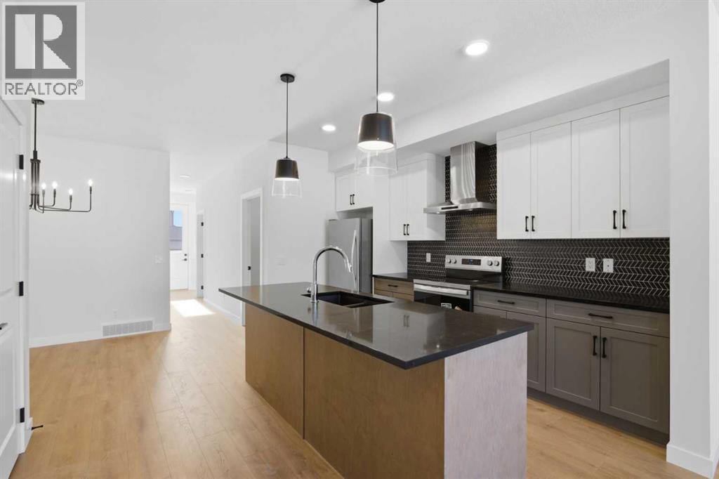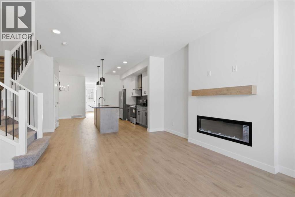 1863 SQ.FT. | 4 BEDS | 3.5 BATHS | MAIN FLOOR BED & BATH | SPICE KITCHEN | REAR DECK | HARDIE BOARD SIDING | SIDE ENTRANCE + 9" BASEMENT CEILING | BONUS ROOM | SOUTH FACING BACKYARD | FRONT LANDSCAPING INCLUDED | Built by Crystal Creek Homes, this brand new home delivers an open layout and upgraded features hard to match at this price point in Belvedere. With 4 bedrooms and 3.5 baths, including a main-floor bedroom and full bath, it offers flexibility for guests, extended family or a private office. The open concept main level is bright and welcoming, anchored by a great room with fireplace and a modern kitchen complemented by a spice kitchen that keeps prep separate from entertaining. Upstairs, a central bonus room creates separation between the bedrooms, adding privacy for families. Durable Hardie board siding enhances curb appeal, while the separate side entrance with 9’ foundation provides excellent future potential for a legal basement suite, subject to City approval and permitting. A finished 10’×10’ deck and south facing backyard extends your living space outdoors, and the quiet street location places you steps from the future school site and soccer field, with quick access to Costco, Walmart, Cineplex, restaurants, shopping, Chestermere and Stoney Trail. Backed by a full builder warranty, this is a smart opportunity in one of Calgary’s growing southeast communities. Book your showing today. (id:6769)