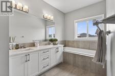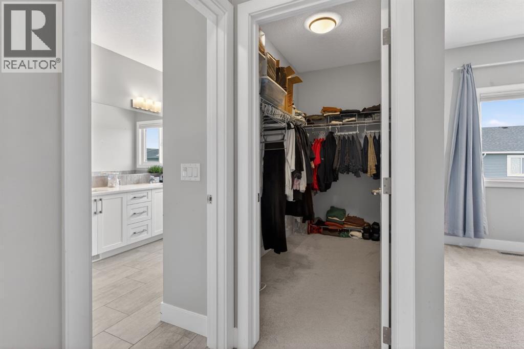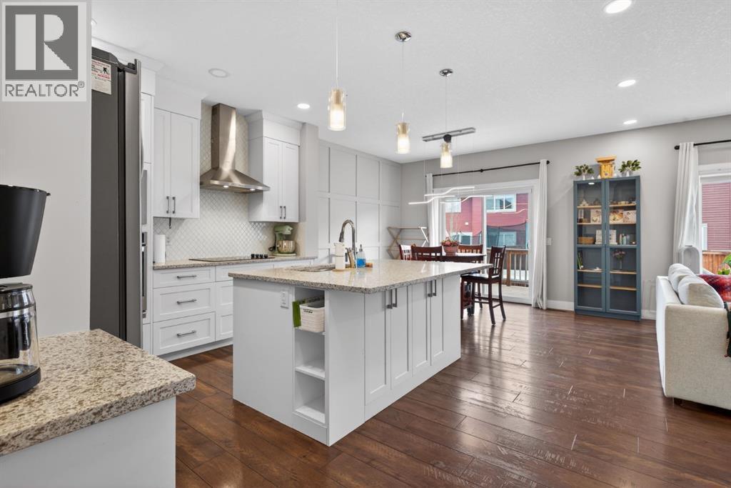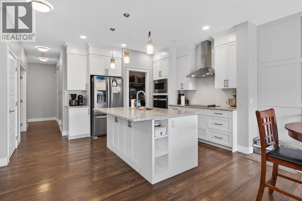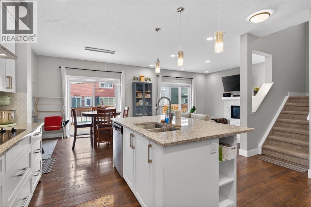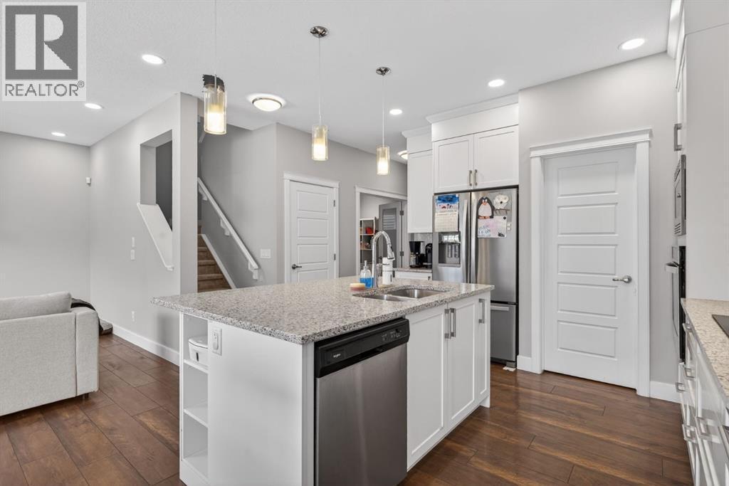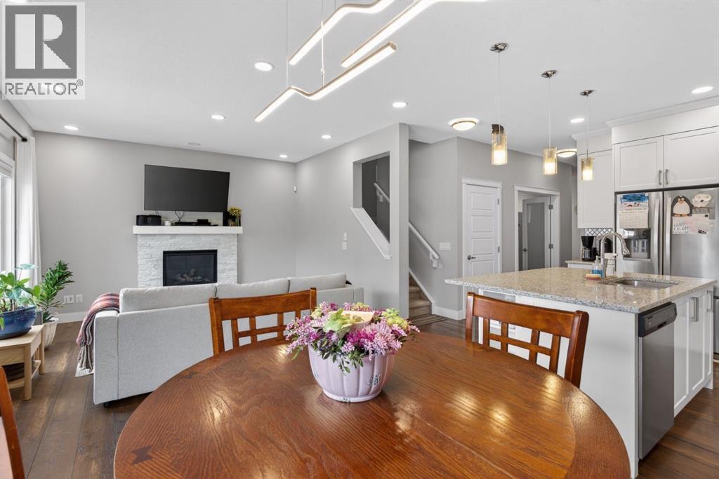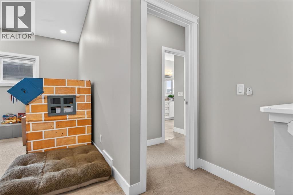 Welcome to this beautifully upgraded home offering 2,331 sq. ft. of refined living space, complete with a double-car garage, four upper-level bedrooms, a versatile main-floor office, and a fully landscaped, fenced yard. Situated on a quiet no-through street, the property showcases a distinctive exterior and high-end interior finishes throughout, including air conditioning.The home features white shaker-style kitchen cabinetry, quartz countertops, and a large central island. Premium built-in stainless steel appliances and a walk-in pantry complete this gourmet kitchen. The open-concept family room is ideal for entertaining family and friends, while the dining area opens onto a raised deck overlooking a beautifully finished yard with a striking fence.The bright living room offers an oversized window and a cozy, child-safe ledgestone fireplace with cool-to-the-touch glass. Durable hand-scraped laminate flooring runs throughout the main floor — perfect for busy households. A standout feature is the enclosed main-floor office with etched-glass French doors, providing a private workspace. A tiled mudroom off the garage adds practical storage, including a full closet for organized family living.Upstairs, four spacious bedrooms with 9-foot ceilings are complemented by a central bonus room with vaulted ceilings — an ideal secondary living space. The 5-piece main bathroom includes dual sinks and a tub/shower combination.The secluded primary bedroom features a designer feature wall, walk-in closet, and a spa-inspired ensuite with a 6-foot soaker tub, separate shower, and dual quartz vanities.The open basement offers excellent potential, providing ample room for storage, a home gym, or a play area for the kids. (id:6769)
