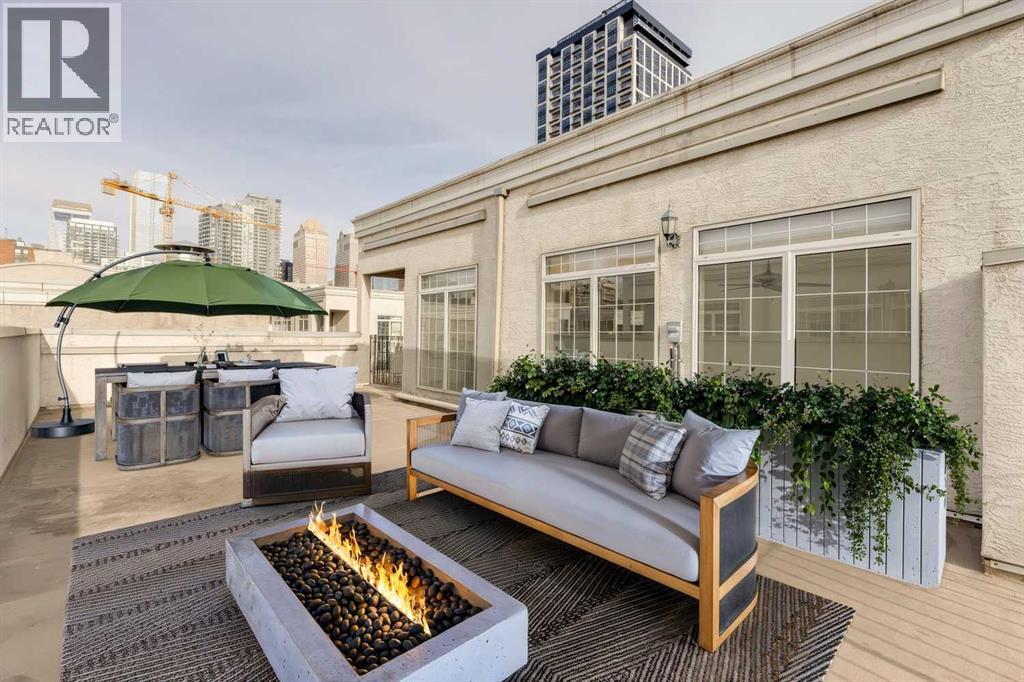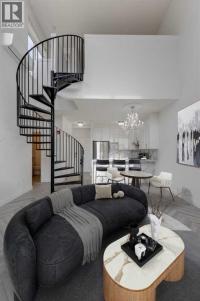 Welcome home to this luxurious two-storey penthouse — a rare gem offering over 470 sq. ft. of private rooftop living space designed to impress!Perfectly nestled in the heart of Calgary, The Conservatory stands as one of the city’s most coveted addresses — just one block from the vibrant shops and dining on 17th Avenue SW, and a short walk to the downtown core. This gated building welcomes you with Italian-inspired gates and a serene courtyard, setting the tone for the elegance within.No expense was spared on your fully renovated penthouse, step inside to discover custom herringbone flooring, oversized windows, and soaring ceilings that fill every corner with natural light. The living room is warmed by a modern fireplace and opens through French doors to one of two private balconies. The chef-inspired kitchen is a showpiece — featuring waterfall marble inspired quartz countertops, bespoke white cabinetry, and brushed gold hardware, all anchored by a statement chandelier above the dining area.Upstairs, a spiral staircase leads to a loft overlooking the main living area — the perfect space for a home office or reading retreat — and your private rooftop patio offering breathtaking north and south skyline views.Both bedrooms are generously sized, with the primary suite boasting a walk-in closet and a fully renovated ensuite bathroom for your personal retreat.Additional conveniences include in-suite laundry, elevator access, a storage locker, and two titled parking stalls with visitor parking for guests.Experience the ultimate blend of sophistication, comfort, and downtown convenience — this penthouse retreat at The Conservatory is one you won’t want to miss. *Please note some photos are virtually staged * (id:6769)