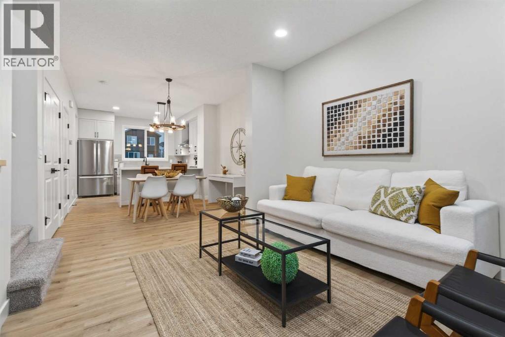 Welcome to Rangeview — Calgary’s first Garden-to-Table community where shared gardens, greenhouses and thoughtfully designed green spaces create a lifestyle unlike anywhere else — and here’s your opportunity to own a home that’s truly better than new. This stunning 3-bedroom, 2.5-bathroom home offers 1,666 sq ft of bright, modern living space on a quiet, family-friendly street and features a floorplan that is no longer being built, giving you a rare chance to own a layout that can’t be replicated in current builder inventory. Why wait 8–12 months for construction — and then pay extra for fencing, landscaping, appliances and window coverings — when you can move into a beautifully finished, barely lived-in home today? The sun-filled main floor showcases an open-concept great room, inviting dining area and sleek kitchen designed for entertaining, while upstairs offers three generous bedrooms including a private primary retreat with ensuite and ample counter space, plus convenient upper-floor laundry. Step up to the third-storey balcony to enjoy peek-a-boo mountain views — an elevated bonus that makes this home stand out even more. With a fully fenced yard already complete, builder warranties still in place, basement space ready for your future vision, and a location away from heavy construction traffic and noise, this home delivers immediate enjoyment without the delays, mud or surprise upgrade costs of new construction. Move in now, skip the timeline, and secure a completed, warranty-protected home in one of Calgary’s most exciting growing communities. (id:6769)