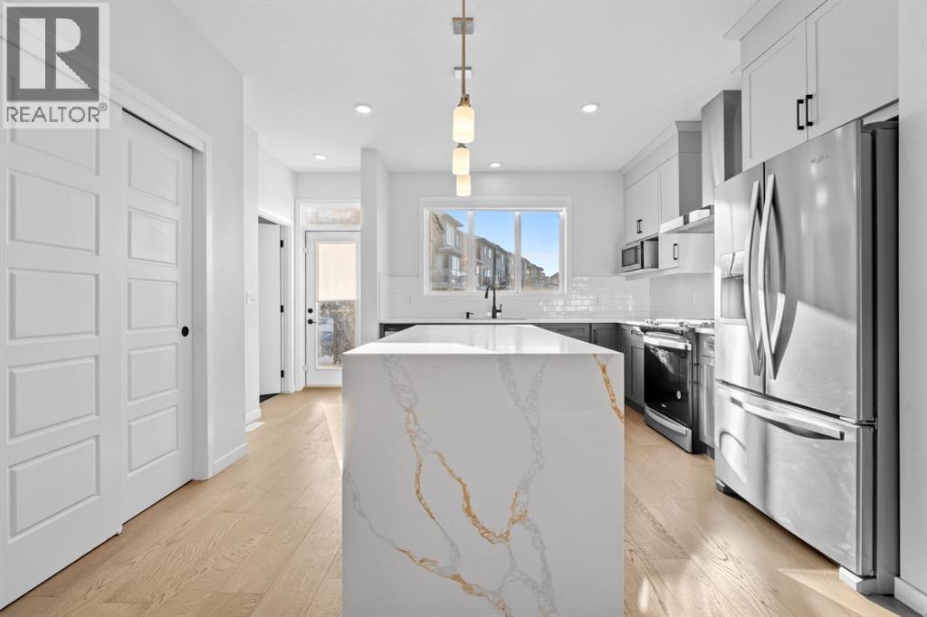 Welcome to this stunning home located in the highly desirable community of Glacier Ridge. This beautiful, light-filled property is thoughtfully designed for modern living and offers a total of 7 bedrooms and 4 full bathrooms across more than 2,600 SQFT of developed living space.The main floor showcases 9-ft ceilings, oversized windows that flood the home with natural light, and luxury vinyl plank flooring throughout. A convenient main-floor bedroom and full 3-piece bathroom provide excellent flexibility for guests or multi-generational living. The open-concept living area flows seamlessly into the chef-inspired kitchen, featuring quartz countertops, two-tone premium cabinetry, stainless steel appliances, and a large center island—perfect for everyday living and entertaining.Upstairs, you’ll find a spacious bonus room with a door that can easily function as an additional bedroom or home office, along with convenient upper-floor laundry and three more generously sized bedrooms. The primary suite offers a relaxing retreat, complete with a walk-in closet, double vanity, and a 4-piece ensuite.The builder-completed, fully legalized 2-bedroom basement suite is an exceptional mortgage helper. It features oversized windows, a private separate entrance, its own kitchen with stainless steel appliances, separate laundry, and a comfortable living space—ideal for extended family, guests, or rental income.Conveniently located just minutes from T&T Supermarket, Costco, Walmart, Co-op, Banks, Doctor Clinics, Gyms, Daycares, and a variety of restaurants, with quick easy access to Stoney Trail.A rare opportunity for families, multi-generational households, or savvy investors seeking comfort, convenience, and exceptional value. Call today to book your private showing! (id:6769)