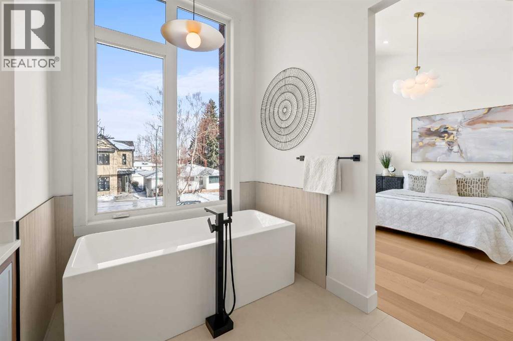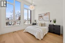Don’t miss your opportunity to own a brand new luxury semi-detached infill in Banff Trail, NW Calgary featuring a 2-bedroom legal basement suite with private entrance. Built by Nova Custom Homes, this modern inner-city home offers over 2,850 sq ft of developed living space, 5 bedrooms, 3.5 bathrooms, an upper bonus room/home office, a butler’s pantry, and high-end custom finishes throughout. This property is ideal for buyers searching for a new construction home with income suite in Calgary, a mortgage helper property, or multi-generational living in a prime location.Located in Banff Trail near the University of Calgary, this home provides exceptional access to top amenities. Walk to West Confederation Park, Confederation Golf Course, William Aberhart High School, playgrounds, pathways, and transit. Just minutes to the University of Calgary, Foothills Medical Centre, Alberta Children’s Hospital, McMahon Stadium, and Foothills Athletic Park. Only 8 km to Downtown Calgary, with quick access to Crowchild Trail and 16th Avenue NW (Trans-Canada Highway), making commuting simple and convenient.The open-concept main floor features a chef’s kitchen with quartz countertops, ceiling-height custom cabinetry, large island with seating, designer lighting, tile backsplash, and walkthrough butler’s pantry. The spacious living room includes a gas fireplace with full-height tile surround and built-in millwork, while dual sliding glass doors connect to the rear deck and backyard for seamless indoor-outdoor living. A bright dining area with oversized windows completes the main level.Upstairs, the primary bedroom retreat showcases vaulted ceilings, large windows, a walk-in closet, and a spa-inspired ensuite, double sinks, quartz counters, freestanding soaker tub, and glass walk-in shower. Two additional bedrooms and a flexible bonus room or home office space provide functional family living. A modern 4-piece bathroom completes the upper floor.The self-contained legal basement s uite in NW Calgary includes a full kitchen with quartz countertops, custom cabinets, island with seating, separate laundry, two bedrooms, and a 4-piece bathroom. Perfect as a rental suite, investment property, secondary suite, or in-law suite.This new infill home in Banff Trail combines luxury design, rental income potential, and unbeatable inner-city convenience near parks, schools, hospitals, and major roadways! (id:6769)