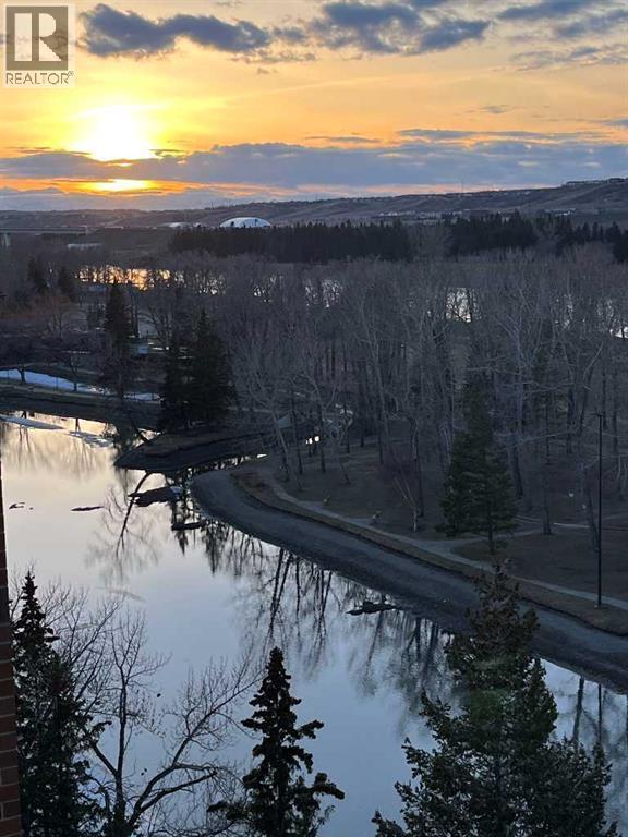 Perched on the 8th floor, this exceptional condo offers **one of the largest floor plans in the building** and showcases truly breathtaking views overlooking Bowness Park and the picturesque Bow River. From vibrant seasonal landscapes to stunning natural light displays and dramatic sunsets, the expansive private balcony provides a front-row seat to it all.Step inside to a generous foyer that welcomes you into a thoughtfully designed open-concept layout. The spacious hallway leads to a bright and airy kitchen featuring expansive countertops, ample cabinetry, and upgraded stainless steel appliances — perfect for everyday living and entertaining alike. The dining area flows seamlessly into the inviting living room, which opens directly onto the oversized private balcony, blending indoor and outdoor living naturally.Tucked just around the corner for added privacy, the large primary bedroom and well-sized second bedroom both offer impressive city views. A 4-piece bathroom with a newer receptacle adds modern functionality, while a substantial in-suite storage room completes this well-appointed home.This well-managed **18+ adult living** complex offers an array of desirable amenities, including a fitness centre, sauna, social room, and rooftop terraces. Enjoy the convenience of inclusive utilities, free common laundry pet-friendly living (with board approval and fee), and immediate access to the scenic pathways, green spaces, and recreational opportunities of Bowness Park and the Bow River.An incredible opportunity to enjoy spacious, low-maintenance living with unmatched views in a highly sought-after location. (id:6769)