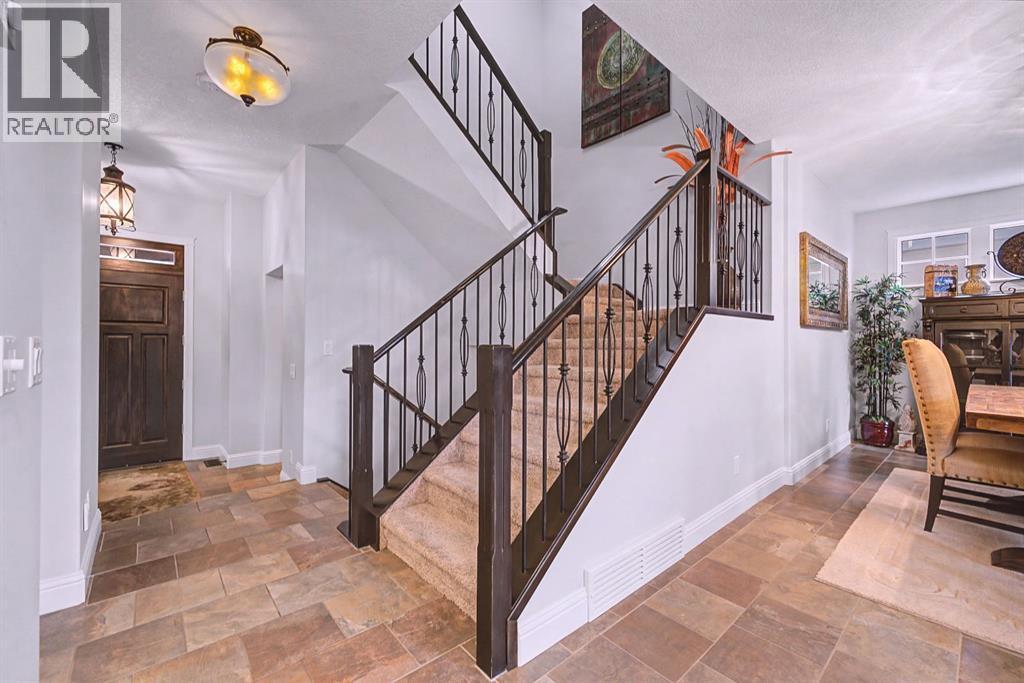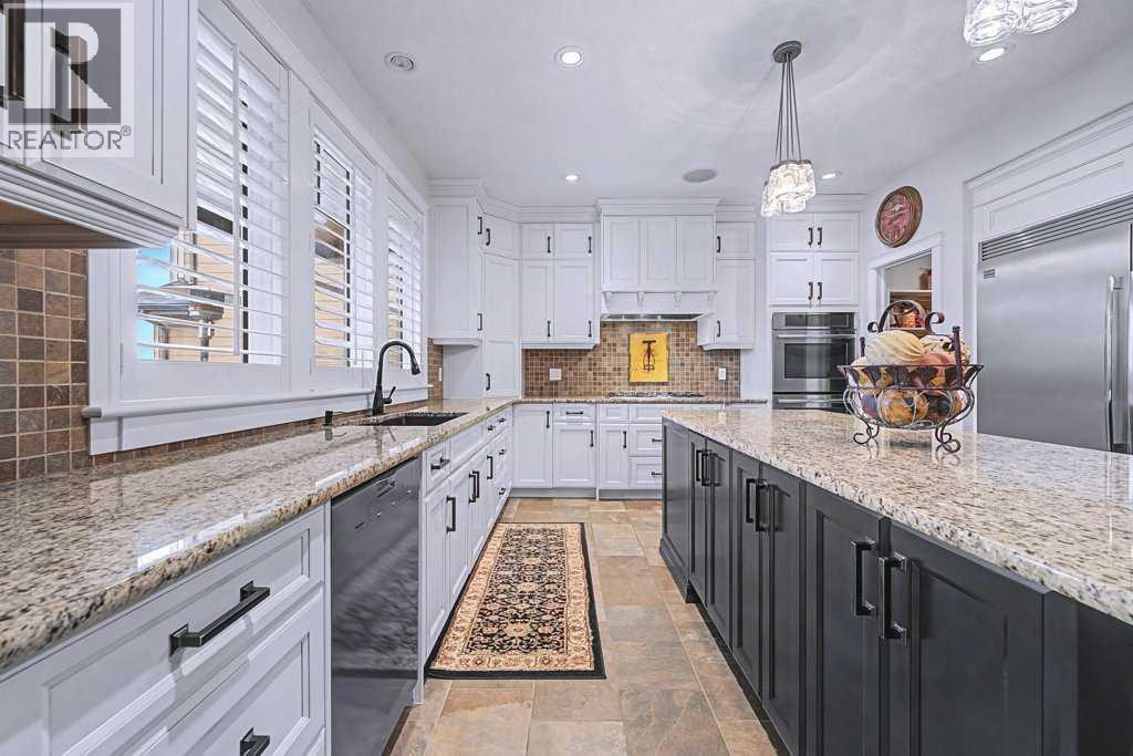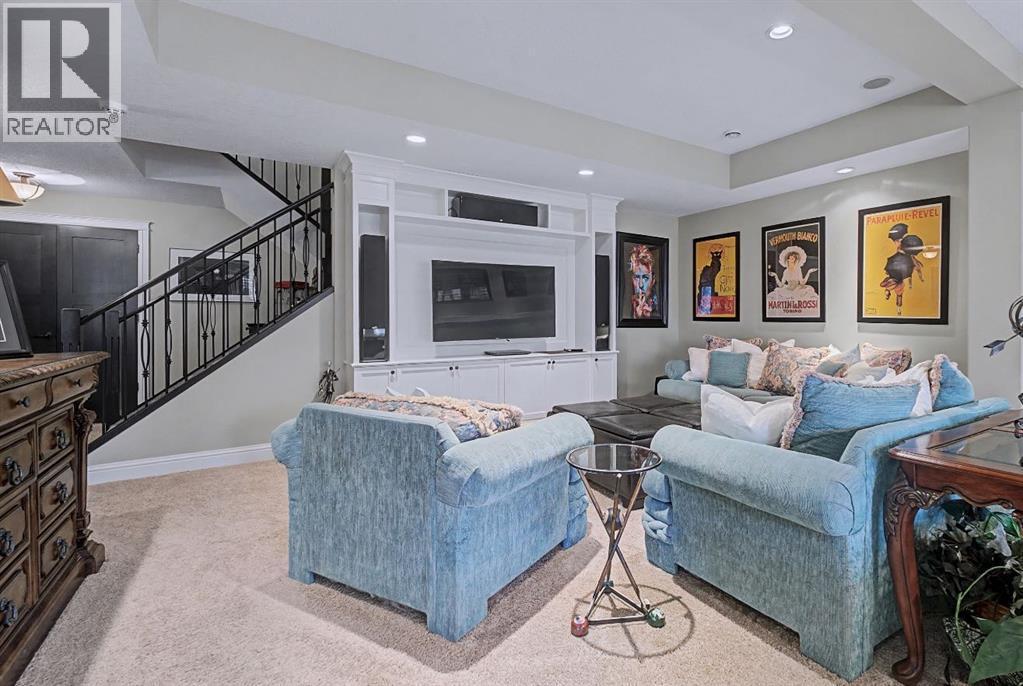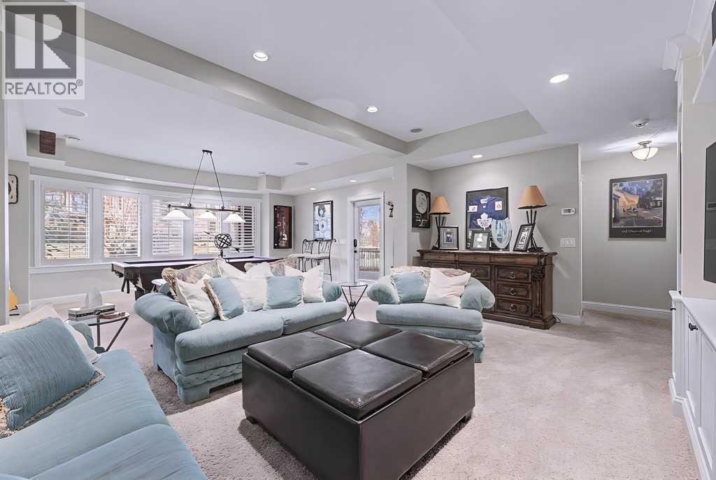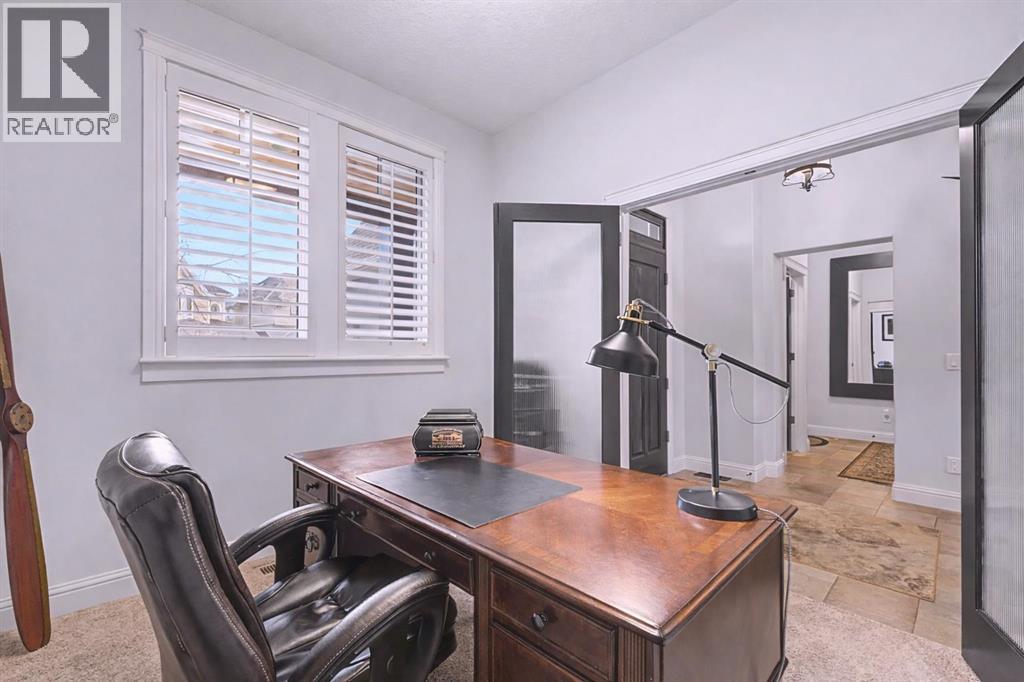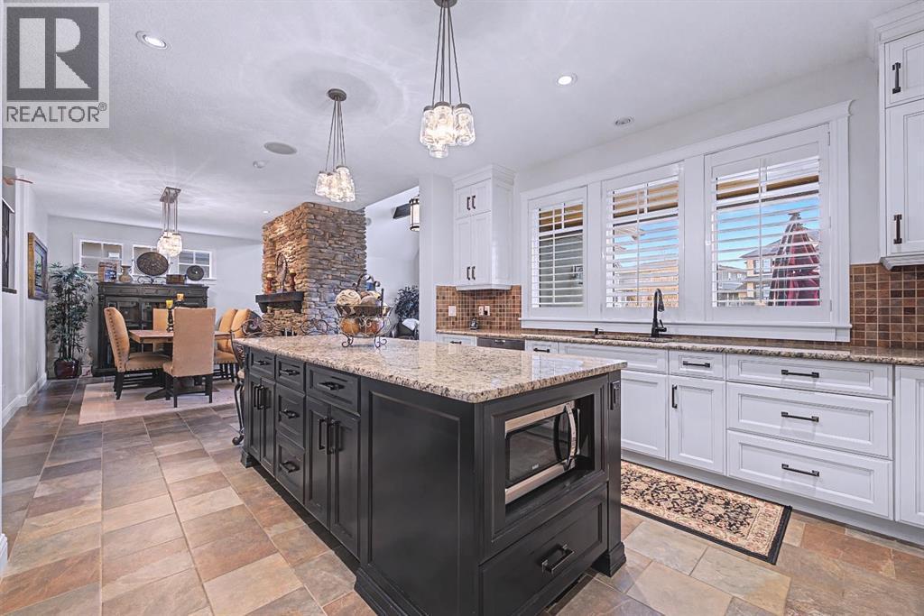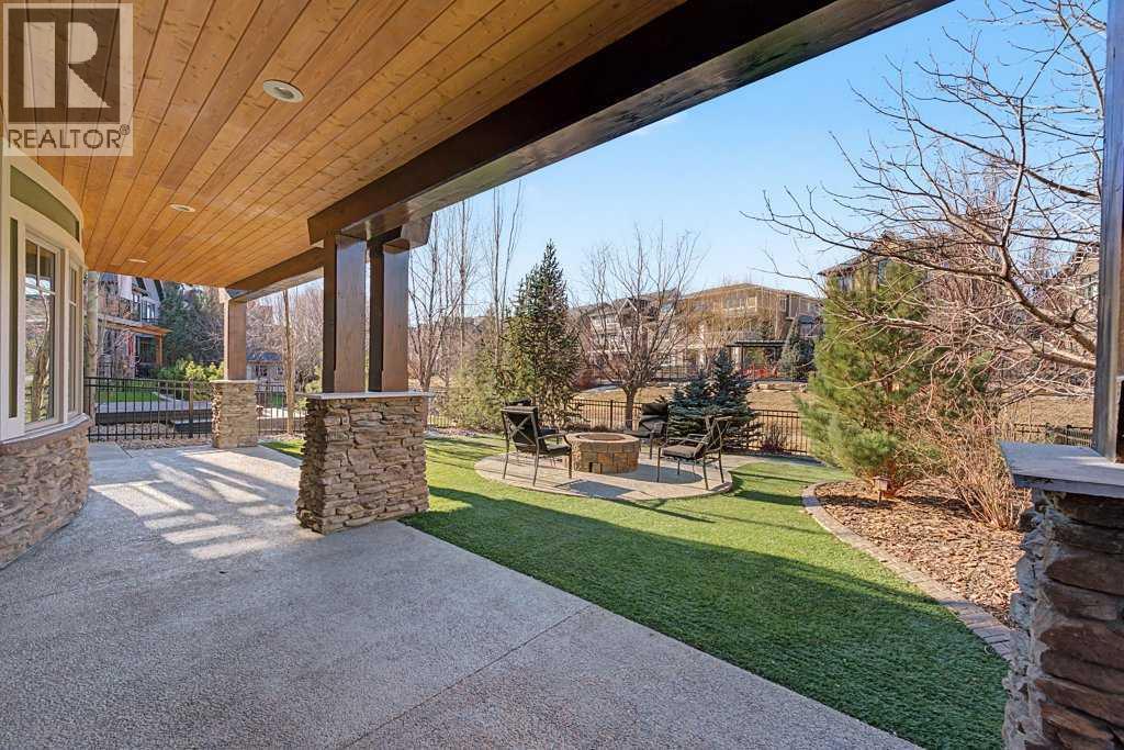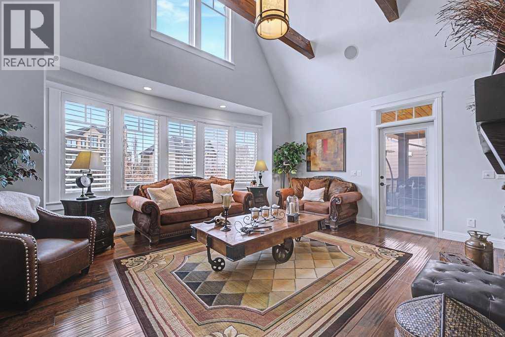 Get ready to fall in love.Welcome to 384 Coopers Terrace, a show-stopping walkout estate home in the heart of the prestigious Coopers Crossing. Perfectly positioned at the end of a quiet cul-de-sac and backing onto serene green space and walking paths, this property is the definition of elegance, craftsmanship, and timeless design.From the moment you arrive, the curb appeal impresses—with a sophisticated stone and stucco exterior, manicured landscaping, exposed aggregate concrete, and a massive triple tandem garage that checks every box.Inside, the wow-factor continues. This home has been immaculately maintained and offers refined touches throughout—from soaring vaulted ceilings to custom built-ins and premium finishes. The grand foyer welcomes you with space and warmth. To one side, a private office with custom cabinetry. To the other, a spacious mudroom with a walk-in closet designed for busy lives.The heart of the home is the gourmet kitchen—a dream for both chefs and entertainers. Outfitted with built-in stainless steel appliances including a Frigidaire Professional dual-door fridge, JENN-AIR gas cooktop & oven, and MIELE dishwasher, this kitchen blends functionality and beauty. A massive island, granite countertops, and warm wood shaker cabinets elevate the space, while the massive walk-in pantry ensures everything has a place.The open-concept main level features sky-high vaulted ceilings, with an 18 ft dual-sided stone fireplace that warms both the dining area and the inviting living room, drenched in natural light from oversized windows. The entire main level has been freshly painted in a warm white, enhancing the home’s airy and inviting feel.. Upstairs, the primary retreat is your own private escape—featuring a spa-like ensuite and large walk-in closet. Three more generously sized bedrooms, each with walk-in closets, and a versatile bonus room above the garage (think playroom, gym, or yoga sanctuary) complete the upper level.Downstairs, the fully fin ished walkout basement expands your living space with an additional bedroom, 4-piece bathroom with sauna, a huge rec room, and a cozy family room perfect for movie nights or game days. Walk out to your professionally landscaped, low-maintenance backyard, finished with high-end astroturf and exposed aggregate paths for year-round beauty without the hassle.Just minutes from top-rated schools, shops, parks, and a quick commute to Calgary or the mountains—this home is the total package.Homes like this don’t come up often. Book your private tour today and see why 384 Coopers Terrace is the one you've been waiting for. (id:6769)