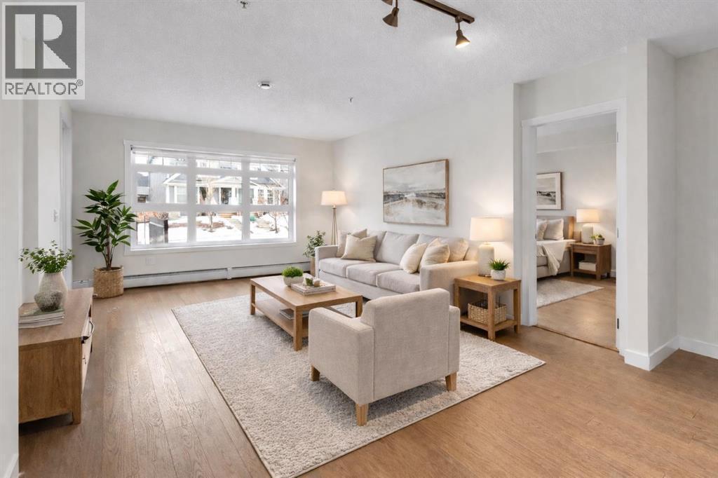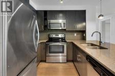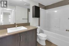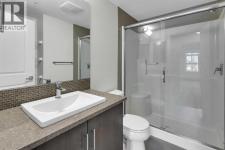Welcome to this bright, freshly painted and well-maintained 2 bedroom, 2 bathroom condo in the sought-after Canoe complex in Auburn Bay. Offering 853 sq ft of functional living space, this ground-floor unit combines comfort, convenience, and low-maintenance living.The open-concept layout features a modern kitchen with dark cabinetry, stainless steel appliances, tile backsplash, and granite countertops, along with a spacious peninsula with seating — perfect for everyday living or entertaining. The living area is filled with natural light and flows seamlessly to your private outdoor space. Durable laminate flooring runs throughout the main living areas, creating a clean and cohesive look, while both bathrooms feature tile flooring for added durability and style. The primary bedroom includes a walk-through closet and private 4-piece ensuite. The second bedroom is thoughtfully positioned on the opposite side of the unit, ideal for guests, a roommate, or a home office. A second full bathroom and in-suite laundry complete the interior. This unit also includes one titled underground parking stall and assigned storage for added convenience. Located just steps from shopping, restaurants, transit, and with full access to Auburn Bay Lake amenities, this is an excellent opportunity for first-time buyers, investors, or those looking to downsize. (id:6769)