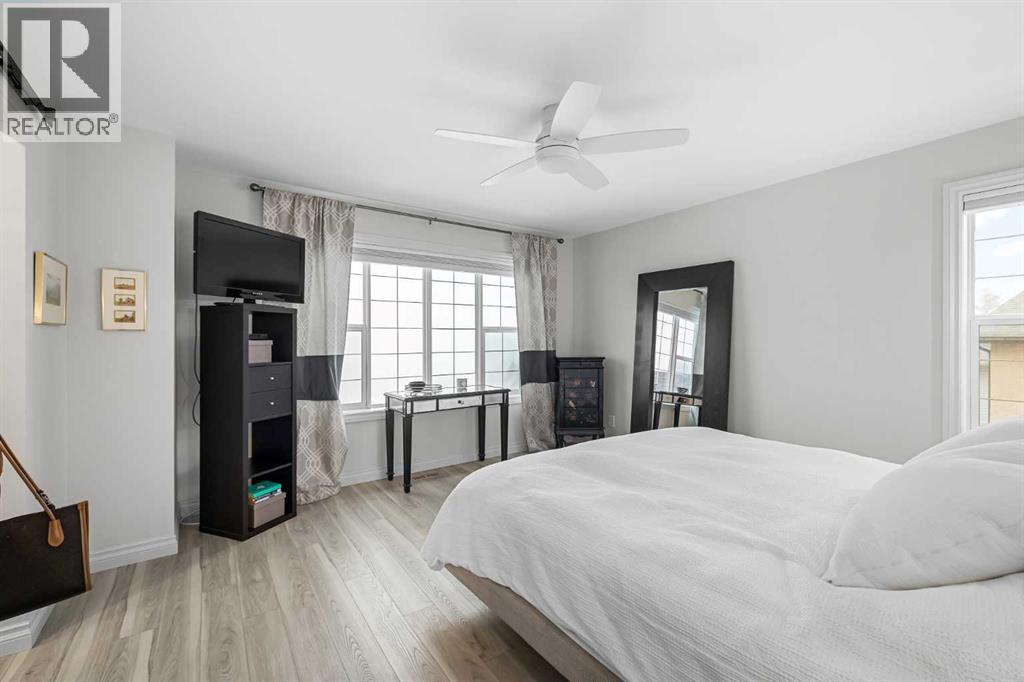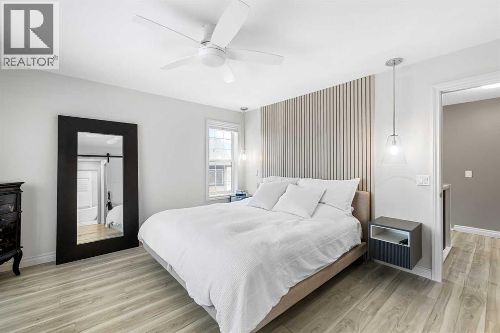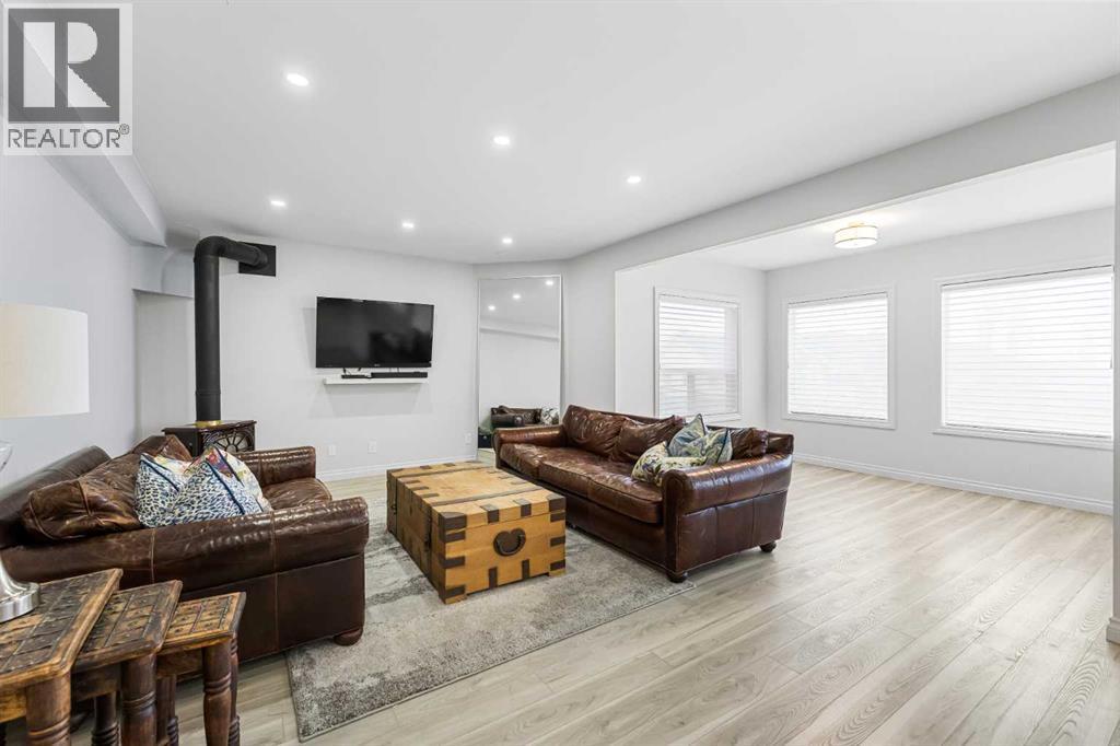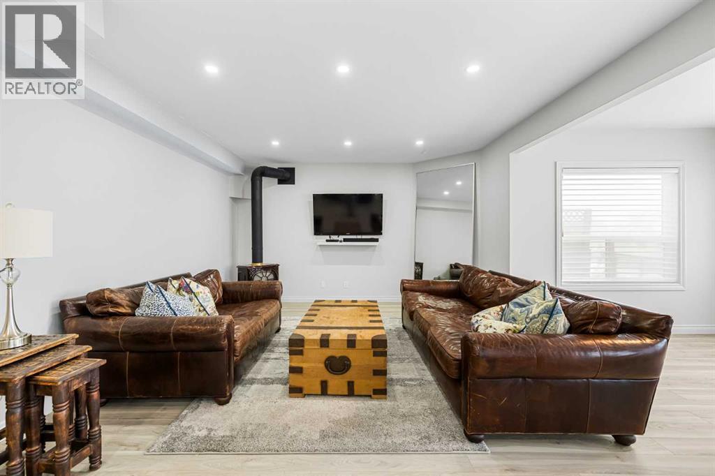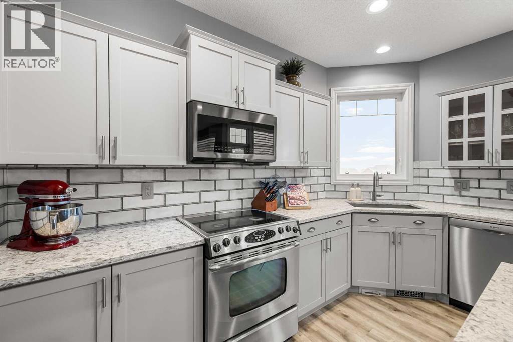 Welcome to this exceptional family home in sought-after Hansen Ranch, perfectly positioned backing onto a beautiful ravine green space with a sun-drenched south-facing backyard. This fully finished two-storey walkout boasting over 3,100 sqft of developed living space offers the perfect blend of luxury, functionality & an unbeatable natural setting in NW Calgary. Extensively renovated in 2021, this home showcases high-end finishes & thoughtful design throughout. Luxury vinyl plank flooring flows seamlessly across every level, complemented by quartz countertops throughout. Large windows flood the space with natural light & beautifully frame ravine views, creating a bright, inviting atmosphere. The main floor is elegant yet practical. A stunning stone gas fireplace anchors the living room, adding warmth & architectural presence. The chef-inspired kitchen features stainless steel appliances, a large center island perfect for gathering, a spacious dining nook overlooking the green space & a custom walkthrough pantry offering elevated storage & everyday convenience. A dedicated main floor office makes working from home effortless, while the main floor laundry/mudroom enhances the functional layout. Hunter Douglas blinds provide style & privacy throughout. Up the wide staircase with striking railing you’ll find three generous bedrooms, including a dreamy primary retreat. The spa-inspired ensuite offers dual sinks, a stand-alone soaker tub, gorgeous rain shower & a custom walk-in closet complete with its own stacked washer & dryer- a luxurious yet practical touch. Undercabinet lighting in the upstairs bathrooms adds a soft glow. Two additional great-sized bedrooms with custom closets & a 4 pc bathroom complete the upper level. The fully finished walkout basement expands your living space with a large recreation room with a beautiful corner gas fireplace that provides amazing heat to the space, fourth bedroom & full guest bathroom-ideal for visitors, teens or extended family -plus direct access to the peaceful landscaped backyard & ravine beyond. Step outside to your massive composite deck oasis with glass railing, custom stair lighting & a huge storage shed tucked neatly underneath. With no rear neighbors & direct access to green space, this south-facing yard offers privacy, sunshine & stunning natural views year-round. Additional highlights include a double attached garage, professionally landscaped backyard with a lower patio, underground irrigation, air conditioning, hot water on demand & a newer roof (high quality DKO Dynasty Shingle) for peace of mind. Close access to Stoney Trail with convenient proximity to grocery stores, amenities, restaurants, shopping & schools. Elegant & move-in ready, this is a rare opportunity to own a beautifully renovated walkout in one of northwest Calgary’s most established family communities. Lovingly cared for with pride of ownership shown throughout. (id:6769)