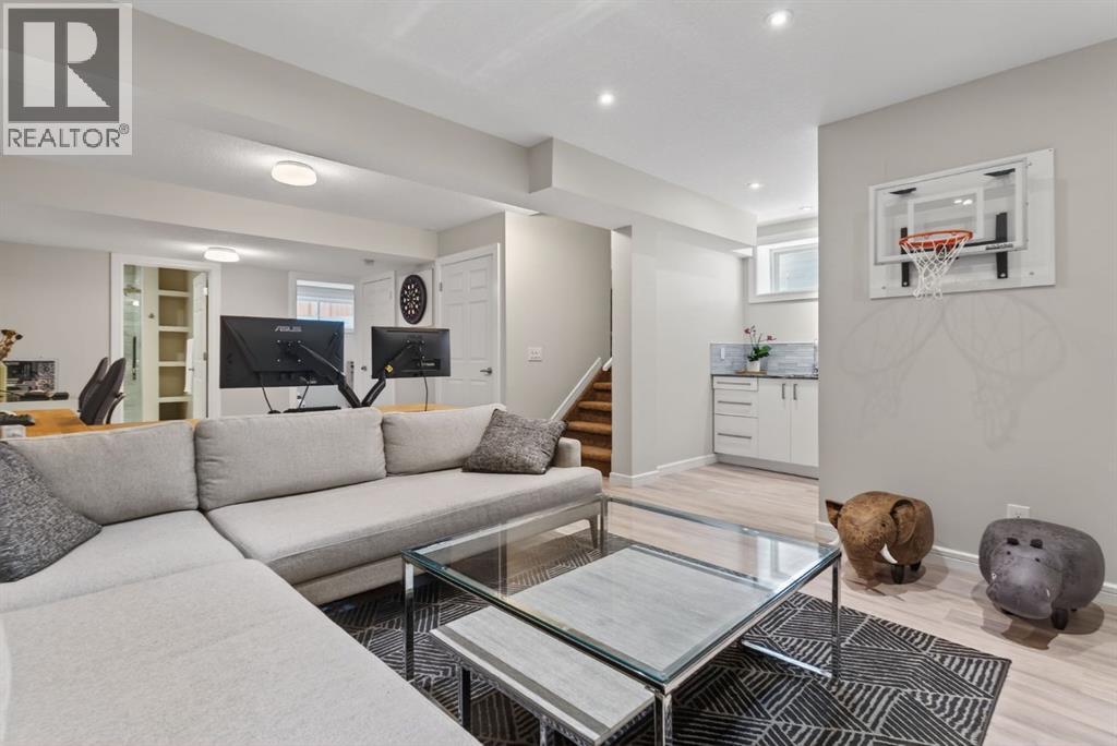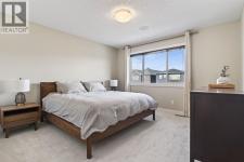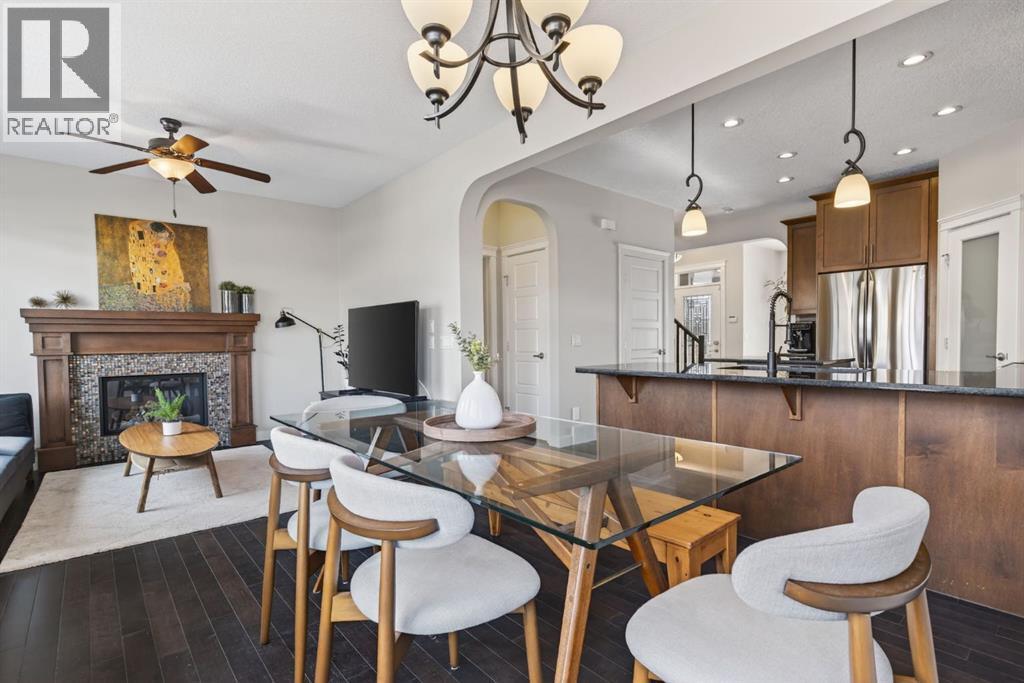 Welcome to this beautifully maintained former showhome in the heart of Evanston — offering timeless style, thoughtful upgrades, and over 2,300 sq ft of fully developed living space designed for both connection and comfort. Built in 2011, this 2-storey home stands out with its subtle midcentury modern influence, warm maple cabinetry, rounded architectural arches, and a layout that feels open yet intentional. The main floor seamlessly blends the kitchen, dining, and living spaces — creating an ideal environment for everyday living and effortless entertaining. The kitchen features granite countertops, stainless steel appliances, a central island, and a walk-in pantry, all anchored by rich cabinetry and classic finishes that feel elevated without feeling trendy. The adjacent living room is warm and inviting with a gas fireplace, while large windows fill the space with natural light. Upstairs, you’ll find three spacious bedrooms including a generous primary retreat complete with a 5-piece ensuite featuring a double vanity, soaking tub, separate shower, and walk-in closet. A full 4-piece bathroom and convenient upper laundry room complete this level — adding everyday functionality for busy households. The fully finished basement expands your living space with a large recreation and entertainment area, an additional bedroom, full bathroom, and a built-in wet bar — creating the ultimate movie night, game day, or hosting space. As a former showhome, this property is exceptionally well-appointed with air conditioning, built-in speakers throughout the top two floors, granite countertops, maple cabinetry, and carefully selected finishings throughout. Outside, enjoy a private fenced backyard and a detached oversized double garage with ample room for storage and larger vehicles — a rare and valuable feature. Located in the family-friendly community of Evanston, close to parks, schools, pathways, shopping, and major routes for easy commuting, this home offers the perfect blend of design, functionality, and lifestyle. (id:6769)