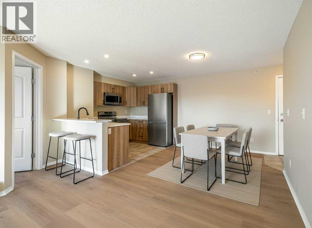 TOP FLOOR UNIT • UPDATED 2 BEDROOM + DEN • UNDERGROUND HEATED PARKINGWelcome to this immaculate top-floor unit in the heart of Panorama Hills—offering 840 SQFT of beautifully updated living space, one of the most functional and private layouts in the complex, and exceptional value with ALL utilities included in the condo fees (heat, water & electricity).This bright and stylish 2-bedroom plus den, 2-bathroom home has been thoughtfully upgraded with luxury vinyl plank flooring throughout, new lighting, fresh paint, quartz countertops, and brand-new stainless steel appliances. The modern finishes and open-concept design create a move-in-ready space that truly stands out—perfect for both everyday living and entertaining.The kitchen showcases sleek quartz countertops, contemporary cabinetry, a raised eating bar, and brand-new stainless steel appliances, flowing seamlessly into the spacious dining and living areas. Large windows fill the home with natural light, enhancing the airy feel.Step outside to your sunny west-facing balcony—ideal for relaxing evenings, barbecues, and enjoying beautiful sunsets from your elevated top-floor vantage point.Designed for maximum privacy, the primary bedroom retreat features a walk-through closet and a private 4-piece ensuite. Positioned on the opposite side of the unit, the second bedroom offers excellent separation—perfect for roommates, guests, or a home office. A second full 4-piece bathroom adds flexibility and convenience.The versatile den provides additional space for a formal dining area, dedicated office, reading nook, or TV lounge.Enjoy the convenience of in-suite laundry with an upgraded washer and dryer, titled underground heated parking, an assigned storage locker, and easy elevator access.Located just minutes from Stoney Trail, Deerfoot Trail, and the North Pointe Bus Terminal, commuting is effortless. You’re also within walking distance to schools, parks, grocery stores, restaurants, banks, and everyday ame nities, including Save-On-Foods and Co-op.Residents enjoy access to the Panorama Hills Community Centre, featuring a spray park, playground, basketball courts, tennis courts, a multi-use sport court, paved walking paths, gazebos, and outdoor fitness equipment—offering an exceptional lifestyle in one of NW Calgary’s most desirable communities.Perfect for first-time buyers, investors, or those looking to downsize without compromise, this updated top-floor unit delivers premium upgrades, privacy, functionality, and unbeatable value.Don’t miss your opportunity to call this exceptional condo home! (id:6769)