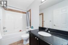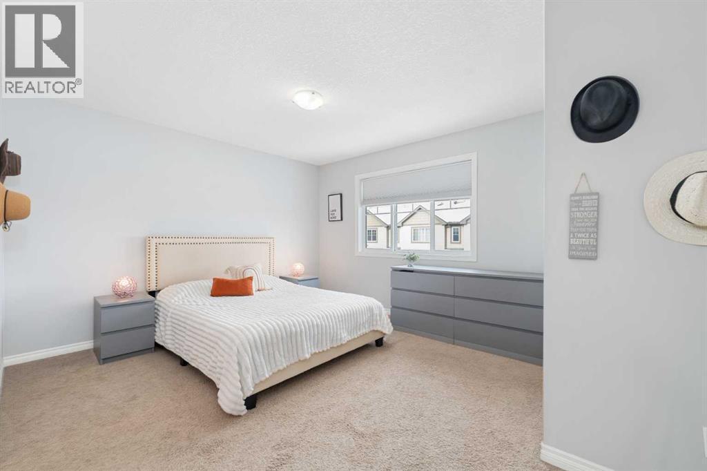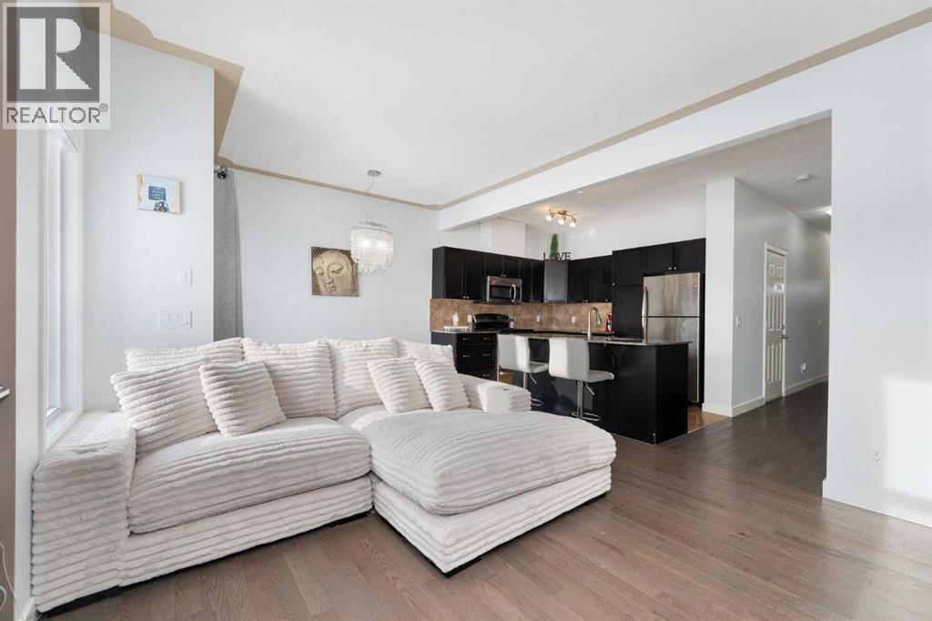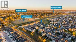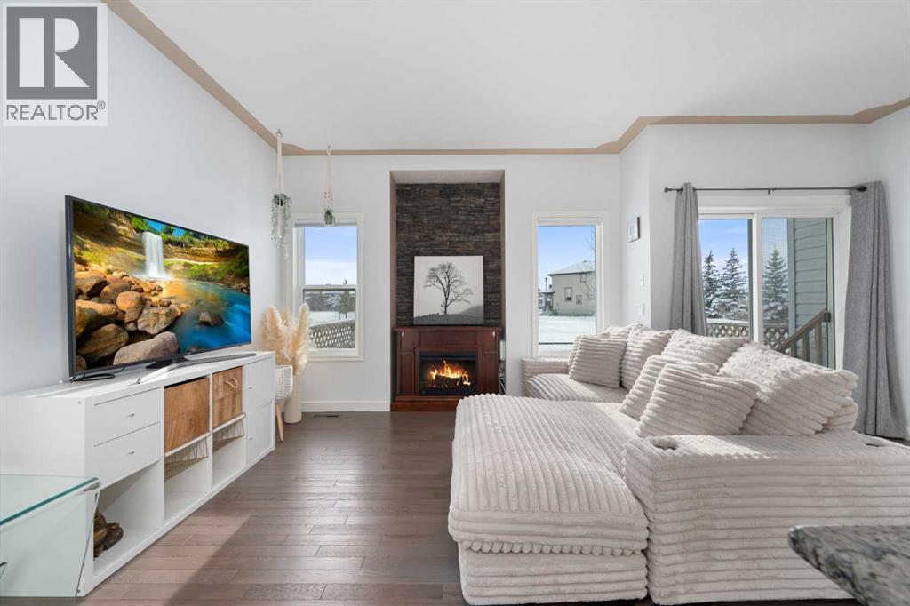 Welcome to this wonderful two-storey townhome in the heart of Luxstone, perfectly positioned backing onto wide-open green space with direct access to walking and bike paths—and just steps from the in-complex playground. This is a home that truly blends comfort, style, and lifestyle. Inside, you’ll immediately notice the rich, deep chocolate-brown hardwood floors that flow throughout the main level, complemented by matching shaker-style cabinetry, stainless steel appliances, granite countertops, and striking stacked-stone accent walls. The main floor is designed for both everyday living and entertaining, with a bright open-concept layout that seamlessly connects the living room, dining area, and kitchen. Step outside through the rear doors to your private patio, where partial privacy fencing on either side frames a nearly unobstructed view of the expansive green space beyond. A convenient half bath completes this level. Upstairs, you’ll find three well-proportioned bedrooms, including an oversized primary retreat featuring a walk-in closet with a window and a private 4-piece ensuite. The two additional bedrooms are thoughtfully located down the hall alongside a full 4-piece bathroom—ideal for families, guests, or a home office setup. The fully finished basement adds even more living space with a comfortable rec room, laundry area, and ample storage—perfect for movie nights, a play area, or a home gym. Whether you’re enjoying your morning coffee, hosting summer BBQs, or simply watching the seasons change, this outdoor setting offers a rare sense of openness and tranquility. The single-car garage is extra deep and has been fully insulated, drywalled, and painted—ideal for both parking and additional storage. Practical upgrades and thoughtful finishes throughout make this home completely move-in ready. Located within walking distance to Nose Creek Park and surrounded by schools, shopping, and everyday amenities, this Luxstone townhome delivers exceptional value, comfor t, and lifestyle. Backing onto green space, offering beautiful interior finishes, and situated in a family-friendly community—this is one you won’t want to miss. (id:6769)