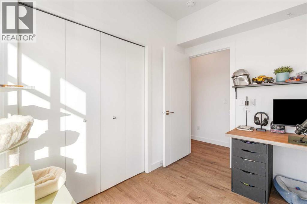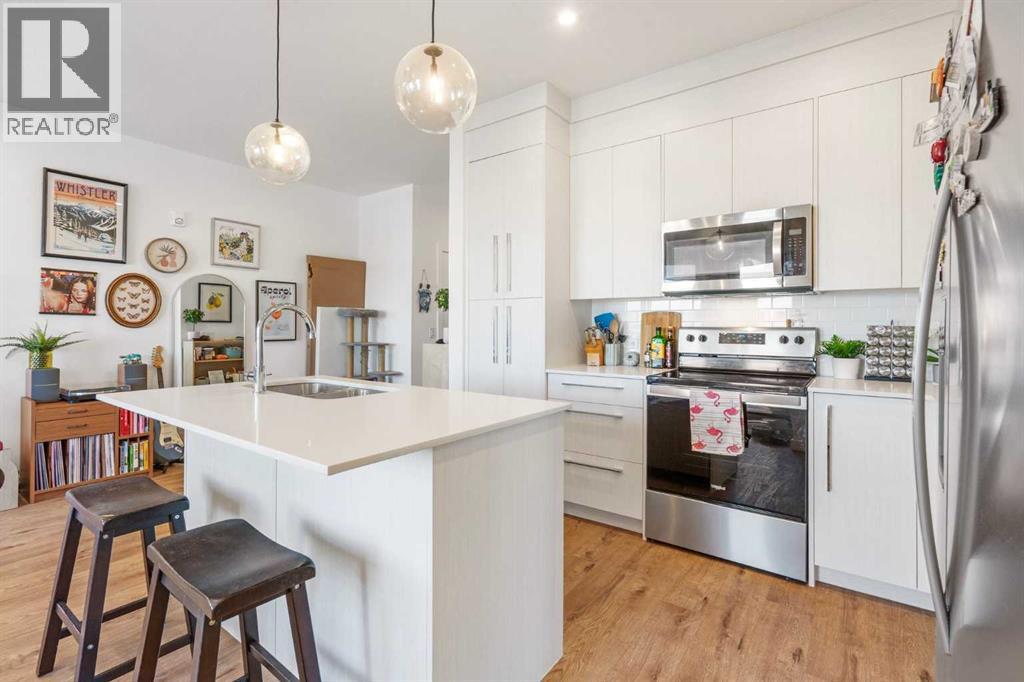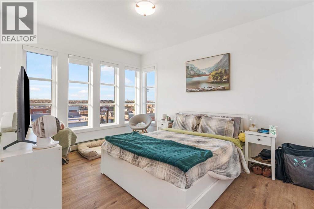 Welcome to the Penthouse at Savanna II Condos, a modern residential complex located in Calgary's vibrant Saddle Ridge community. This west facing 2 bedroom corner unit offers stunning views of the mountains from every room. Stepping into this unit you are greeted with an open concept living and dining area complimented with an eat in breakfast bar, quartz countertops, stainless steel appliances and wide plank laminate flooring. The generously sized primary bedroom offers a walk in closet and a 3 piece bathroom with ample storage and counter space. The second bedroom gives you the flexibility of a bright home office or space for guests with a large closet. Completing this unit is a 4 piece bathroom for visitors, 1 underground parking stall and a balcony with a gas line. The building also offers top tier amenities including a fully equipped gym, an owner’s lounge, bicycle storage, and more. (id:6769)