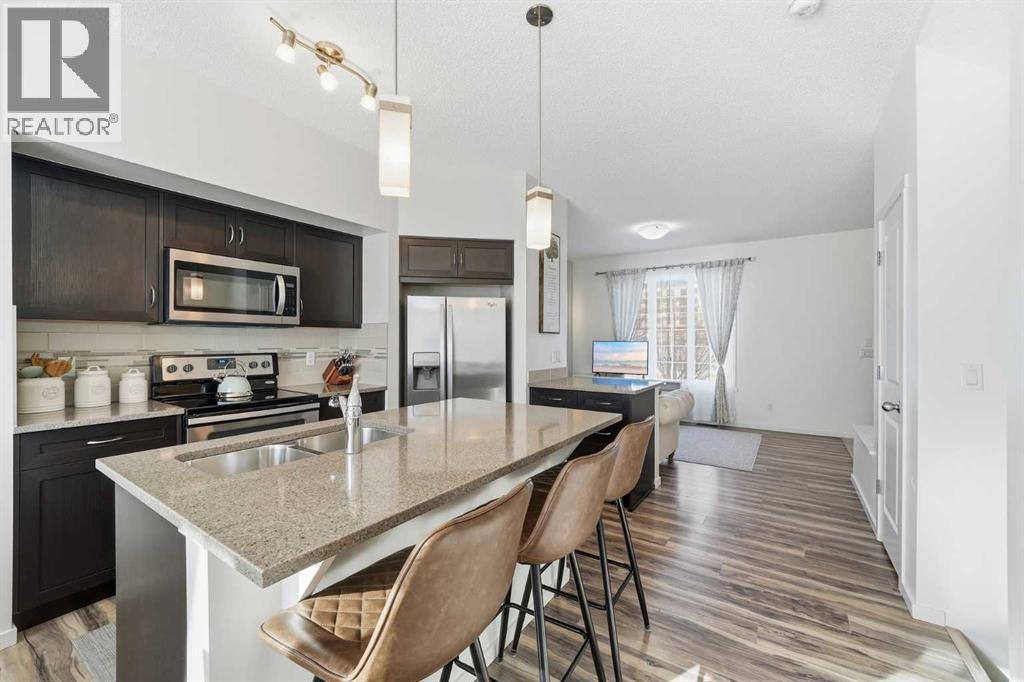 NO CONDO FEES | PARK & LAKE ACROSS THE STREET | DOUBLE PRIMARY BEDROOMS | FINISHED BASEMENT | DETACHED DOUBLE GARAGEWelcome to this beautifully maintained home in the highly desirable lake community of Mahogany, ideally located directly across from green space, pathways, and Mahogany Lake access. Enjoy year-round lake living with skating, paddleboarding, beach access, parks, and community events just steps from your front door.Offering over 1,200 SQ.FT. of above-grade living space plus a professionally finished basement, this home provides a functional layout perfect for modern living.The bright open-concept main floor features quartz countertops, stainless steel appliances, modern finishes, and large windows that fill the home with natural light. The spacious living and dining areas are ideal for everyday living and entertaining.Upstairs you’ll find a rare double primary bedroom layout, with two large primary bedrooms, each offering walk-in closets and private 4-piece ensuites. This level also includes a dedicated office/den space, perfect for a home office, study area, or flex space.The professionally developed basement expands the living space with a third bedroom, full 4-piece bathroom, and a large recreation / family room, making it ideal for guests or additional living space.Step outside to enjoy your private deck and fully fenced yard, along with the convenience of a detached double garage.Located just minutes from Mahogany Village Market, you’ll have quick access to restaurants, shopping, cafes, groceries, schools, and everyday amenities.This is a rare opportunity to own a park-front home in Mahogany with NO CONDO FEES and lake community access.Book your private showing today! (id:6769)