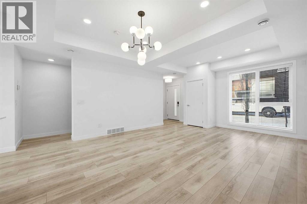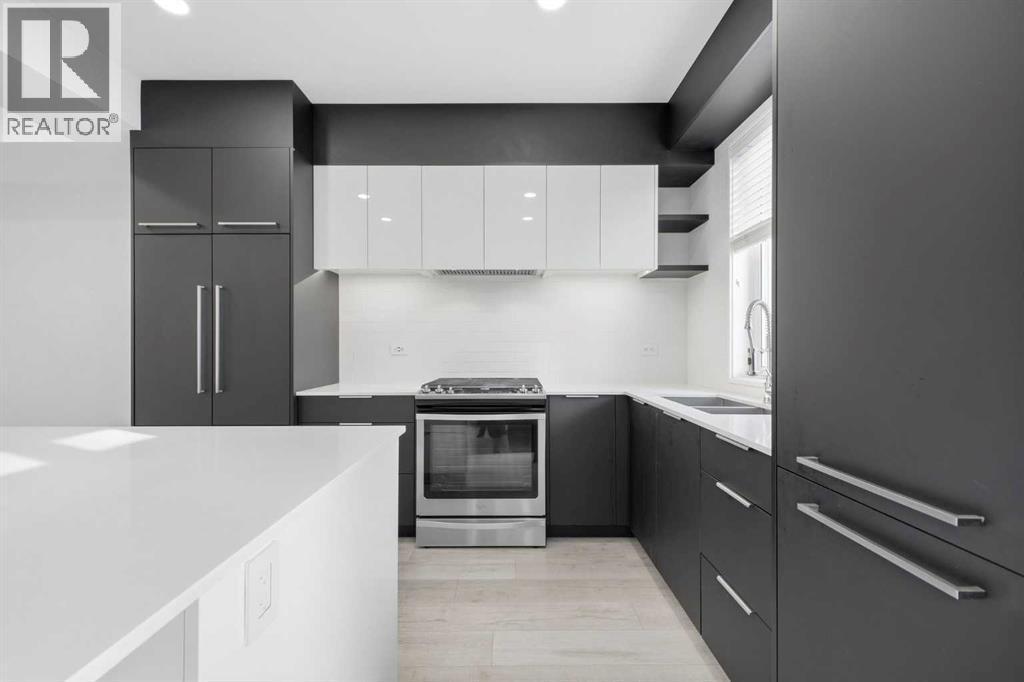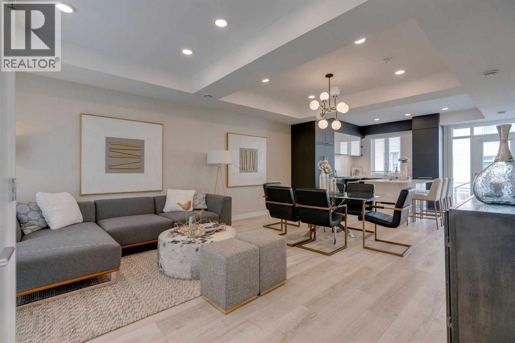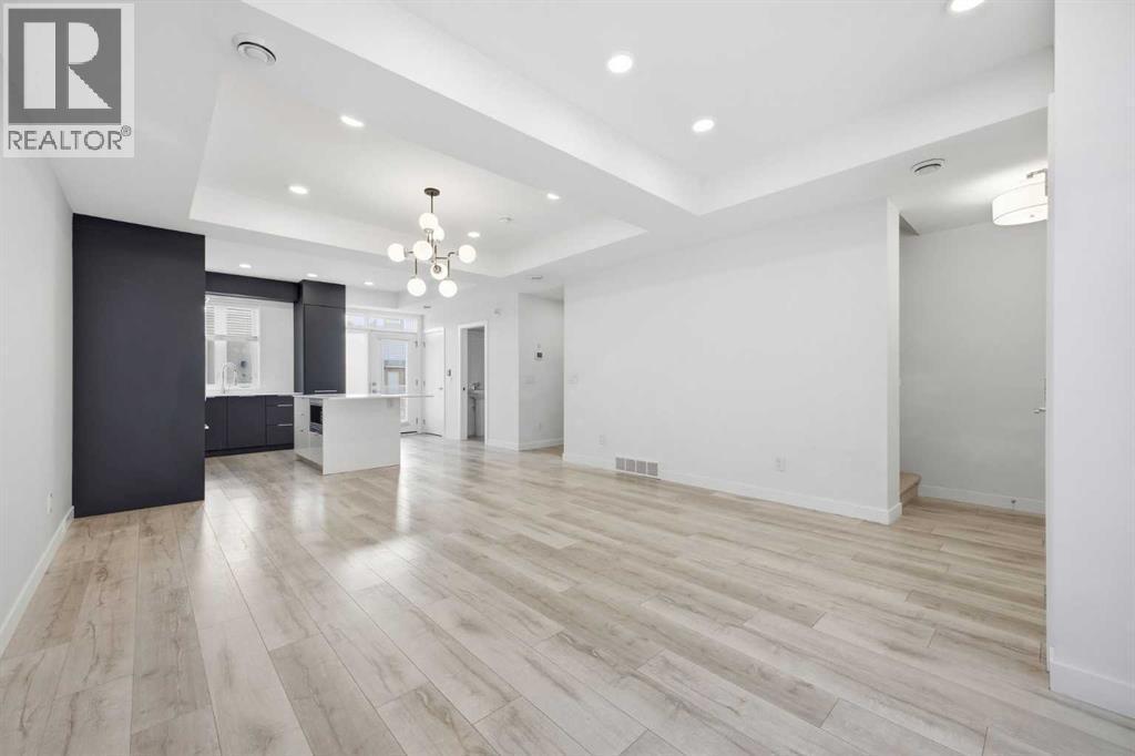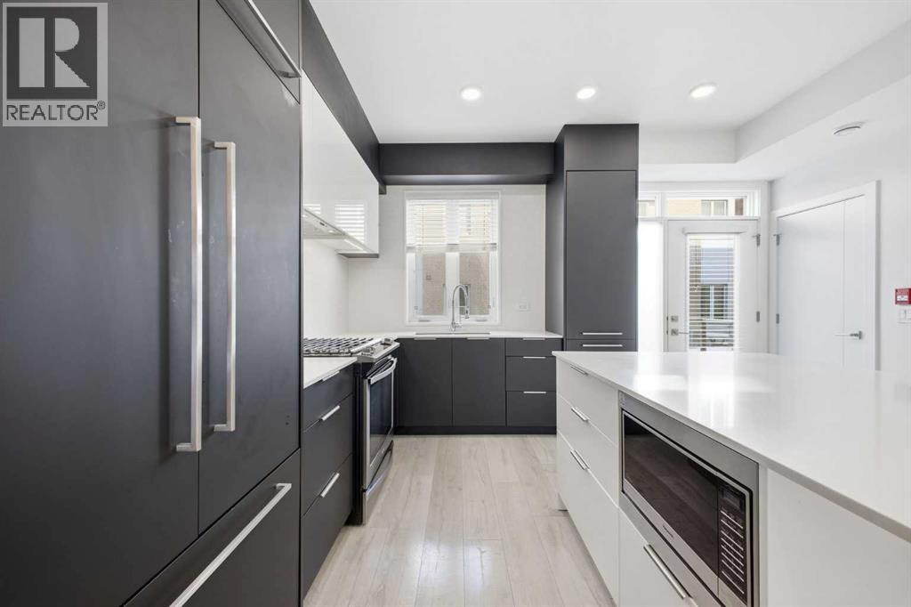 Located in the heart of the vibrant University District, this beautifully appointed 3 storey, 3 bedroom townhome was a former show suite and offers modern design, energy efficient features, and exceptional walkability. The main level showcases 9’ ceilings, engineered wide plank hardwood floors, and contemporary energy saving lighting that enhances the open living and dining areas. The well equipped kitchen is finished with polished quartz countertops, an island with eating bar, sleek contemporary cabinetry, full height backsplash, and a high end designer panel ready appliance package. Convenient laundry facilities and a 2 piece powder room complete the main level. The second level hosts three bright bedrooms and a stylish 4 piece bath. The primary bedroom features generous closet space and a private 4 piece ensuite with dual sinks and an oversized shower. Both bathrooms are finished with high gloss ceramic tile, quartz countertops, and WaterSense certified fixtures for added efficiency. The basement level features a spacious flex area – perfect for a family room or home office setup. A standout feature is the expansive rooftop patio, offering a private outdoor retreat ideal for relaxing or entertaining. Additional highlights include integrated in suite technology with smart wiring, USB smart plugs, TV/phone connections in principal areas, built in smoke detectors, an in suite sprinkler system, in-suite storage and two titled, secured, heated underground parking stalls. Residents enjoy all the amenities that make University District so desirable—vibrant retail districts, beautifully designed parks and open spaces, and extensive biking and walking paths. The University of Calgary, Foothills Hospital, Alberta Children’s Hospital, and Market Mall are all just moments away, creating an unbeatable blend of convenience and lifestyle. (id:6769)