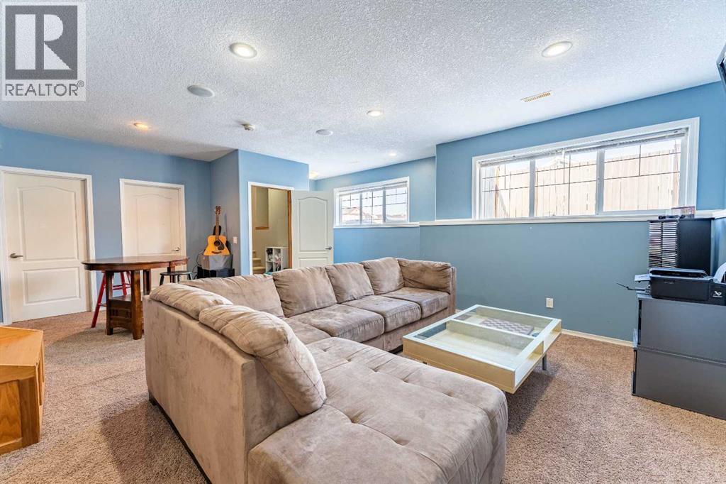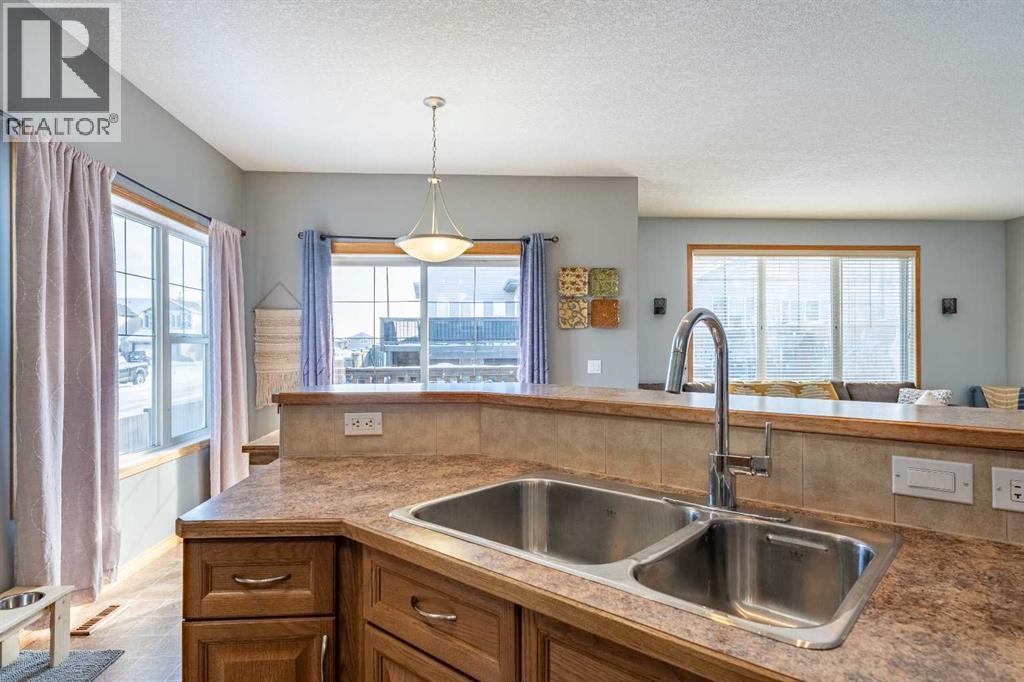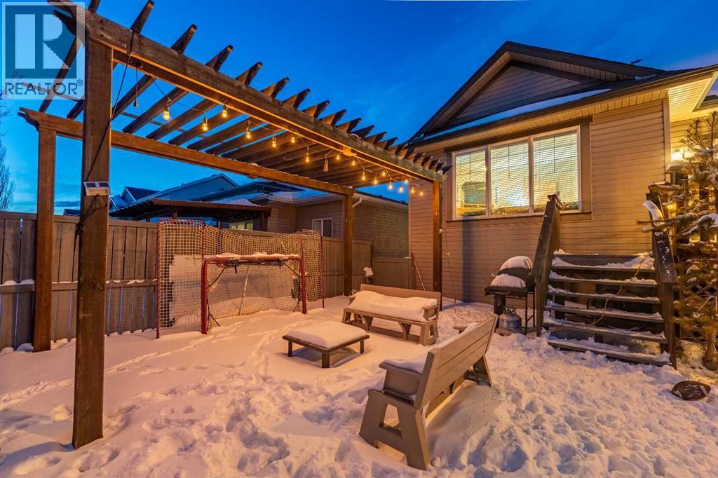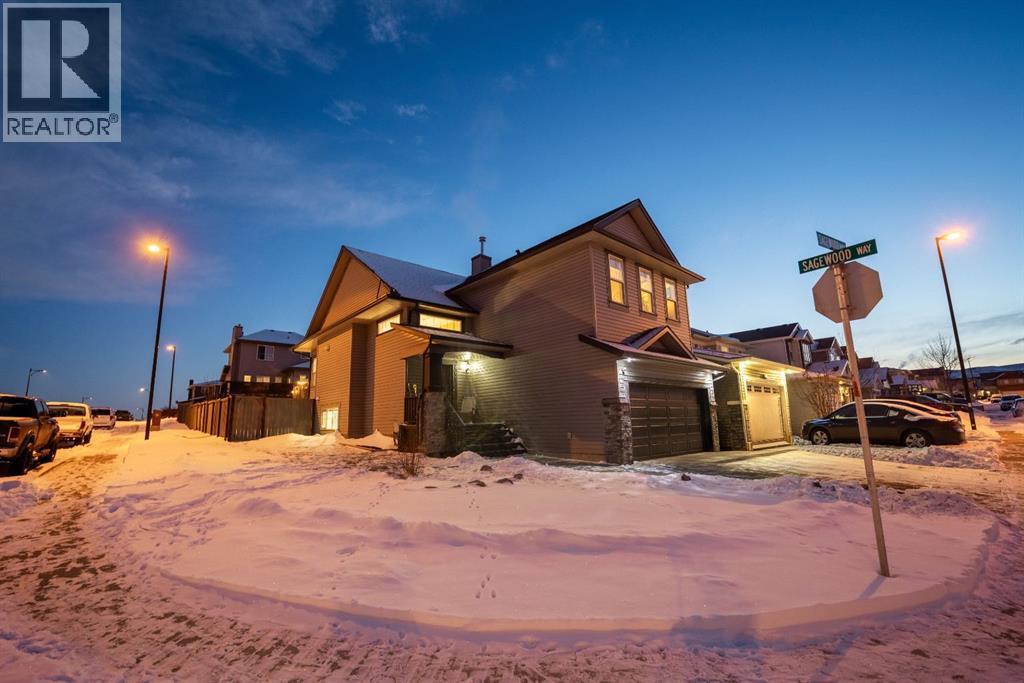 Welcome to this beautiful custom bi-level home located on a desirable corner lot in the family-friendly community of Sagewood in Airdrie. With a sunny south-facing backyard complete with a charming pergola, this home offers the perfect setting for relaxing or entertaining outdoors. The spacious front entrance greets you with soaring ceilings, creating a bright and inviting first impression. The thoughtfully designed main floor features three bedrooms and two full bathrooms, including a generous primary suite that easily accommodates a king-sized bed, along with a walk-in closet and a luxurious 4-piece ensuite showcasing a separate corner soaker tub and standalone shower. Just a few steps down are two well-sized secondary bedrooms and an additional 4-piece bath. The open-concept kitchen, dining, and living areas are ideal for modern family living, highlighted by a large kitchen island with breakfast bar, a corner gas fireplace in the living room, and a dining space spacious enough for everyday meals or hosting guests. Abundant windows throughout the main floor flood the home with natural light. The fully developed basement adds even more functional space with a fourth bedroom, full bathroom, expansive rec room, dedicated games area, laundry room, and ample storage including additional space under the stairs. Completing this exceptional property is a double attached garage. This well-designed home truly offers the right space in all the right places for comfortable family living. (id:6769)