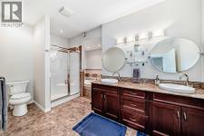 Welcome to Bridle Estates—one of Calgary’s premier 55+ adult communities. From the moment you arrive, you'll be drawn in by the home’s charming curb appeal, featuring a covered front porch and a double attached garage. Inside, a wide foyer opens into a bright, open-concept layout highlighted by a striking three-sided fireplace and large south-facing windows that flood the space with natural light. The main level showcases rich refinished hardwood floors and a thoughtfully designed floor plan that includes a formal dining room, a dedicated home office, and a spacious living room. The fully modernized kitchen is equipped with stainless steel appliances, ample cabinetry, and generous quartz countertop space perfect for everyday cooking and entertaining. A cozy breakfast nook leads to the large deck overlooking a sunny south-facing backyard. Also on the main floor is a spacious primary bedroom with a walk-in closet and 4-piece ensuite, a convenient laundry room, and a 2-piece powder room. The fully finished walkout basement has brand new carpet and offers even more living space with two large bedrooms, an in-floor heated luxurious 5-piece bathroom with jetted tub, and a bright family room with a second gas fireplace. Step outside to a private lower patio, an ideal retreat for relaxation. Additional features include ample storage, underground irrigation, and approximately 2,350 sq. ft. of developed living space. Bridle Estates is a quiet, well-maintained community offering green spaces, a clubhouse, and walking paths. A low HOA fee ($180/month) covers landscaping and snow removal, ensuring a truly maintenance-free lifestyle. Conveniently located near transit, shopping, dining, and just minutes from Spruce Meadows with easy access to Stoney Trail. Don't miss your opportunity to enjoy vibrant, carefree living in a beautifully appointed home. (id:6769)