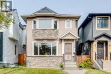 Your exciting forever home in the heart of Parkdale, set on 30 x 120 foot flat lot. This beautiful property features quiet luxury perfect for a family and is steps away from a peaceful yet vibrant community center. The playground, skating rink, and community garden offers amenities for individuals of all ages. Its proximity to Edworthy Park and Foothills Hospital add additional convenience without the noisy disruption. Enjoy walking, running, or cycling the pathways just a few blocks away from the Bow River. The property features a detached high ceiling garage connected by a garden with entry option to the house via the side or through a spacious stone patio. The main floor represents comfort and function for everyone. A practical mud room leads directly to the pantry, which provide abundant floor to ceiling cabinets for added storage space. These custom cabinets with silent close function wrap around to the heated tile kitchen that is every home chef's dream. This space features high quality Miele steamer/convection oven, fridge, dishwasher, microwave, and a 5 burner Capital gas stove. It boasts 10' high ceilings with plenty of natural light along with textured glass windows for added privacy. A spiral staircase leads to the 2nd floor, which consists of master bedroom with a walk in closet and a fully equipped bathroom. The other side of the floor has 2 bedrooms along with a spacious living room. The carpeted in-floor heat throughout in the basement with an additional bedroom and full bath, extending towards a large living room and bar space. Equipped with air conditioning, this property is perfect for your everyday needs. (id:6769)