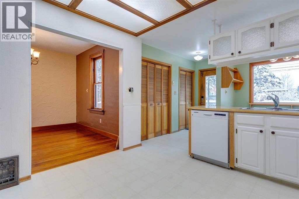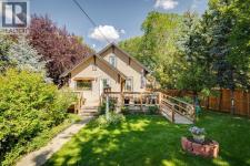 THIS IS A RARE FIND! Zoned for commercial or residential. A charming heritage home on highly coveted Elma Street, one of Okotoks’ most historic and picturesque locations. This beautifully maintained 1.5 storey property sits on a large, private, tree-filled lot with an updated exterior, a white picket fence, a welcoming covered veranda, and a stunning backyard oasis w/ pond and stunning flower beds, making it feel like your own private park.Zoned Heritage Mixed Use, this property offers exceptional flexibility—ideal as a warm, character-filled residence or a discretionary commercial space, giving you the rare opportunity to open a business before the busy summer and fall season on Elma Street.Inside, the home radiates timeless character with beautiful original wood charm, original fir flooring, high ceilings, and a warm, welcoming layout. The main floor features a spacious living room/dining room, a bright kitchen with a breakfast nook addition, an updated 4-piece bathroom, and a main floor bedroom. Two generously sized bedrooms complete the upper level. The basement is partially developed with a large flex room, plus storage.Extensive updates provide peace of mind, including:New shingles, eavestroughs, and soffit, Updated electrical, New water line to the main, Newer hot water tank, Updated exterior, new fence and back deck. Ongoing improvements since early 2000s including plumbing, wiring, furnace, and sump pumpHomes on Elma Street seldom come available—especially ones with this much character, modernization, and zoning versatility. A truly special property worth viewing! (id:6769)