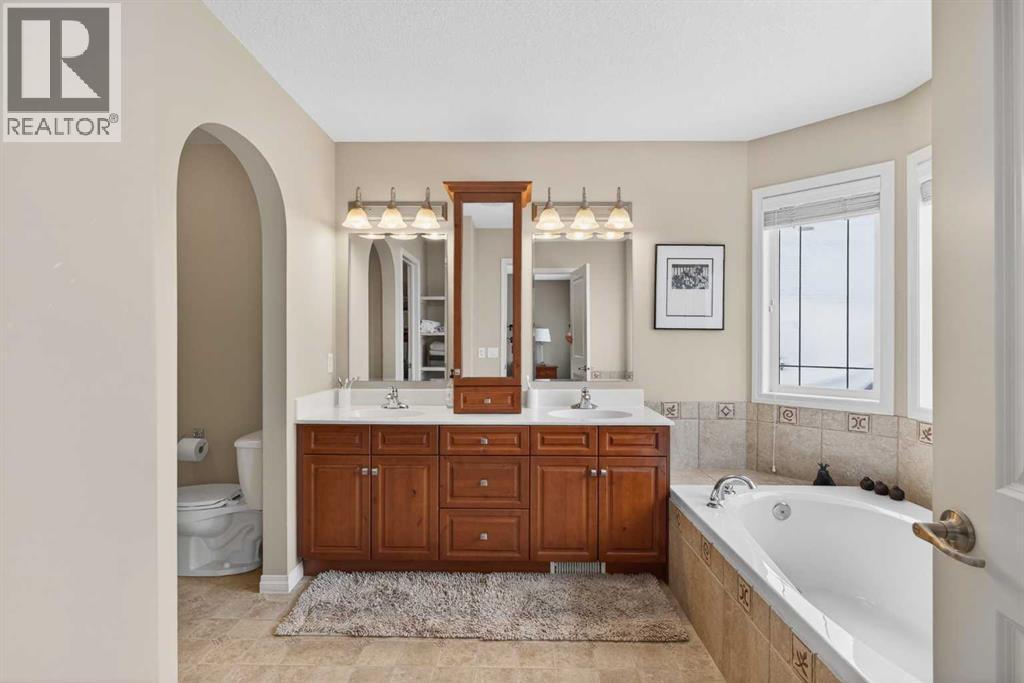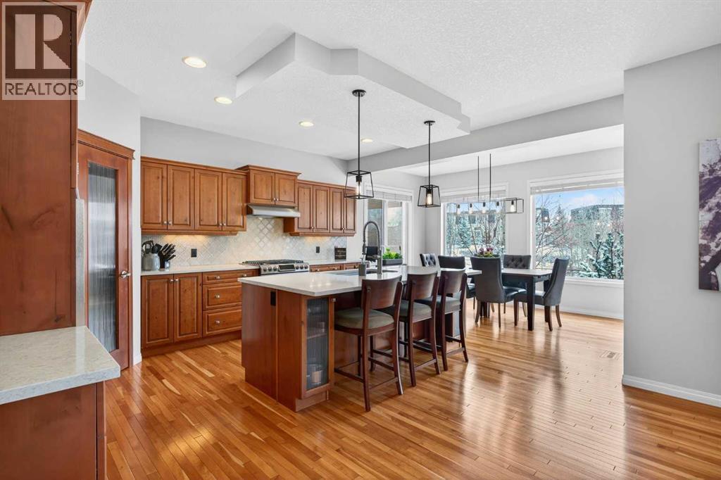 Nestled on a quiet cul-de-sac in the heart of Wentworth, this exceptional walkout home offers over 3,400 sq. ft. of beautifully developed living space and a rare ravine setting that seldom becomes available.Backing directly onto a lush, treed ravine, the professionally landscaped yard is a private retreat. Mature trees, curated gardens, an irrigation system, and a thoughtfully placed firepit create a serene outdoor escape designed for both peaceful evenings and effortless entertaining.Inside, the updated kitchen showcases granite countertops, a large island, and an open-concept design that flows seamlessly into the main living area. The inviting living room is anchored by a fireplace, while expansive windows capture tranquil ravine views.Upstairs, a spacious bonus room provides flexible family living, alongside three well-appointed bedrooms. The primary suite features a luxurious 5-piece ensuite, complemented by an additional full bathroom on the second floor, and a convenient main floor powder room. The fully developed walkout level adds further versatility with a fourth bedroom that can easily function as a private home office, plus another full bathroom. A triple heated garage with extensive built-in cabinetry completes the home.The location is truly exceptional — just steps from two highly regarded schools and a number of private schools, moments to the many amenities, dining, and shopping of West Springs, with quick access to Stoney Trail for an easy commute across the city or a seamless escape west to the mountains. Ravine properties in this pocket of Wentworth rarely come to market.A rare opportunity to secure an executive walkout in one of Calgary’s most sought-after west communities, where privacy, convenience, and lifestyle align beautifully. (Additional updates: New Fridge and dishwasher; Kitchen counter, backsplash, stove and microwave - 5 years; HWT - two years; Central air -four years; light fixtures replaced throughout; updated upstairs laund ry) (id:6769)