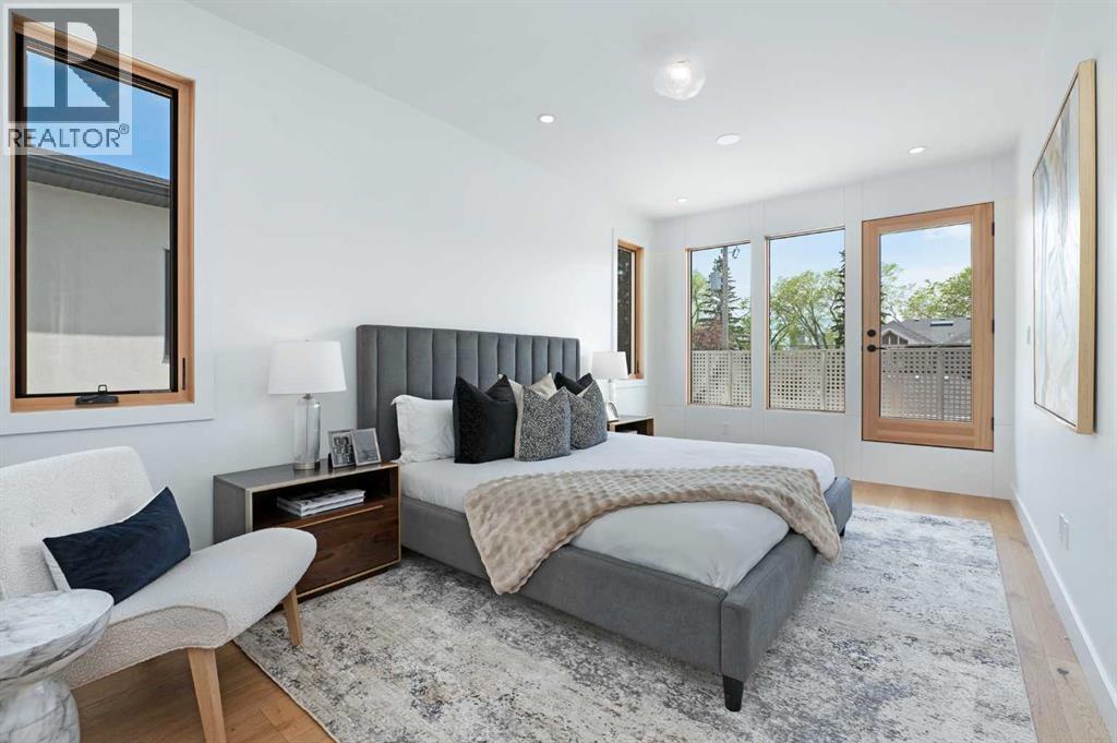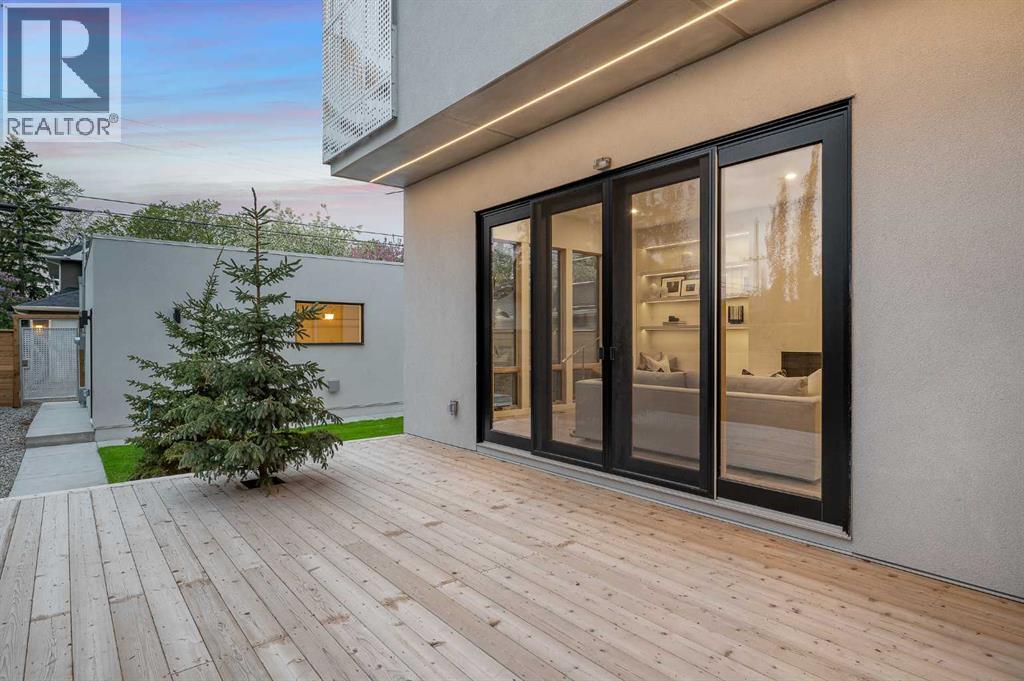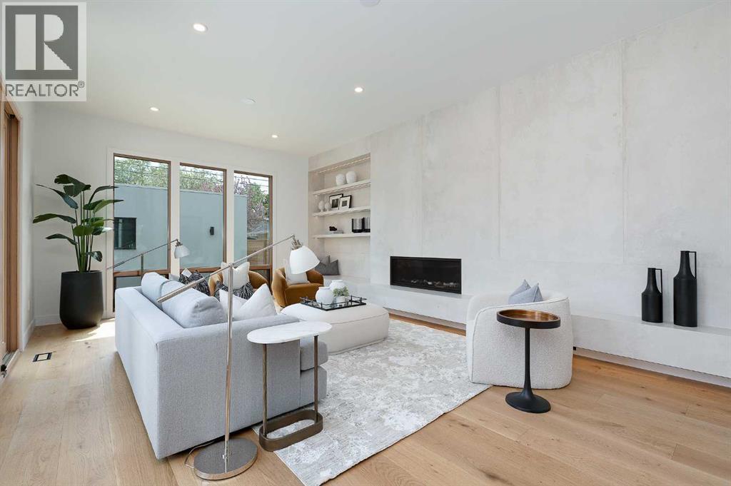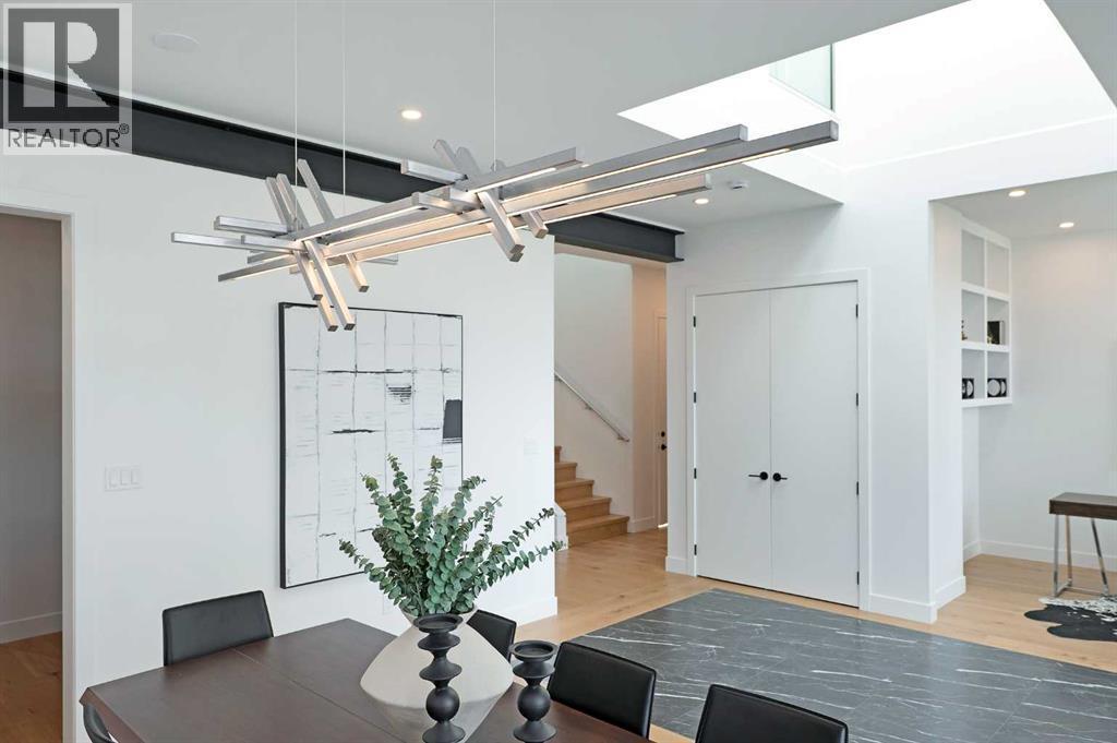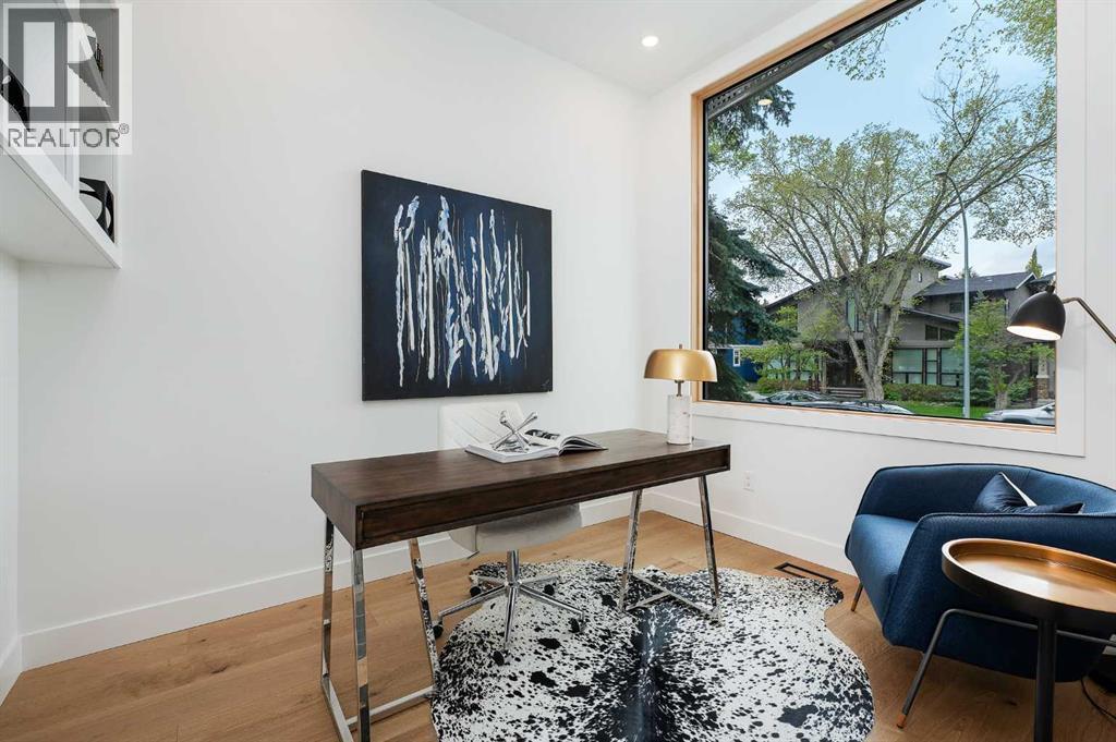 Steps from Confederation Park, this striking architect-designed residence in Mount Pleasant offers over 4,500 sq ft of meticulously crafted living space, combining thoughtful design with exceptional inner-city livability. Conceived and executed by an award-winning design studio behind several notable architectural and public art projects, the home reflects a rare level of intention, craftsmanship, and material integrity seldom seen in infill construction. Its sculptural façade, engineered to subtly respond to Calgary’s Chinook winds and enhanced with programmable architectural lighting, creates a dynamic street presence that shifts beautifully from day to night. A welcoming concrete patio and thoughtfully curated landscaping establish an inviting sense of arrival. Inside, the main level unfolds in a bright, open layout designed for both refined entertaining and comfortable everyday living. Wide-plank hardwood floors, soaring ceilings, and expansive windows create strong visual connections throughout the home. The front dining area offers an elegant setting for hosting, while the chef-inspired kitchen features an oversized Verde Alpi marble island, custom cabinetry with brass accents, JennAir appliances, and a discreet butler’s pantry with direct access to the dining room. At the rear, the living room is anchored by a dramatic feature wall clad in imported large-format tile, complemented by integrated shelving with mood lighting and a smart fireplace. Large glass doors open to the expansive rear deck and sunny south-facing yard, creating seamless indoor–outdoor flow. A private office off the foyer provides a quiet and refined work-from-home setting. The upper level hosts four spacious bedrooms thoughtfully arranged for family living. The primary retreat feels like a private sanctuary, offering access to a serene balcony, generous walk-in closet, and a spa-inspired ensuite with freestanding soaker tub, oversized glass shower, and dual vanities. A second bedroom enjoys its own ensuite, while the remaining bedrooms offer flexibility for children or guests. A well-appointed laundry room with built-in storage completes this level. The fully developed lower level extends the home’s living and entertainment spaces with a large family/media area, full bath, and two flexible rooms ideal for a gym, studio, or guest accommodation. Comfort-focused and future-ready features include central A/C, speaker rough-ins, and a full elevator rough-in connecting all three levels. Outdoor living is equally impressive with a sunny south-facing backyard, expansive deck, custom fencing, and architectural lighting. A rare, insulated triple detached garage with EV charger adds exceptional convenience and storage. Perfectly positioned steps from Confederation Park, and close to SAIT, the U of C, schools, restaurants, shopping, and transit, this remarkable home offers a rare opportunity to own an architect-designed residence where design, craftsmanship, and everyday livability converge. (id:6769)