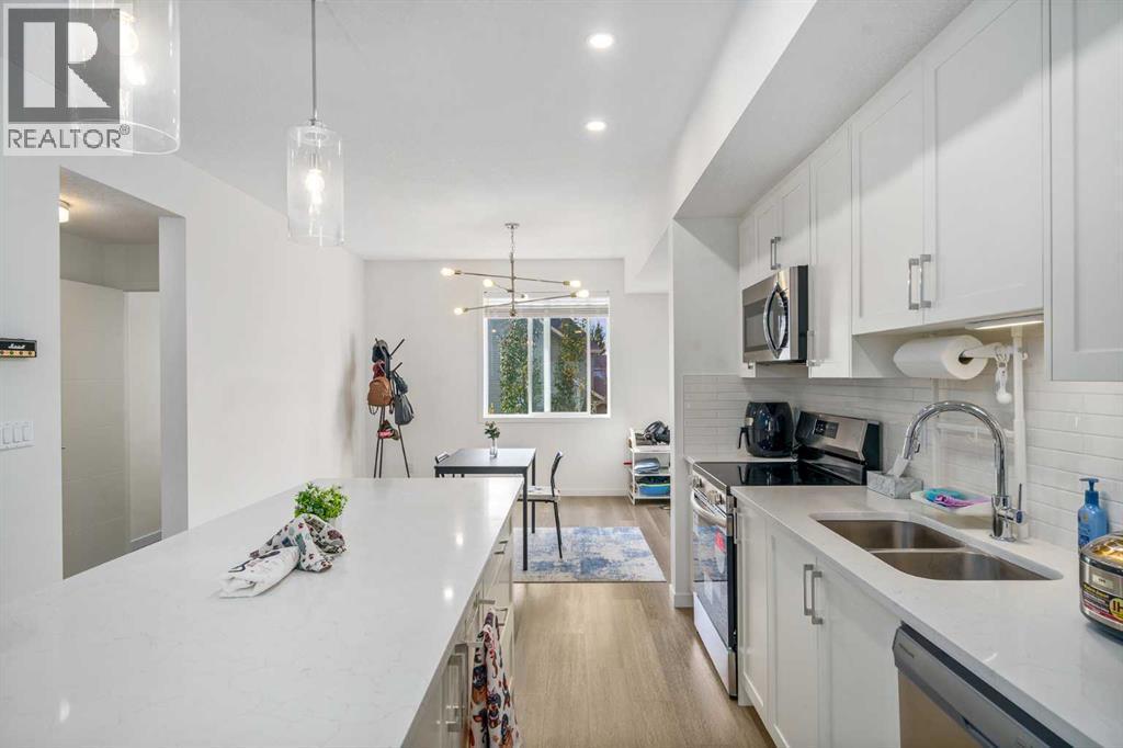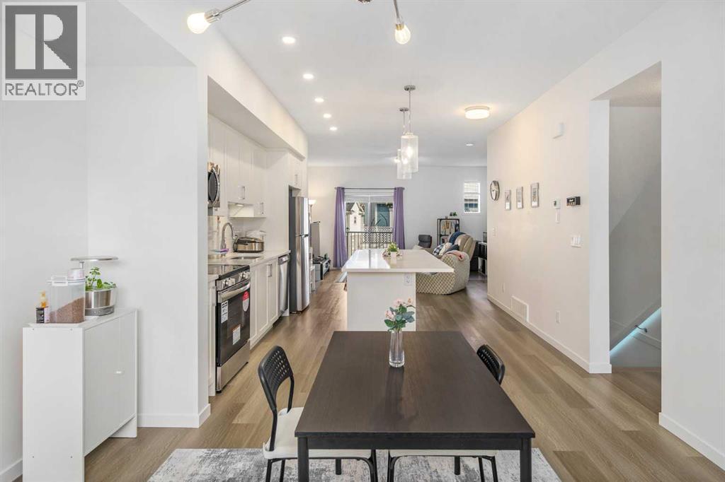 Welcome to this stylish and modern 2-bedroom, 2.5-bath townhome in the vibrant community of Copperfield. Built in 2024, this bright and thoughtfully designed home offers over 1,400 sq. ft. of living space with contemporary finishes and a smart, functional layout. The open-concept main living area is filled with natural light and features engineered laminate flooring, a sleek kitchen with quartz countertops, upgraded cabinetry, and stainless steel appliances, plus spacious living and dining areas that flow seamlessly together—perfect for everyday living and entertaining. Step out onto the private balcony with a BBQ gas line, ideal for summer grilling or relaxing with your morning coffee. Upstairs, you’ll find two generously sized bedrooms, each with its own full ensuite bathroom, along with convenient upper-level laundry. The ground level offers a tandem double garage (16’ x 40’) with plenty of space for two vehicles, storage, or a small workspace, plus access to a private rear patio area. Additional highlights include low condo fees of just $259/month, new home warranty coverage, and a quiet location close to parks, playgrounds, schools, and shopping, making it a great option for first-time buyers, young professionals, or anyone looking for a low-maintenance home in a growing community. (id:6769)