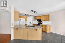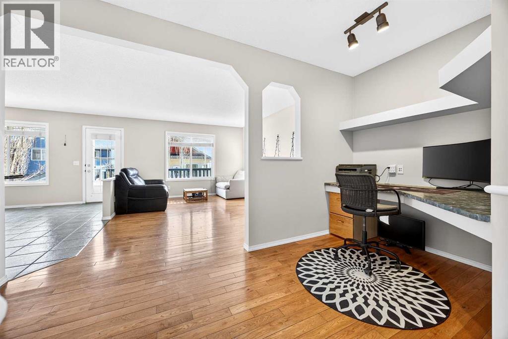 This beautiful home is well-situated on the corner lot across street from a park. Featuring on east-facing deck that wraps around the complete south and west sides of home and terminates at front porch. The floor plan is nice and open, with gorgeous hardwood and tile floors, and there is a small den great for an at-home office. The livingroom is a good size and great for entertaining family and friends. The kitchen has oak cabinets with lots of space for chef in the house, an attached island, an eating area, granite countertops. Upstairs is the large bonus room with corner fireplace, primary bedroom has walk-in closet and a 4-piece ensuite, other two bedrooms share the bathroom. The lower level is developed with a family room, the 4th bedroom and a full bath. The location is excellent, shopping is just around the corner, easy access to Deerfoot& Stoney Trail. Come and have a look, it won't last long. Upgraded recently: WASHER(2023), DRYER(2023), RANGE HOOD(2023), ROOF(2025), ONE SIDE OF SIDING(2025), STOVE(FEB 2026), DISHWASHER(FEB 2026). (id:6769)