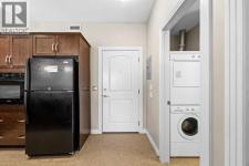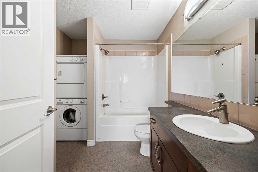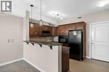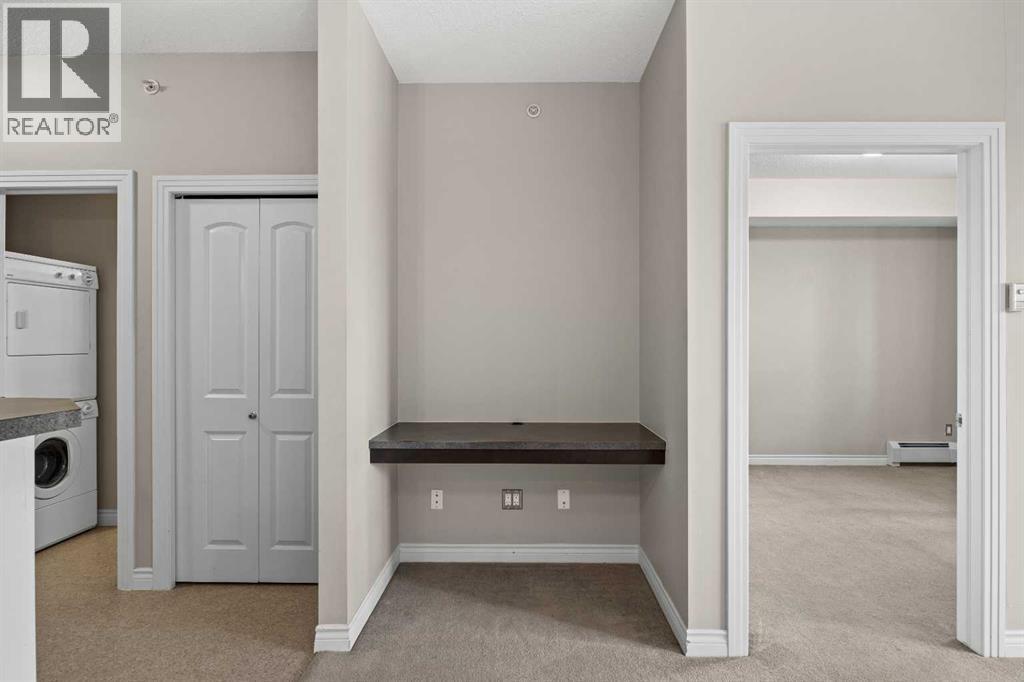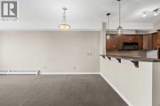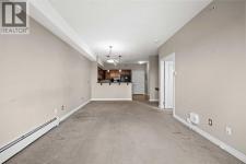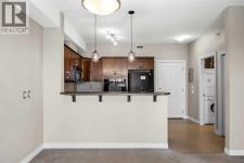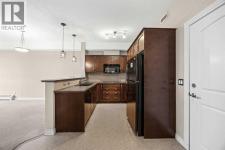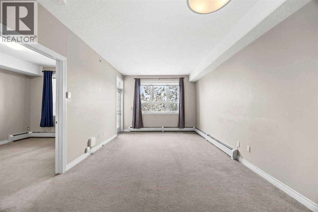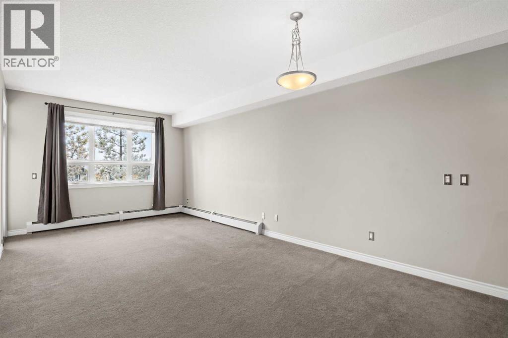 Move-in ready top-floor condo in an outstanding location within prestigious Springbank Hill. Top-floor positioning means no neighbours above, creating a peaceful everyday setting in the sought-after community of Springbank. A sunny southwest-facing balcony welcomes warm afternoon light while mature trees create a surprisingly private outdoor retreat for morning coffee or relaxed evening barbeques thanks to the convenient gas line. Open-concept living supports comfortable day-to-day living and easy hosting with clear sightlines that supports conversations to flow naturally between spaces. Thoughtful kitchen design provides abundant cabinetry and generous counter space, while a peninsula island with raised breakfast bar seating invites casual meals, quick breakfasts or gathering with friends while meals are prepared. A large dining area offers flexibility for everyday dinners or weekend entertaining, positioned seamlessly beside the relaxing living room where oversized windows draw in natural light. Sliding doors extend living outdoors to the covered balcony, creating a comfortable space to unwind while enjoying leafy surroundings. A spacious bedroom is designed for both comfort and functionality, featuring dual walk-through closets that provide excellent storage while delivering convenient cheater access to the 4-piece bathroom. In-suite laundry adds everyday practicality, keeping household routines simple and efficient. Titled underground parking protects your vehicle year-round, while a titled storage locker provides valuable space for seasonal gear and extras. Residents of this well-maintained building enjoy access to a well-equipped fitness facility and a landscaped courtyard that enhances the sense of community and outdoor enjoyment. Surrounding greenspaces, ponds and walking paths create opportunities for fresh air just steps from the complex, while nearby Stoney Trail allows efficient travel across the city. Daily errands remain convenient with Aspen Landing a nd Westhills only minutes away, brings grocery stores, restaurants, cafés and essential services within easy reach. A unique pocket of Calgary where natural surroundings meet urban convenience, this Springbank Hill location supports an active and connected lifestyle. (id:6769)