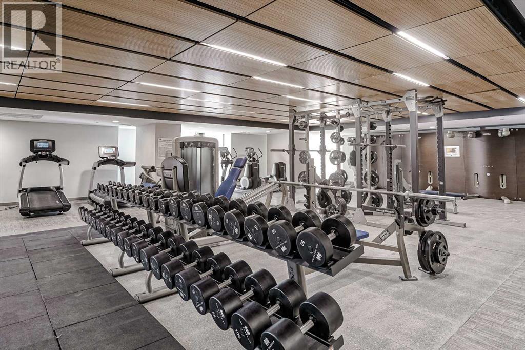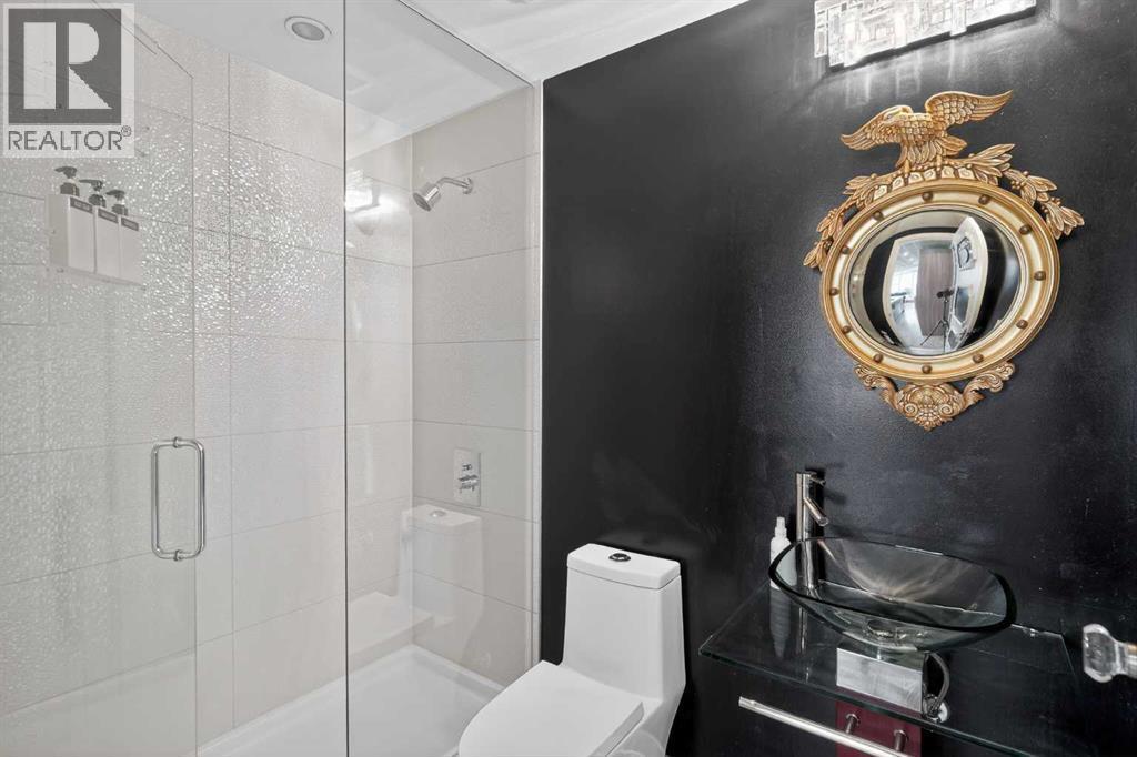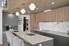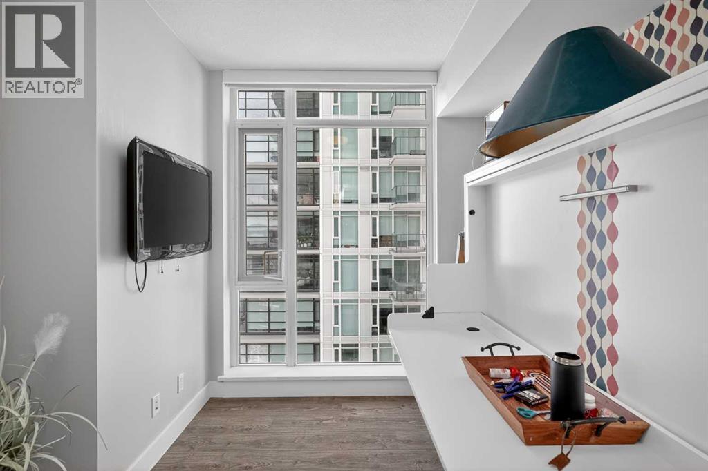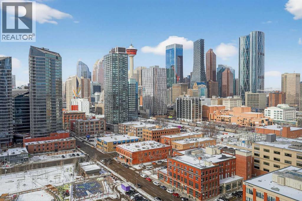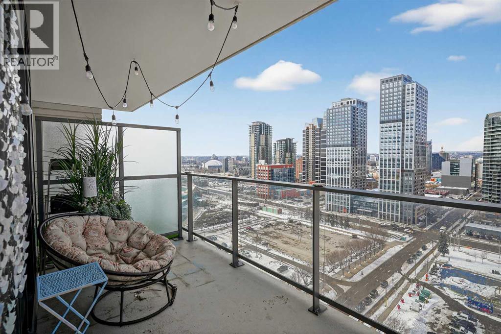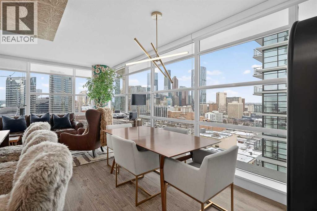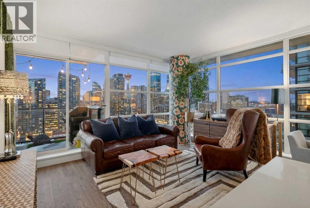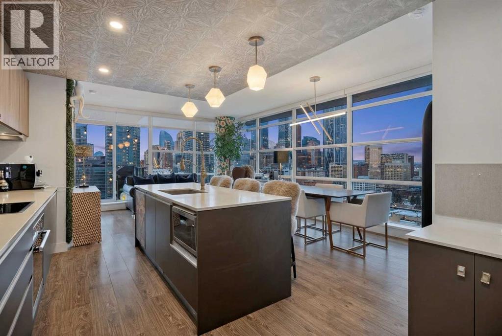 Welcome to the Gaurdian, South Tower. Truly one of Calgary's most sought after and spectacular buildings. This 2 bedroom, 2 bathroom home is unlike any other you have seen. Walking in you are greeted with gorgeous laminate floors, a white and gold feature wall and custom light fixtures. Entering into your open floor plan starts with your chef inspired kitchen with gold fixtures, custom built-in's in the cabinets and drawers, custom back splash, quartz counter tops and built-in stainless steel appliances. The large dining space is not something you normally find in a condo and is a great area to entertain or for quiet nights at home with the family. Your living room is a great size and offers you expansive VIEWS of DOWNTOWN, THE CALGARY TOWER, the MOUNTAINS, and connects to you west facing balcony. With this home being a corner unit you have amazing floor to ceiling windows offering views from every room. The primary bedroom is large enough for a king size bed as well as additional bedroom furniture and has a beautiful ensuite bathroom. The second bedroom is also a great size and has a custom MURPHY BED that was designed for the space and doubles as a home office. The second bathroom is custom designed and has a huge walk-in shower. The unit INCLUDES ALL TV'S AND MOUNTS as well as 2 TITLED SIDE BY SIDE UNDERGROUND PARKING SPACES!!!!! The Gaurdian has great amenities including a massive gym, social room, garden terrace, workshop, and is steps from the stampede grounds, great restaurants, shopping, bus and train routes giving you the best of downtown living. Do not miss out on your opportunity to own the most unique home in one of Calgary's most desired luxury buildings. (id:6769)