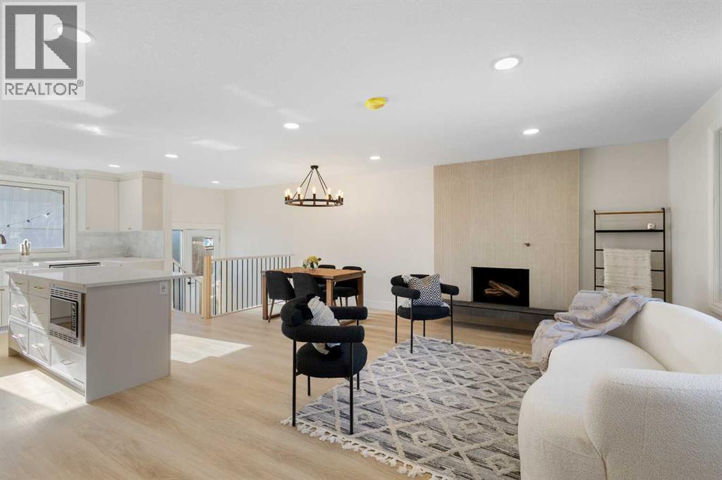 Discover refined living in this fully renovated Varsity masterpiece. No expense was spared in crafting this home, from the durable Hardie board siding on both the house and garage to the impeccable interiors. Step inside to an open-concept sanctuary featuring seamless luxury vinyl plank flooring throughout. The main level is designed for sophisticated entertaining, boasting a bright family room anchored by a dramatic fireplace wall, a dedicated dining area, and a gourmet kitchen. This chef's dream includes all new appliances, an expansive island, and gleaming quartz countertops. The private primary suite offers a retreat with a five-piece modern ensuite and a spacious walk-in closet. A second large bedroom and a four-piece bathroom complete this level. The fully developed basement significantly expands your living space, perfect for movie nights or guests, featuring a huge rec room, two more bedrooms, a sleek four-piece bath, and a brand-new washer and dryer. Enjoy seamless indoor-outdoor living with a landscaped backyard and the utility of a double detached garage. Located facing a green space and with quick access to the University of Calgary, Market Mall, and excellent transit, this home is where luxury meets location. (id:6769)