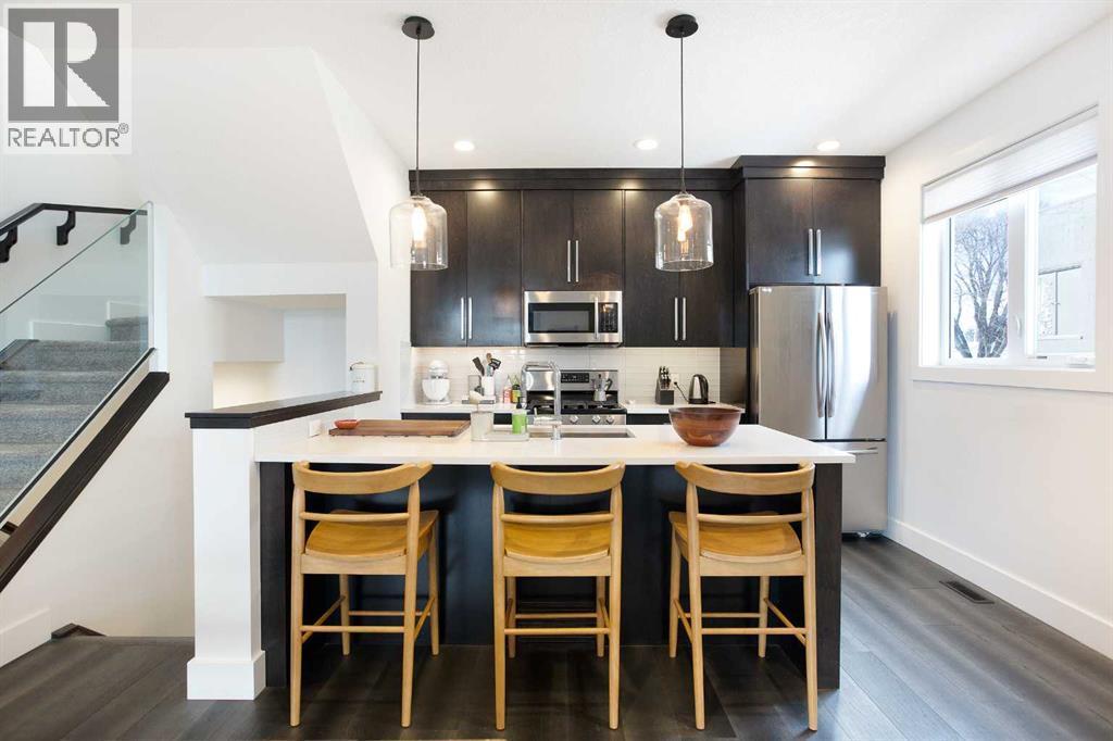 Welcome to this beautifully appointed 3-bedroom, 3.5-bathroom townhome in the heart of Killarney. This rare walkout design offers exceptional functionality, featuring a private yard and a single detached garage. The main floor showcases quartz countertops, stainless steel appliances, air conditioning, and a bright, open concept layout perfect for everyday living and entertaining. Upstairs, both bedrooms feature their own private ensuites, including a spacious primary retreat complete with a large walk-in closet. The fully developed walkout basement adds incredible versatility with a third bedroom, full bathroom, and generous living space ideal for guests, a home office, or additional family room. A rare opportunity to own a walkout townhome in one of Calgary’s most sought after inner-city communities. (id:6769)
