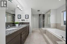 RIDGE LOT! WALKOUT BASEMENT! INCREDIBLE VIEWS! SOLAR PANELS! Welcome to this executive custom-built home perfectly positioned on an oversized ridge lot backing onto scenic greenspace and pond in the highly desirable community of Nolan Hill, offering exceptional privacy and breathtaking northwest views. With over 3,488 SQ FT of developed living space, this fully finished 2-storey walkout features 4 bedrooms, 3.5 bathrooms, a bonus room, main floor office, and gym within a bright open-concept layout. The main floor offers 9’ ceilings, a spacious living room with gas fireplace, generous dining area, and a full wall of windows leading to the oversized Duradek balcony complete with awning, gas line, and water hookup—perfect for relaxing or entertaining while enjoying the views. The chef-inspired kitchen features stone countertops, a large island, gas cooktop, high-end stainless steel appliances, extensive cabinetry, prep/coffee or wine bar, tech station, and walk-in pantry. Upstairs you’ll find a luxurious primary retreat with stunning northwest views, a spa-inspired 5-piece ensuite with soaker tub, stand-alone shower, cozy three-sided fireplace, and walk-in closet, along with two additional bedrooms, a 4-piece bathroom, convenient upper laundry, and a bright bonus room with impressive 10’ ceilings. The builder-finished walkout basement offers a large recreation and entertaining area, gym space, fourth bedroom, full bathroom, storage, and direct access to the beautifully landscaped backyard featuring a composite deck and private hot tub. Major recent exterior upgrades include new shingles, siding, eavestroughs, fascia and downspouts, adding long-term value and peace of mind. Additional highlights include recently installed solar panels, air conditioning, hardwood flooring, rounded corners, a spacious mudroom with built-ins, GoBright exterior lighting, and an oversized heated double attached garage (21’10” x 25’9”). Ideally located close to schools, shopping, parks, pathw ays, and major roadways, this is a rare opportunity to own a premium ridge walkout property with exceptional views in one of NW Calgary’s most desirable communities. (id:6769)