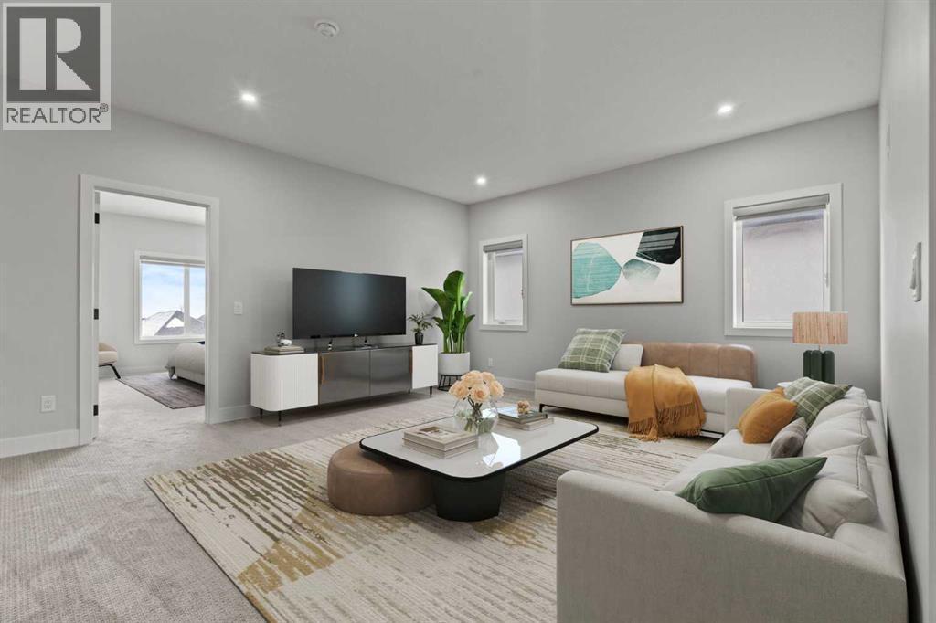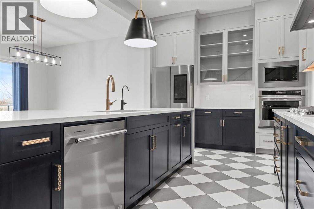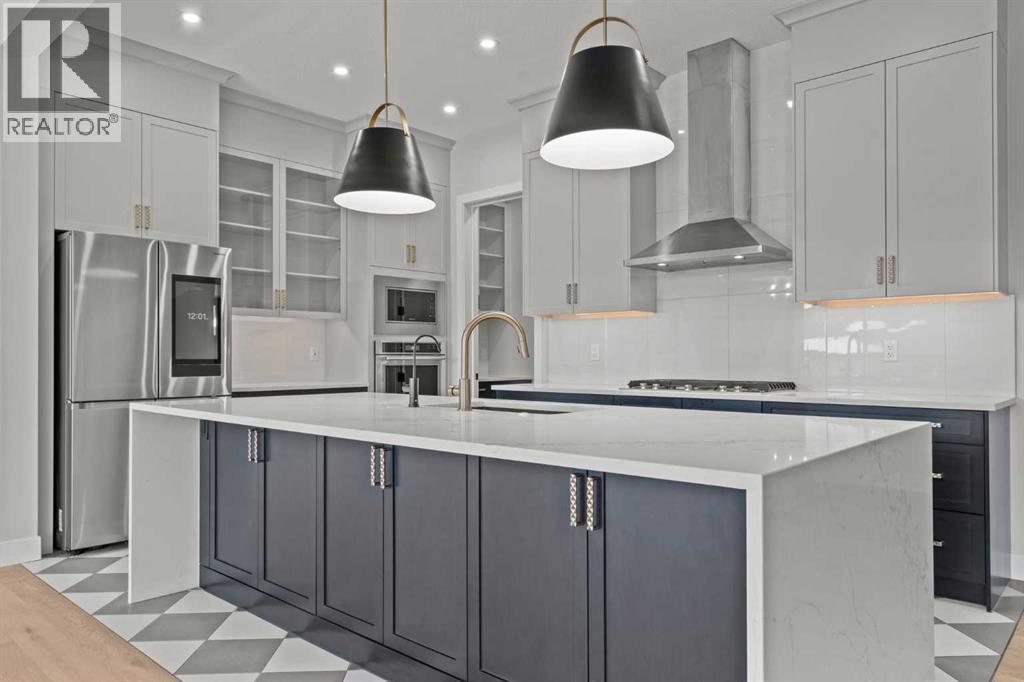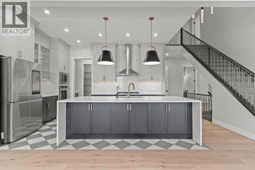 Newly built in December 2023, this exceptional residence is located in the prestigious community of Artesia at Heritage Pointe, offering a perfect blend of luxury, functionality, and modern design. Boasting 6 bedrooms and 5.5 bathrooms, this home is thoughtfully designed to accommodate growing families, multi-generational living, or those who love to entertain. The main floor features 10-foot ceilings and an open-concept layout where the chef’s kitchen overlooks the dining and living areas. The kitchen is highlighted by a large central island, expansive pantry, and premium finishes—ideal for everyday living and hosting. A rare main-floor bedroom with ensuite and private sitting area offers incredible flexibility, perfect for in-laws, teenagers, guests, or a sophisticated home office. An additional beautiful powder room, a big mud room and access to an oversized patio overlooking the pond completes the main floor.Upstairs, you’ll find a spacious bonus room, along with a luxurious primary retreat featuring a spa-inspired ensuite with a large shower and soaker tub. The primary suite conveniently connects to the upper-level laundry room. Three additional bedrooms and two additional full washrooms complete this level, including one with its own private ensuite. The fully developed walk-out basement is an entertainer’s dream, offering awet bar, gym, generous storage, and a large bedroom with a full bathroom—ideal for guests or extended family. Additional highlights include a triple heated garage with epoxy flooring, triple-pane windows, Gemstone exterior lighting, heating and cooling controls on each level, and 9-foot ceilings throughout the upper and lower levels. The home is fully landscaped with underground sprinklers, exposed aggregate concrete pad under the patio, and with a beautiful lighted pergola to enjoy under the summer and autumn nights. This is a rare opportunity to own a nearly new luxury home in one of the most sought-after communities in the Calgary area. (id:6769)