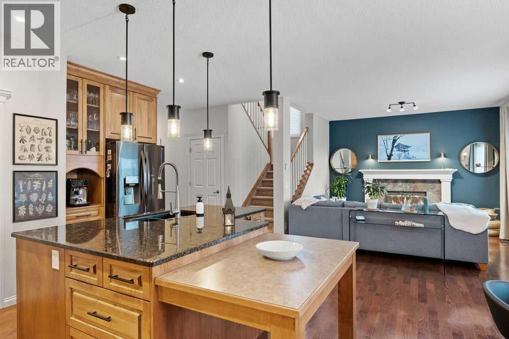 Fantastic walkout home in a quiet, friendly community — truly in beautiful condition. Filled with natural light, this home offers morning sunshine to the front and warm west sunshine in the afternoon and evening. Enjoy the space of a pie-shaped backyard, all located on a street with no through traffic. From the moment you enter, pride of ownership is evident with beautiful hardwood floors, fresh modern paint, and a stylish new lighting package that adds both function and contemporary appeal. A charming front flex room offers the perfect space for a home office, formal dining room, or relaxing sitting area. The pristine kitchen features maple cabinetry, granite countertops, and an amazing butler’s pantry, all overlooking the welcoming great room with a cozy gas fireplace — ideal for everyday living and entertaining. Upstairs, you’ll find a bright and spacious bonus room with pitched ceiling, perfect for family time, along with three generous bedrooms, including a large primary retreat complete with a walk-in closet and a private 5-piece ensuite. The fully developed walkout basement offers additional living space with a media area, fourth bedroom or office, and a 4-piece bathroom — perfect for guests or growing families. Step outside to enjoy the beautifully landscaped backyard featuring garden beds, trees and abundant perennials. This move-in ready home offers comfort, style, and an exceptional location you’ll love coming home to. (id:6769)