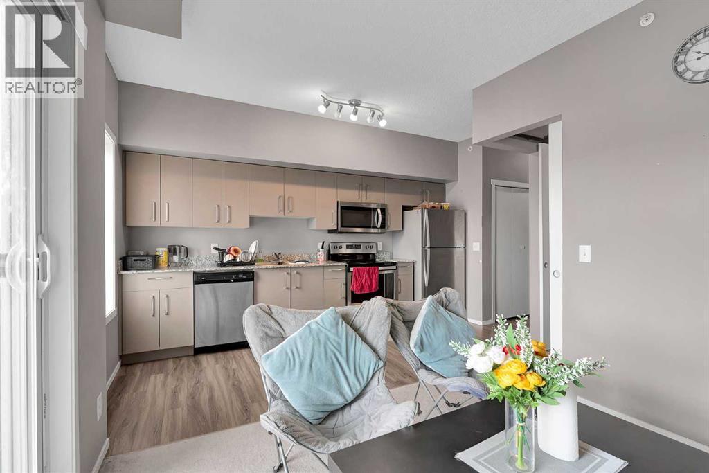 Discover effortless condo living in this immaculate, top-floor unit at Skyview Landing, nestled in the highly sought-after, family-friendly Skyview Ranch. Enjoy a bright, open-concept living and dining area with 9-foot ceilings, perfect for entertaining or simply relaxing. This space extends to a private balcony, ideal for enjoying the view. The modern kitchen features stainless steel appliances and granite countertops. This spacious floor plan includes two bedrooms and a four-piece bathroom. You'll appreciate the exceptional value with low condo fees and a titled, heated underground parking stall. Stay active with access to two gyms conveniently located in buildings 3000 and 4000. Embrace a low-maintenance lifestyle with quick commutes to the city's best amenities via Metis Trail, Stoney Trail, and Country Hills Blvd. Check out the virtual tour or book your private showing today! (id:6769)